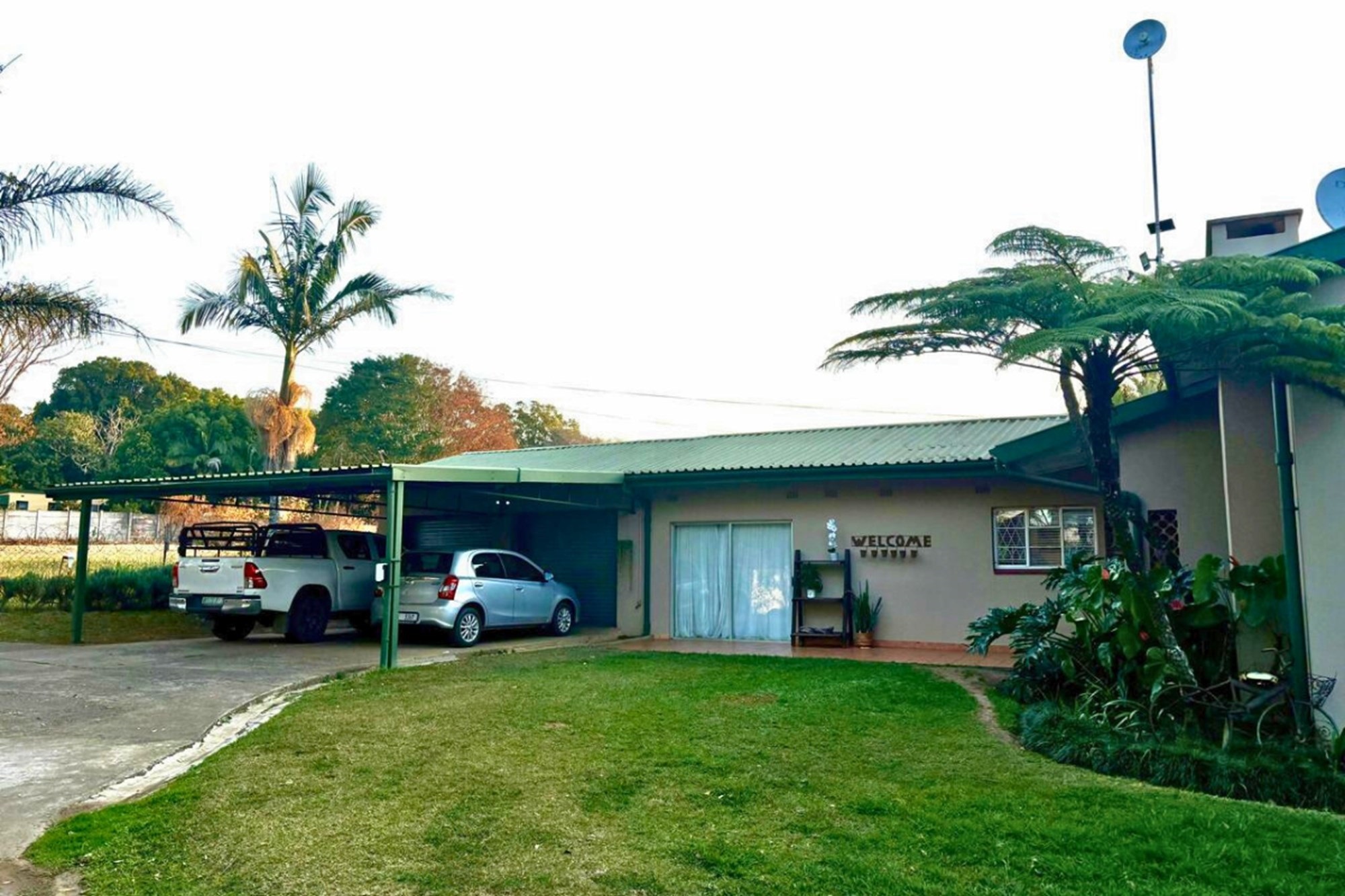 The fully equipped kitchen is designed with ample space, making it perfect for culinary creations and everyday convenience. Parking is no issue, with both a two-vehicle carport and a two-vehicle garage providing plenty of secure space. Outdoors, a sparkling swimming pool and braai area create the ultimate setting for relaxation and entertainment.