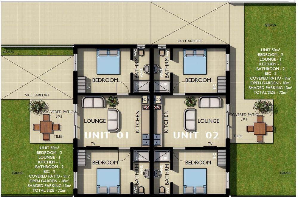 Open plan lounge, well planned kitchen, covered patio, covered carport, small maintainable
