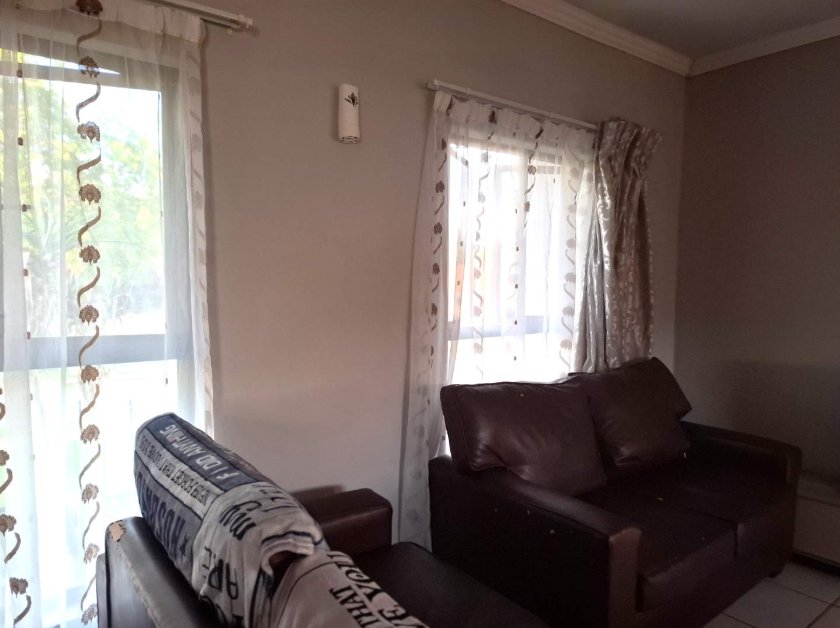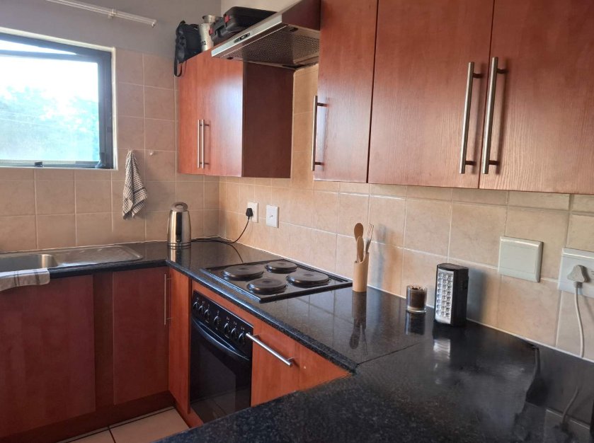 Open plan lounge, dining area, well fitted kitchen with enough space for 3 appliances under counter.