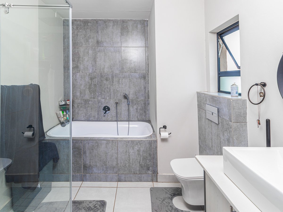 The open-plan living area offers a warm and inviting atmosphere, flowing effortlessly into the indoor braai room, perfect for entertaining in any season. The main bedroom features generous cupboard space and a stylish en-suite bathroom with both a bath and a shower. The two additional bedrooms are serviced by a modern bathroom with a shower.