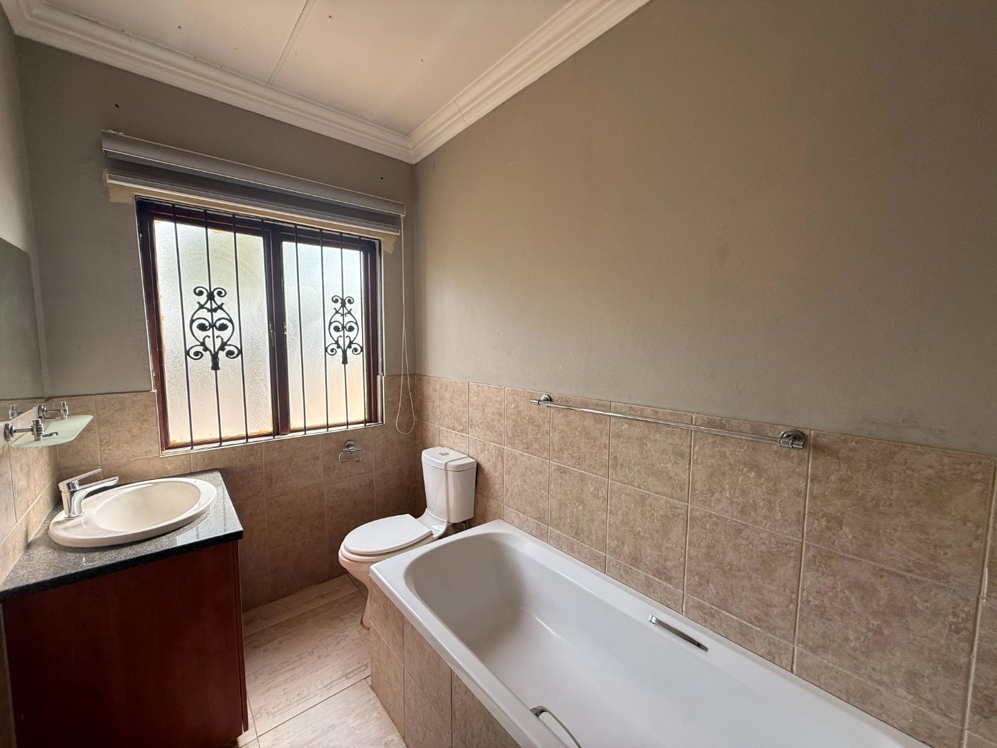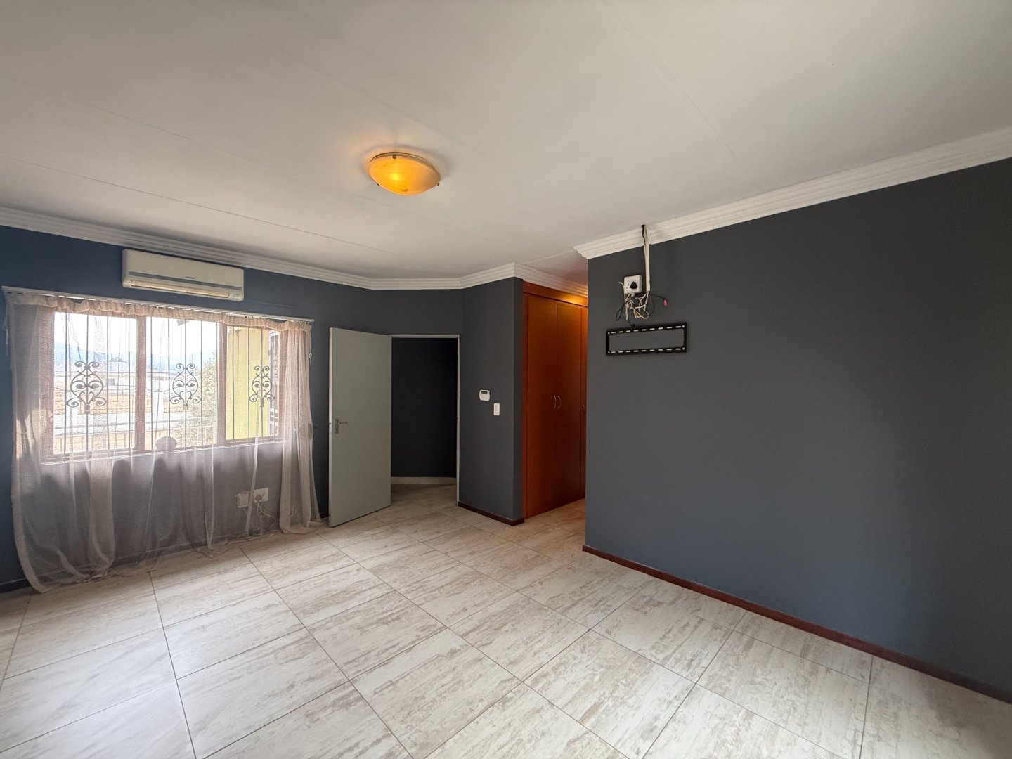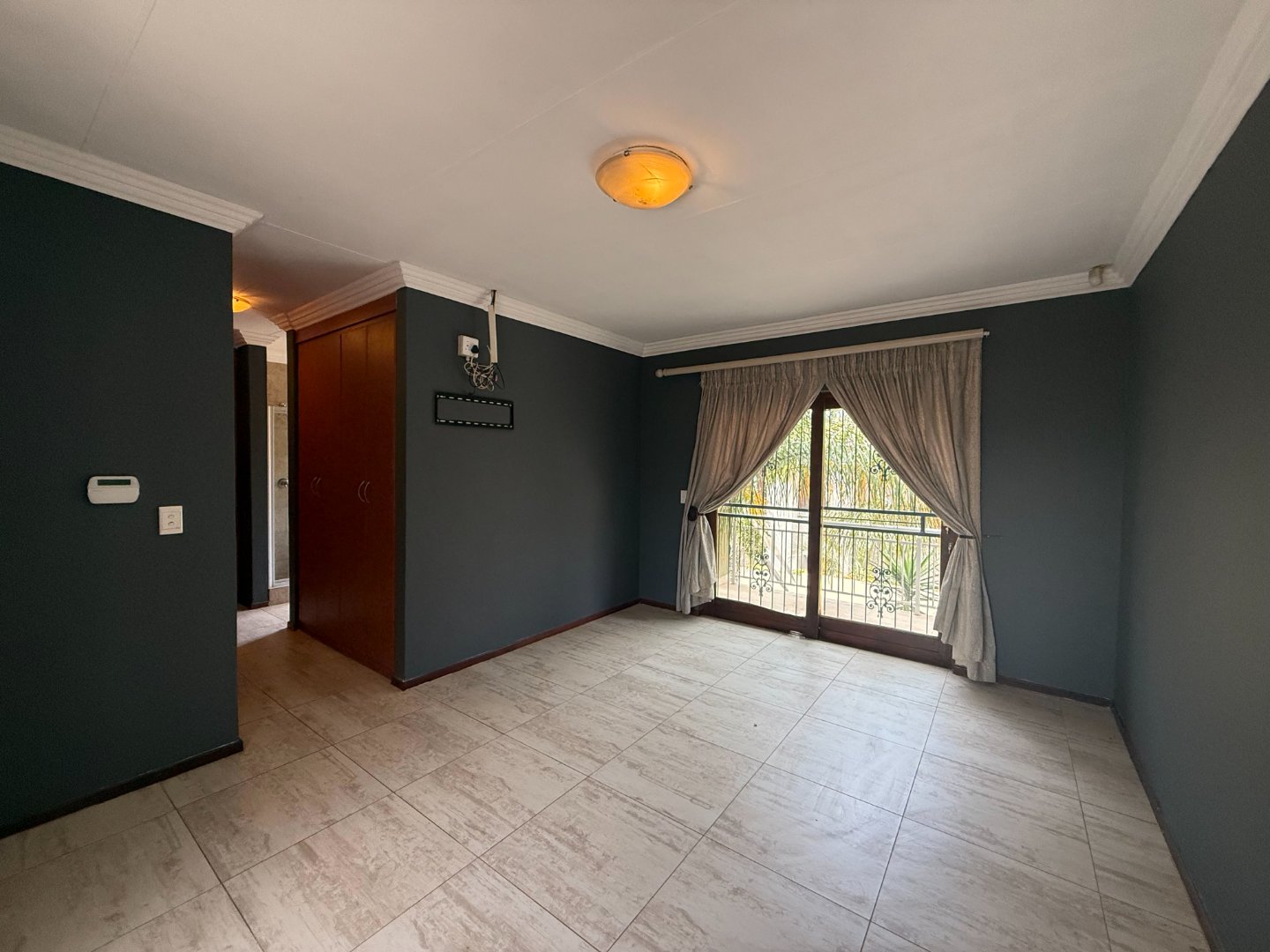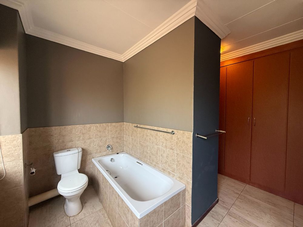 Upstairs, you’ll find three generously sized bedrooms. Two bedrooms share a bathroom fitted with a bath, basin, and toilet. The main bedroom boasts a walk-in closet, a full en-suite bathroom, and a private balcony with stunning views of the Magalies mountains.