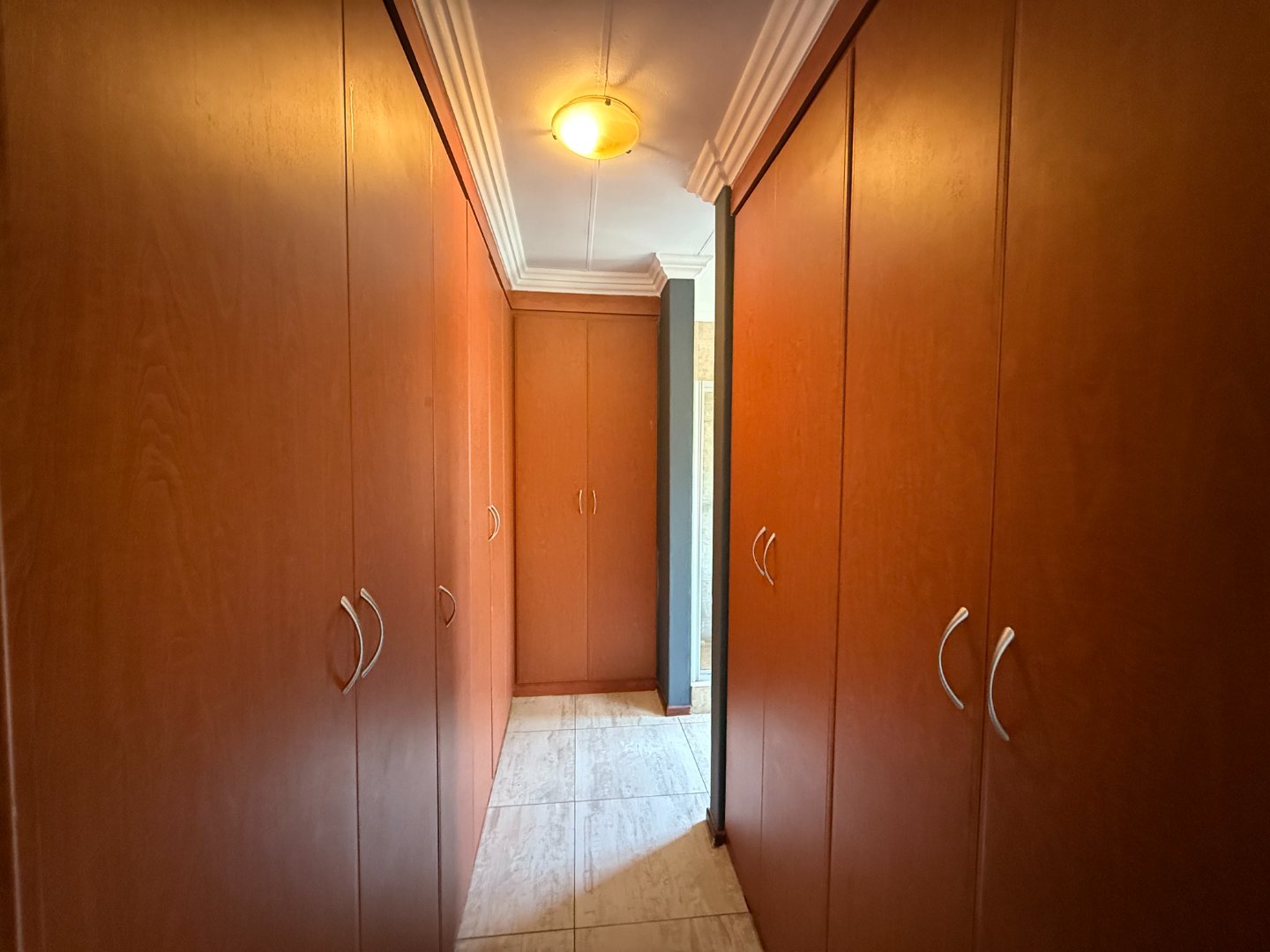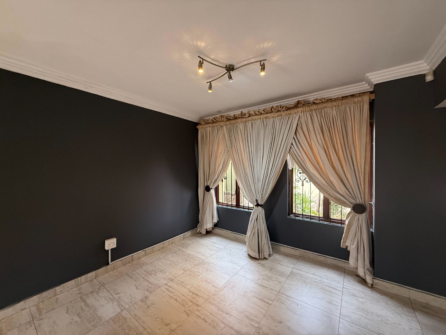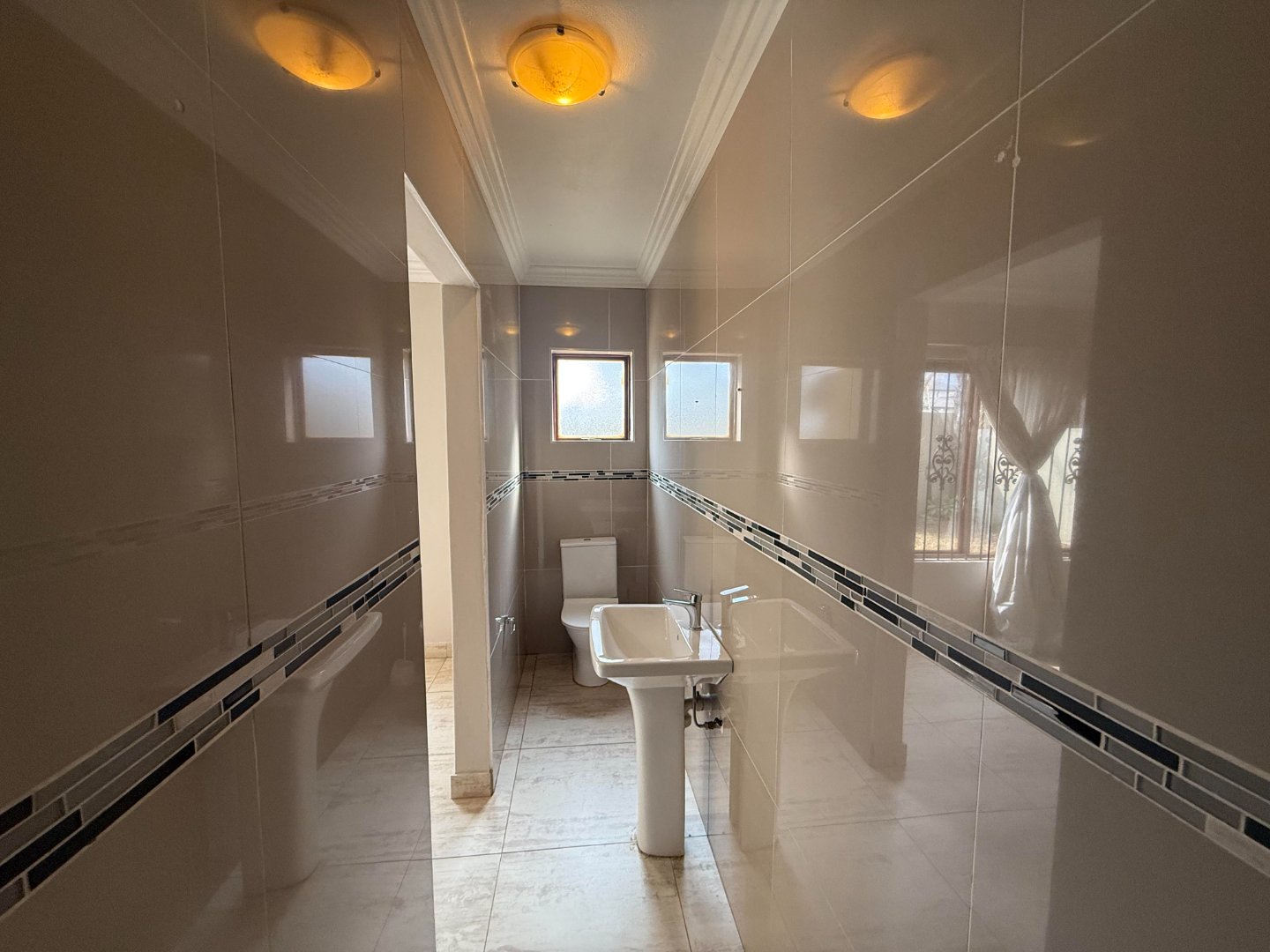 Upstairs, you’ll find three generously sized bedrooms. Two bedrooms share a bathroom fitted with a bath, basin, and toilet. The main bedroom boasts a walk-in closet, a full en-suite bathroom, and a private balcony with stunning views of the Magalies mountains.