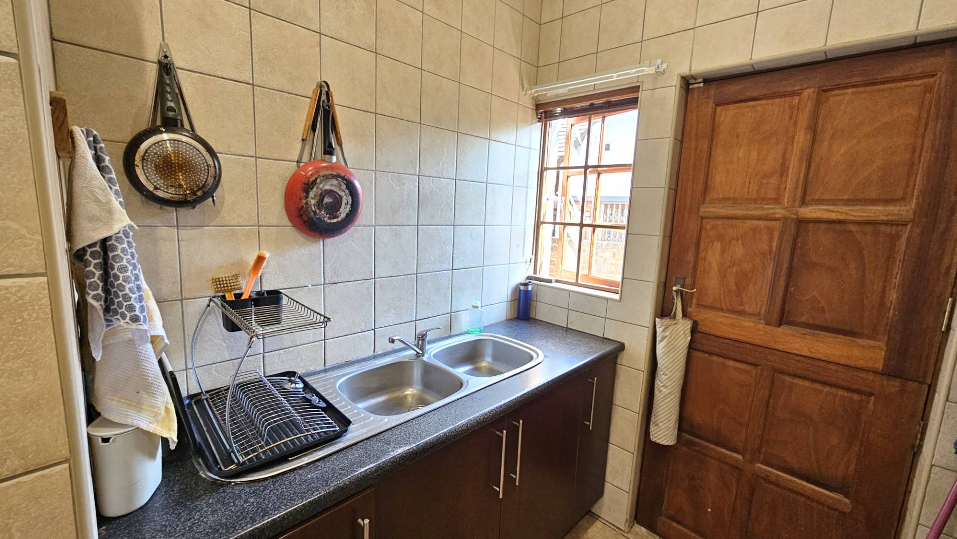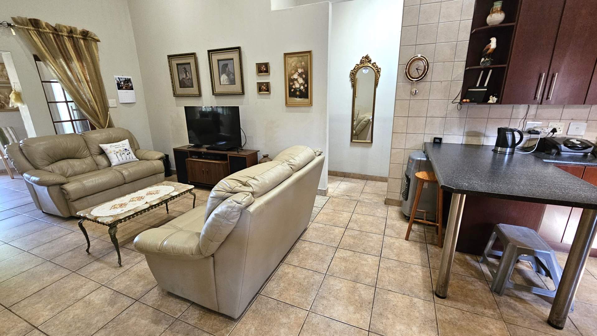 Separate laundry/scullery enough space for 2 appliances. From the lounge leading to a
