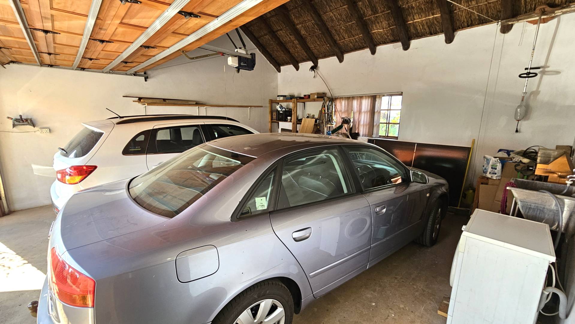 Extra length double automated garages which are also equipped for laundry purposes.