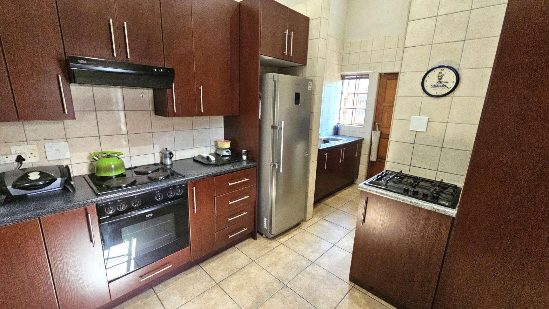 electric hob, ample cupboard space and walk in pantry.