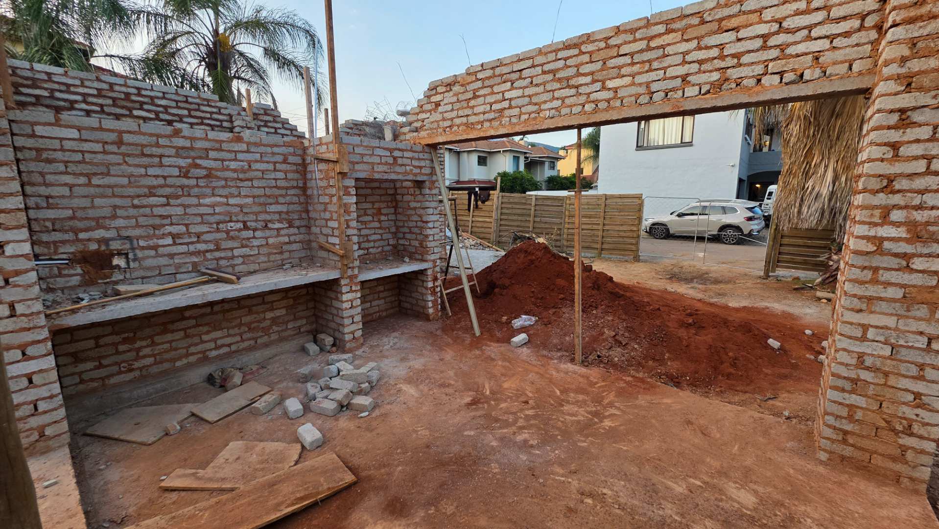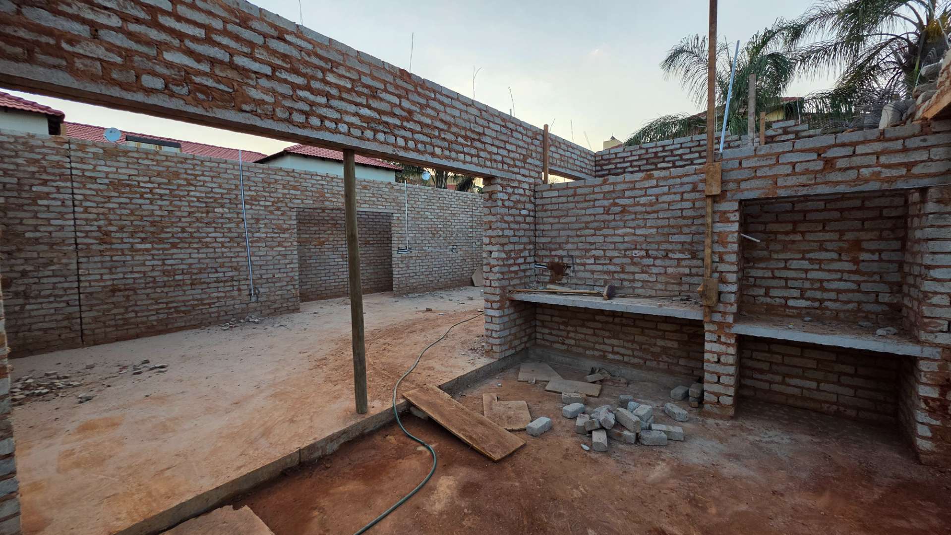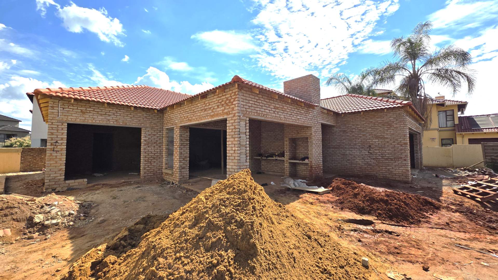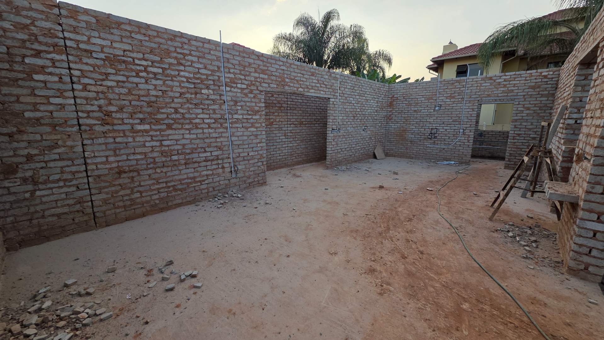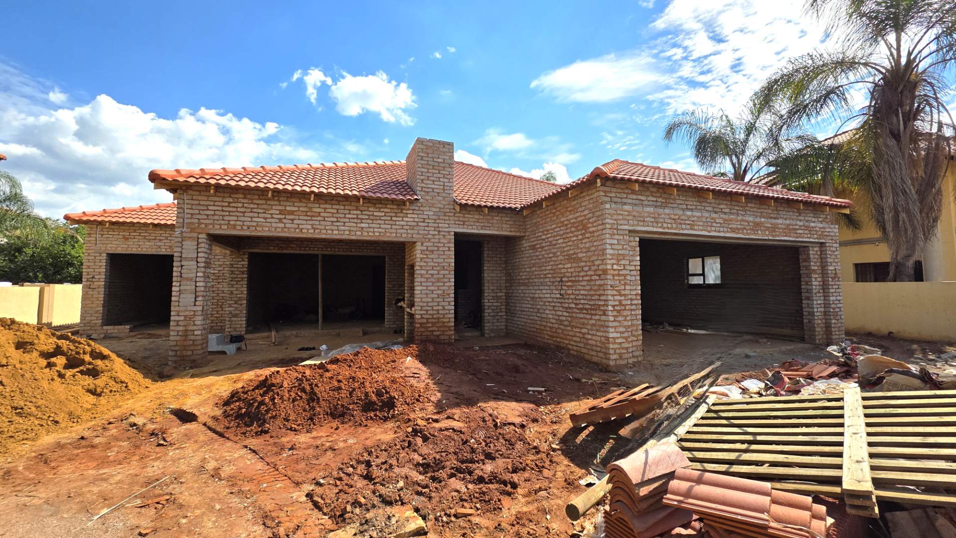 Double automated garages. 3 Boundary walls already in place.
