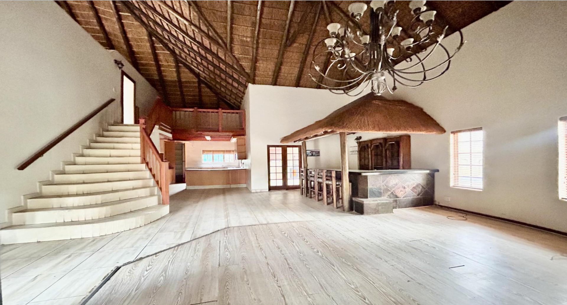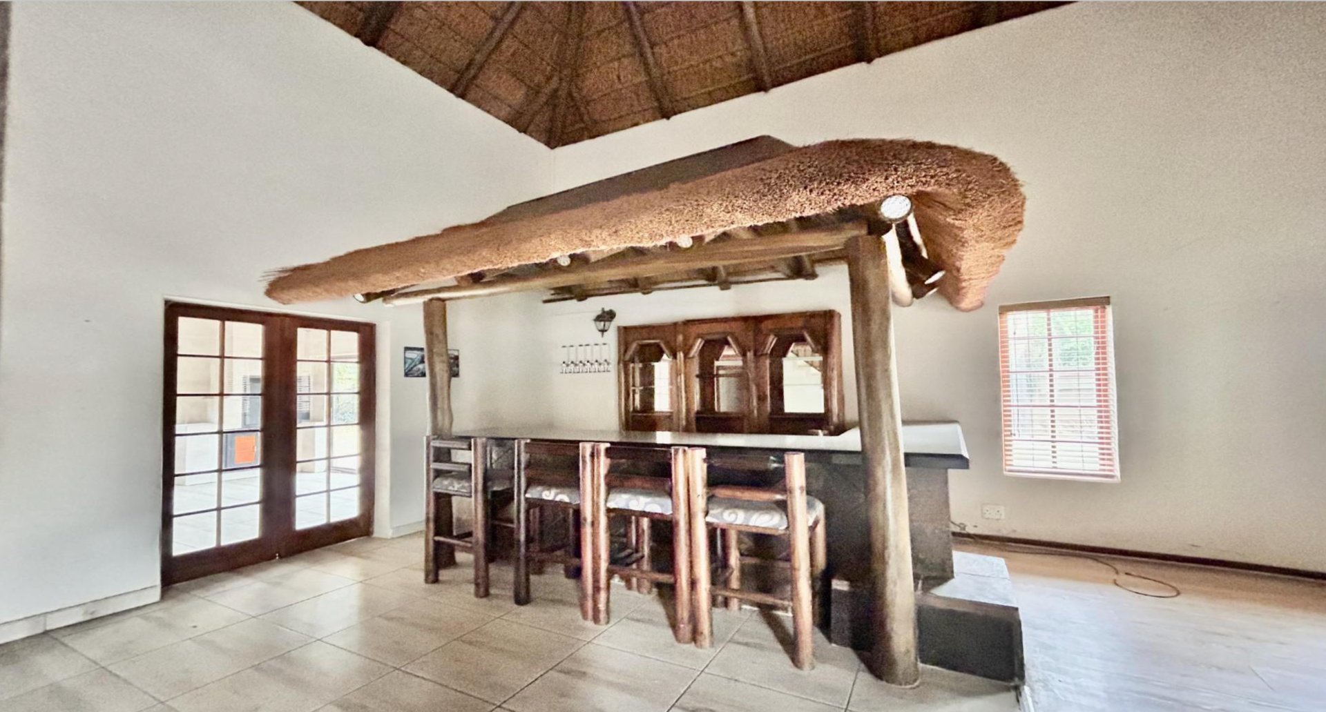 Sliding doors open to a cosy enclosed braai area, creating an all-weather space perfect for year-round gatherings. A built-in bar further enhances the entertainer’s appeal.