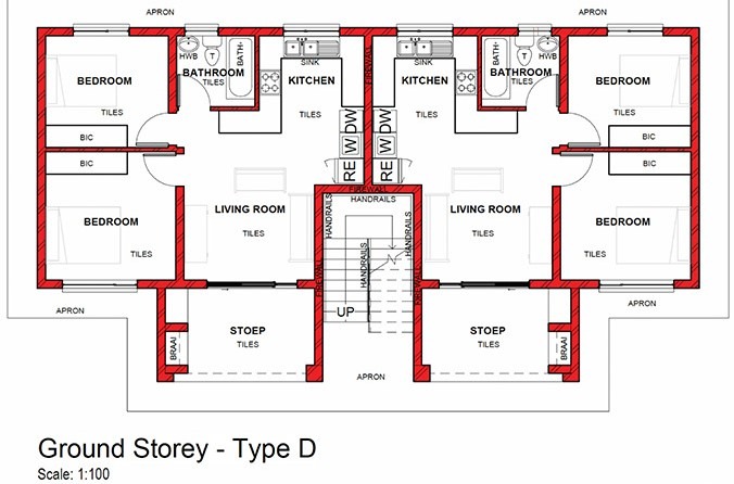185.38sqm Three Bedroom duplex units = R2 126/m