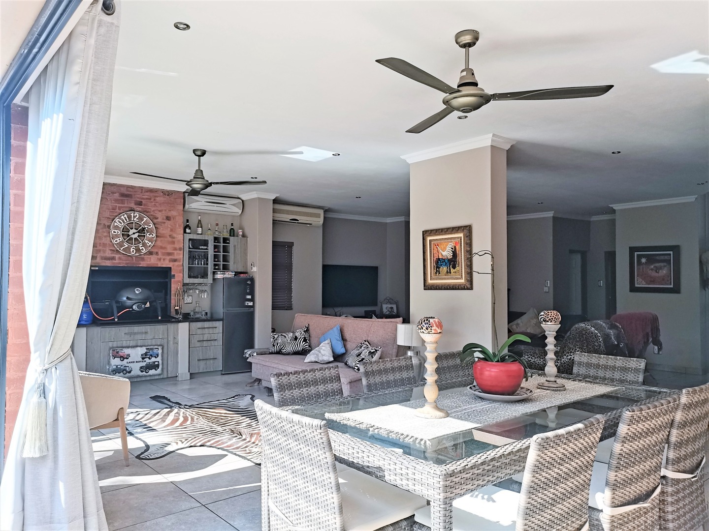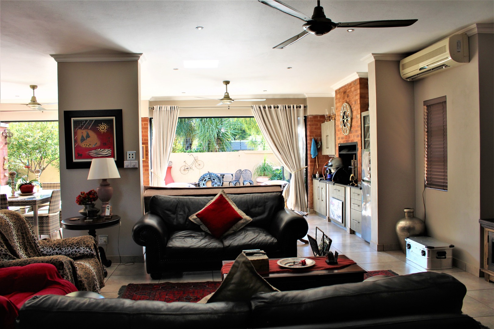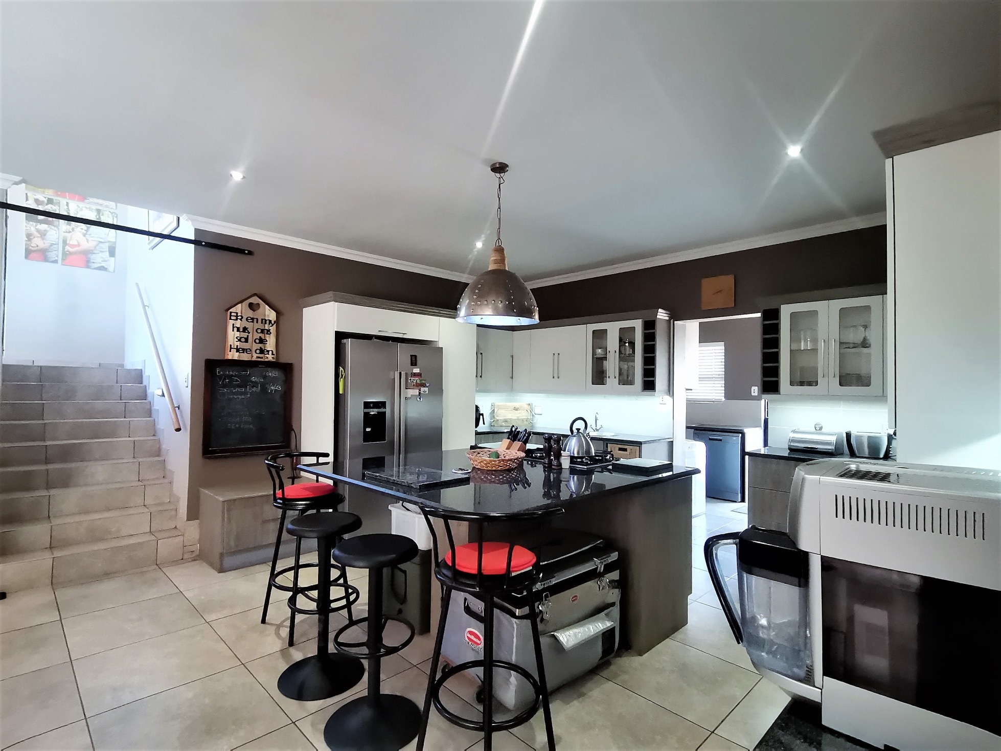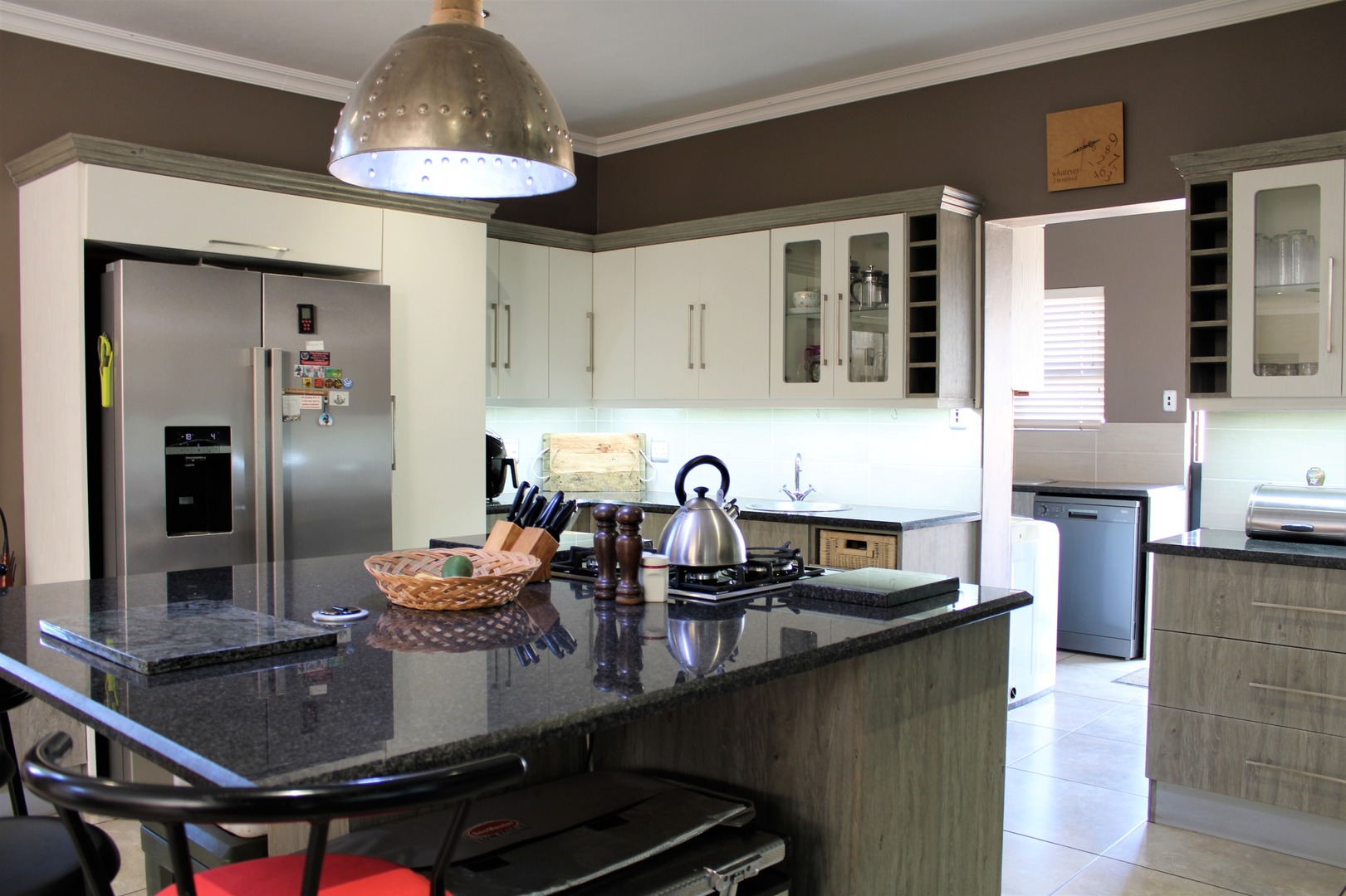 Step inside and be greeted by expansive, sunlit living spaces complemented by a cooling air conditioner—creating a welcoming atmosphere in every season. The heart of the home is the modern open-plan kitchen, complete with a sleek central island and generous cabinetry, tailor-made for cooking enthusiasts who love to entertain.Flowing seamlessly from the living area, you’ll find an enclosed entertainment patio—an inviting space for year-round braais, intimate gatherings, or simply unwinding with family and friends.