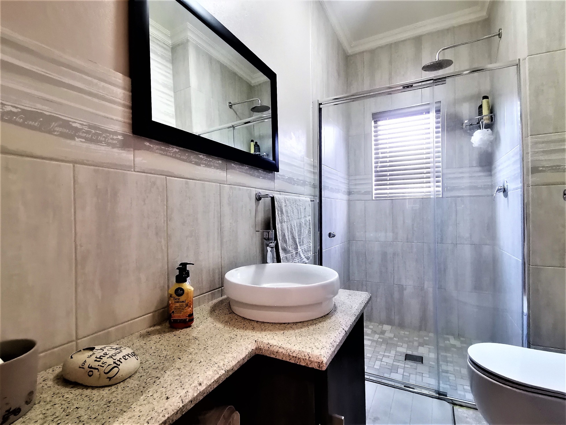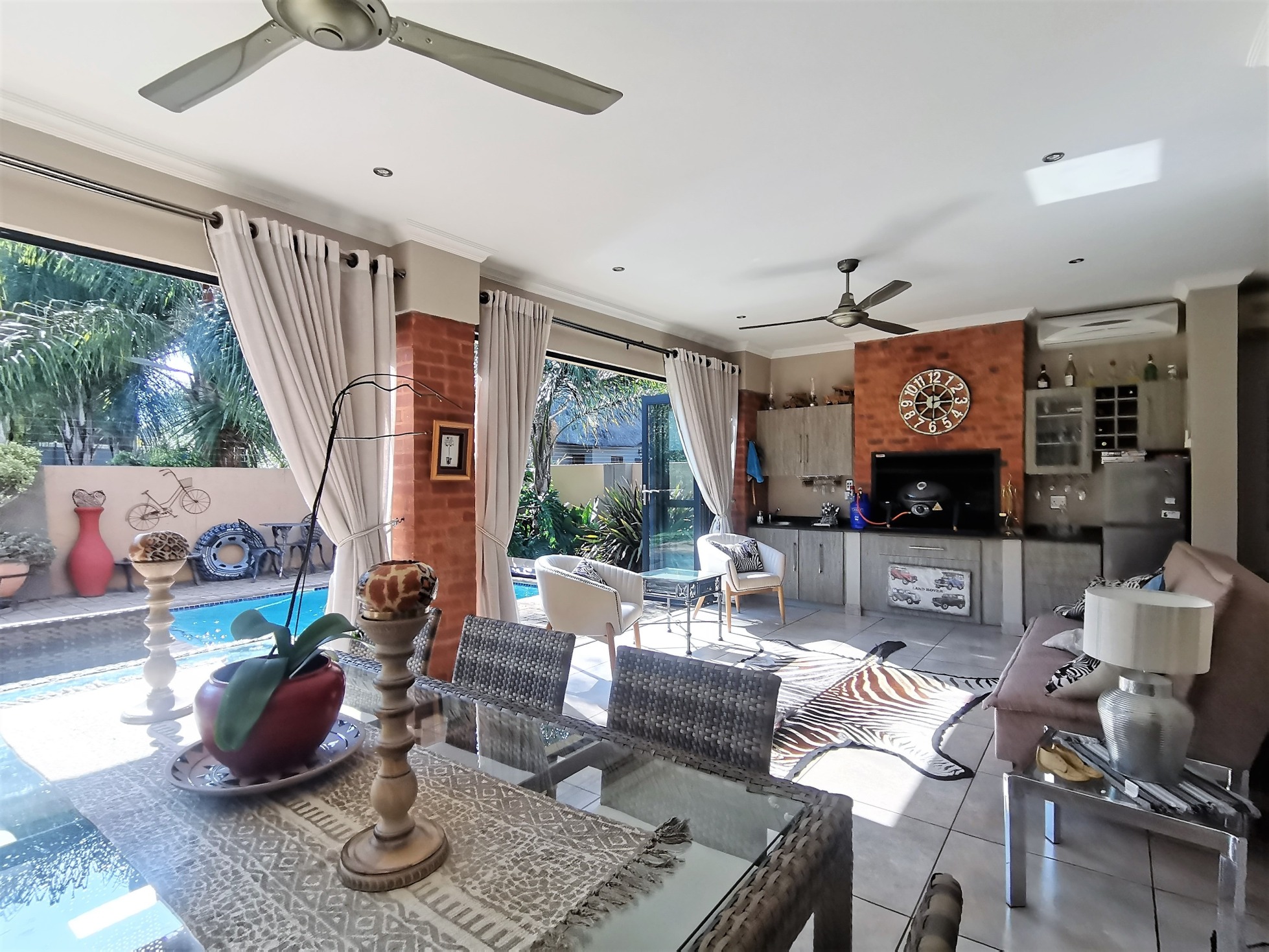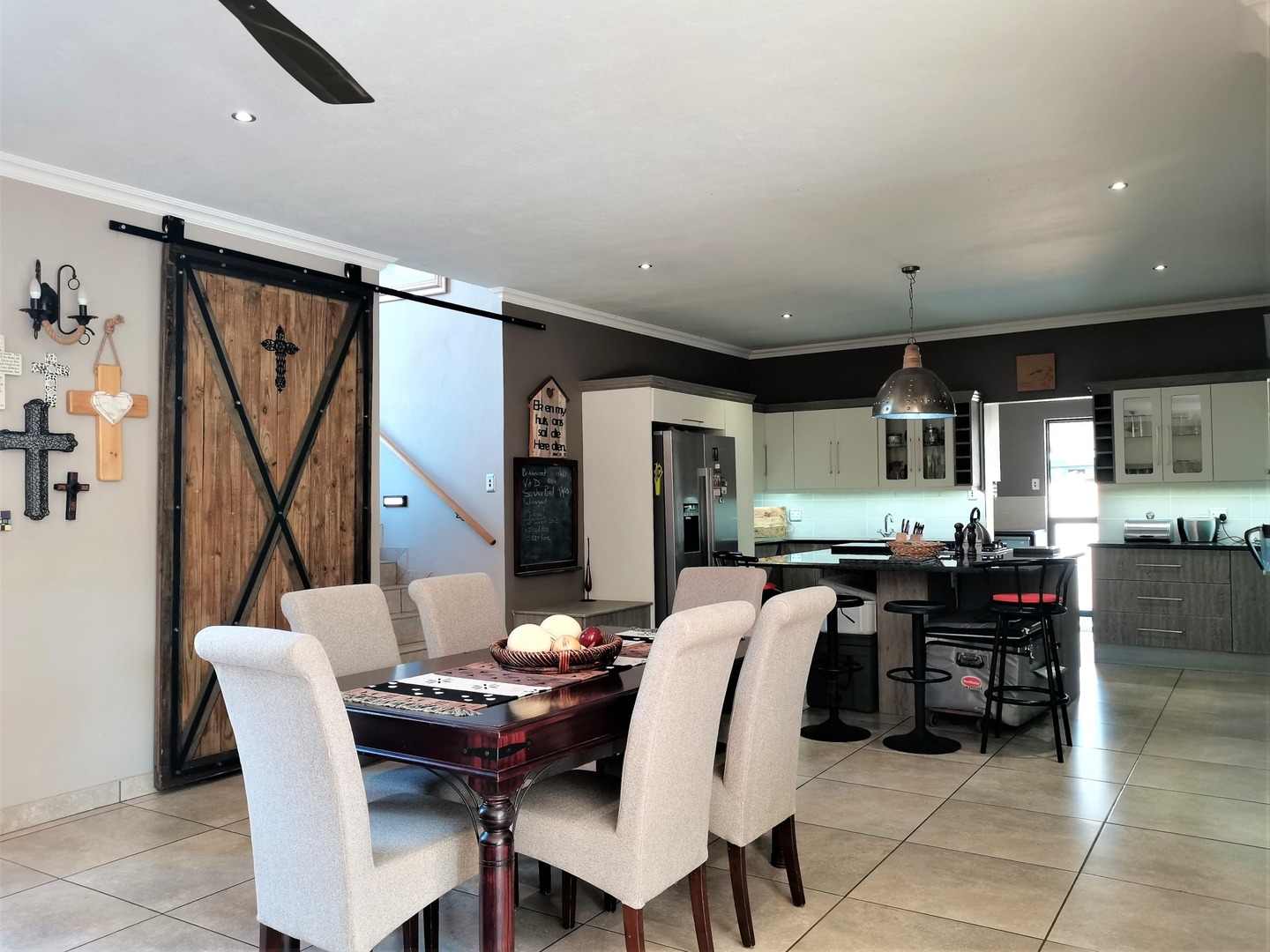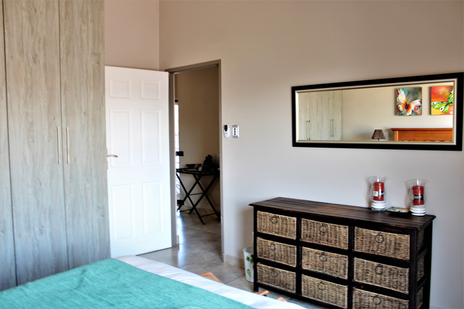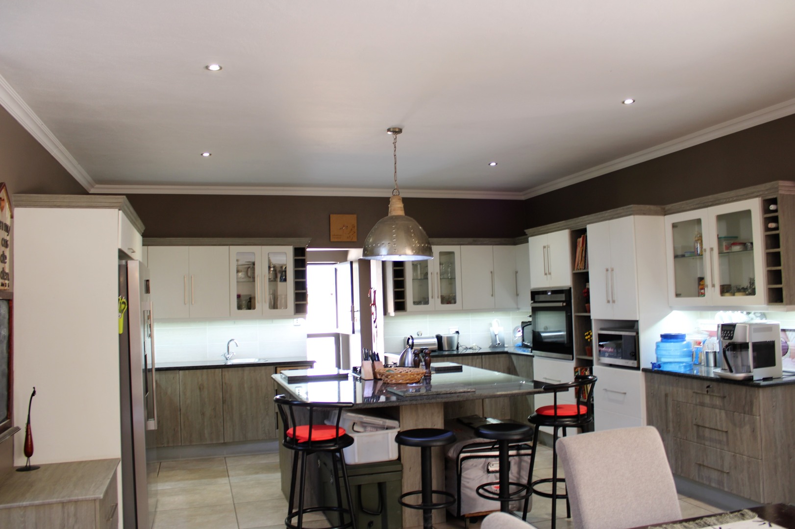 Step inside and be greeted by expansive, sunlit living spaces complemented by a cooling air conditioner—creating a welcoming atmosphere in every season. The heart of the home is the modern open-plan kitchen, complete with a sleek central island and generous cabinetry, tailor-made for cooking enthusiasts who love to entertain.Flowing seamlessly from the living area, you’ll find an enclosed entertainment patio—an inviting space for year-round braais, intimate gatherings, or simply unwinding with family and friends.