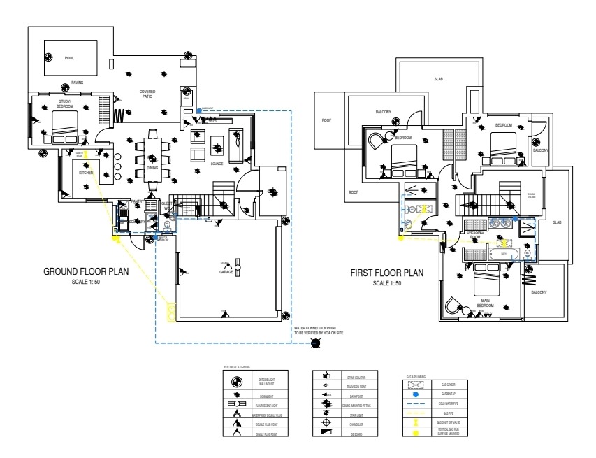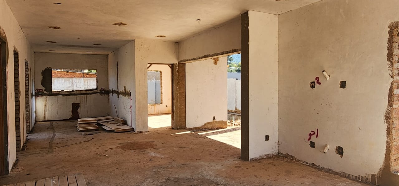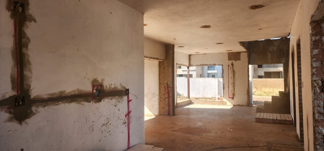 Most of the plumbing pipes and wiring are completed, ensuring essential services are in place.