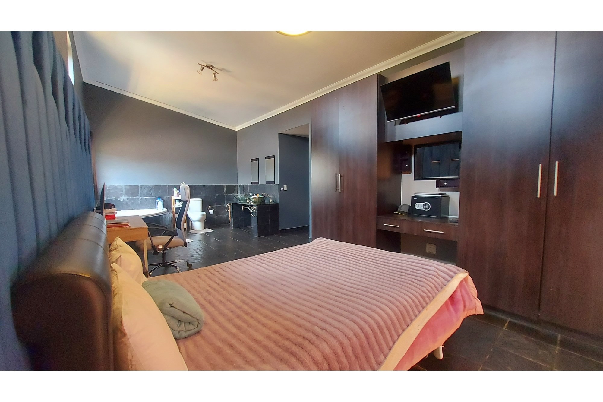 Welcome to your dream home in the prestigious Gateway Manor Estate, a perfect blend of luxury, comfort, and modern convenience. This exquisite double-storey residence, set within a secure estate in Melodie, offers breathtaking views of the Magalies Mountain range and a serene lifestyle. Upon arrival, you're greeted by a spacious, beautifully paved front yard that leads to an inviting patio complete with a built-in braai. The adjacent sparkling swimming pool and cozy boma area make this outdoor space ideal for entertaining and creating cherished memories year-round. The well-manicured garden adds to the tranquility and charm of the property. Step inside to discover a sophisticated open-plan living area, where the lounge, dining room, and modern kitchen flow seamlessly together. The kitchen, equipped with sleek granite countertops, ample cabinetry, a convenient breakfast nook, and gas stove, is perfect for both casual meals and elegant gatherings. A stunning chandelier adds a touch of elegance to the dining area, while a guest toilet is conveniently located on the ground floor. Direct access to the double garage enhances convenience. Upstairs, the home offers four generously sized bedrooms, each designed with comfort and style in mind. The luxurious main bedroom features its own private balcony and an en-suite bathroom, offering a tranquil retreat. The additional three bedrooms share a full, well-appointed bathroom, with the fourth bedroom also enjoying its own private balcony. This home is packed with modern amenities, including an 8 kVA backup inverter with auto switch, ensuring uninterrupted power, as well as fiber connectivity for high-speed internet. Additional features include safari black slate stone tiles, a state-of-the-art camera and motion detection system, and a pool cover for added safety and security. With its combination of elegance, functionality, and modern comforts, this exceptional property offers a lifestyle of luxury and relaxation, making it a true gem in the heart of Gateway Manor Estate.