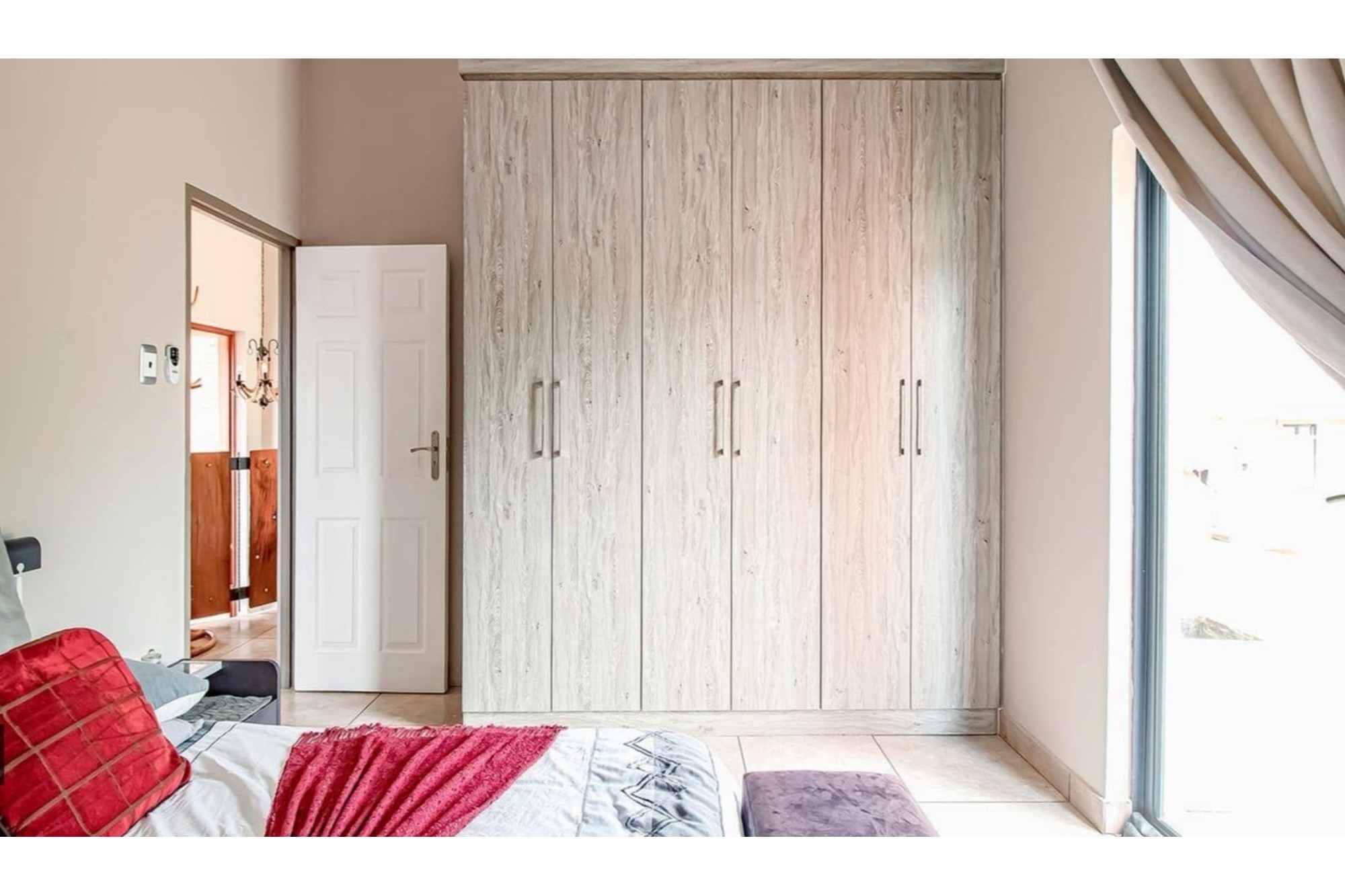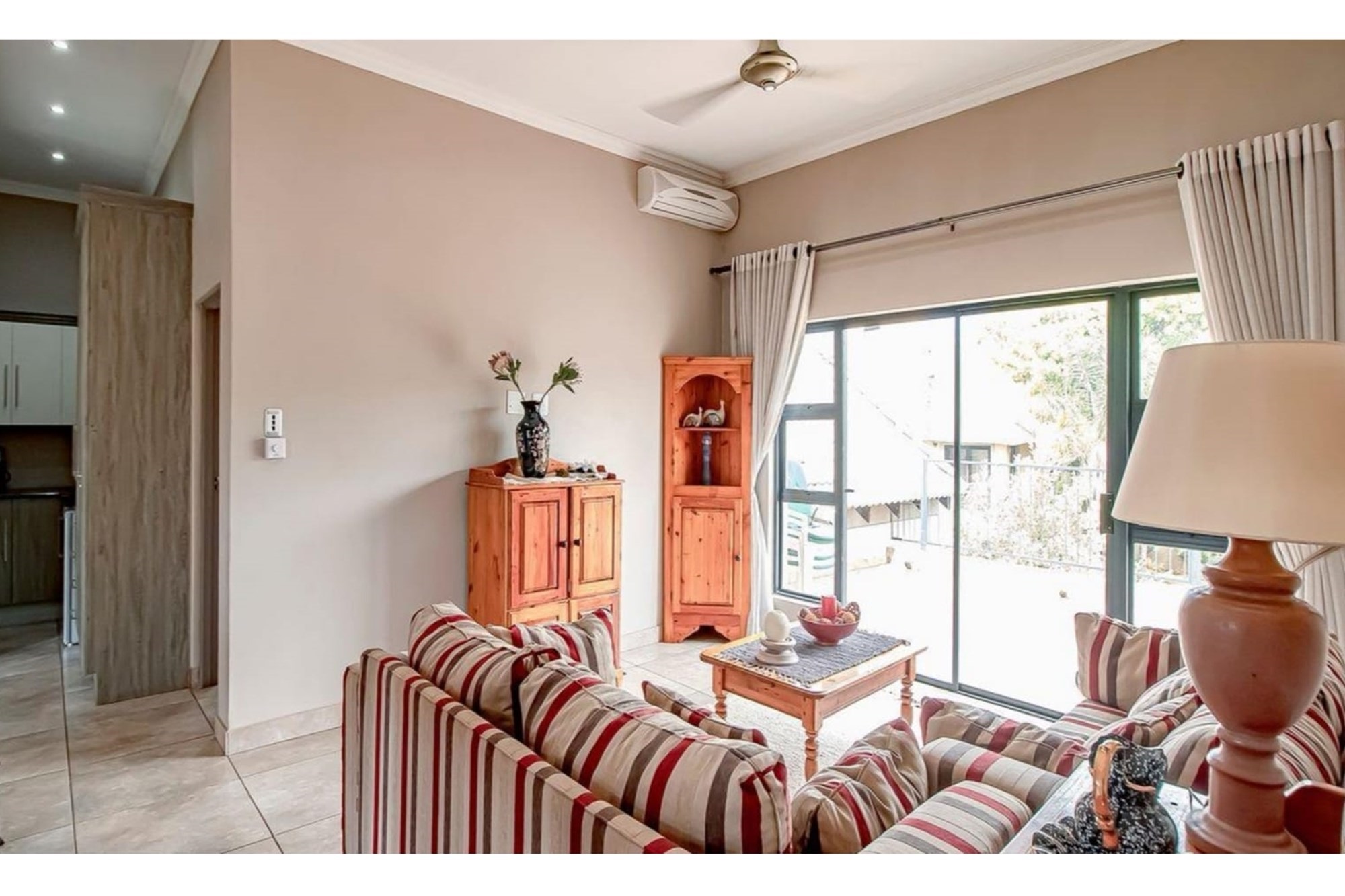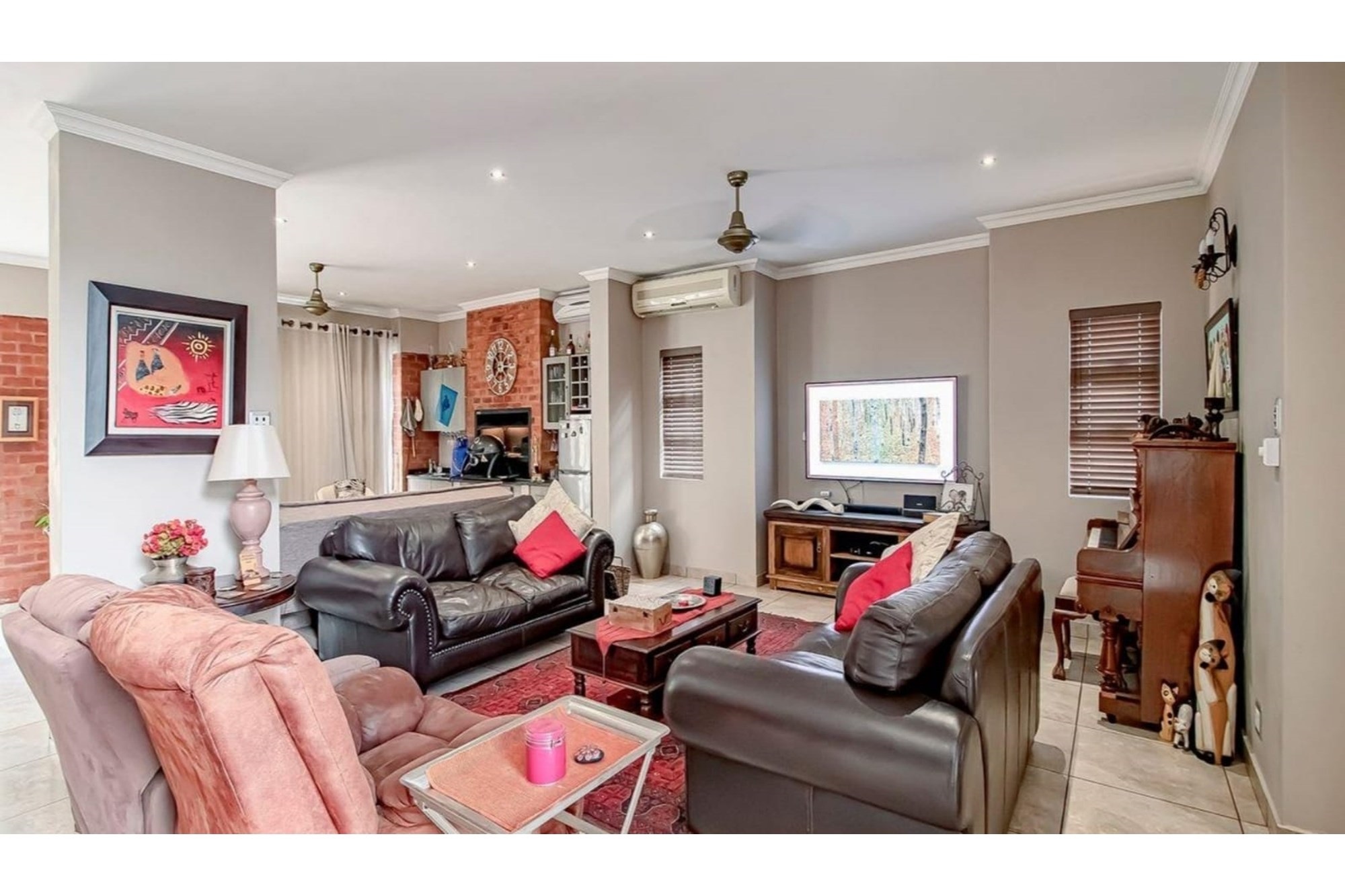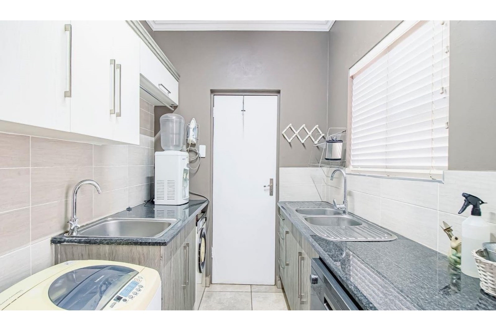 This beautifully designed home offers an open-plan layout on the ground floor, perfect for family living and entertaining. The space includes a welcoming family room, a modern kitchen with a scullery, walk-in pantry, ample cupboard space, granite centre island, and a gas hob. The kitchen seamlessly flows into a stylish lounge and dining area, with an entertainment space featuring a built-in braai. Stacking doors open onto a lush, beautifully maintained garden and a sparkling swimming pool, creating the perfect indoor-outdoor lifestyle.