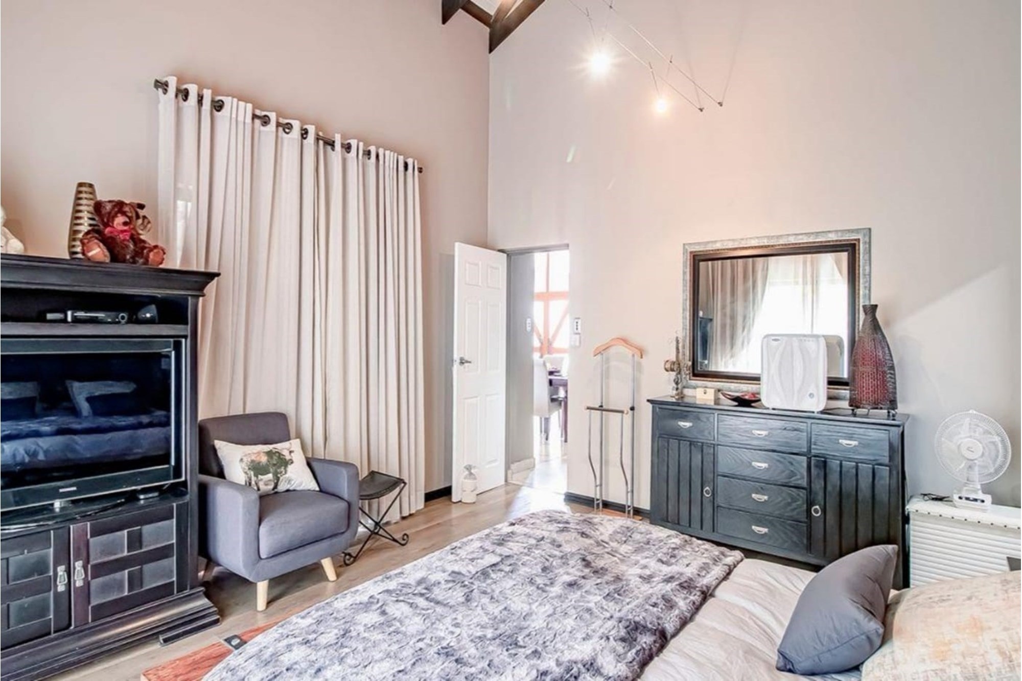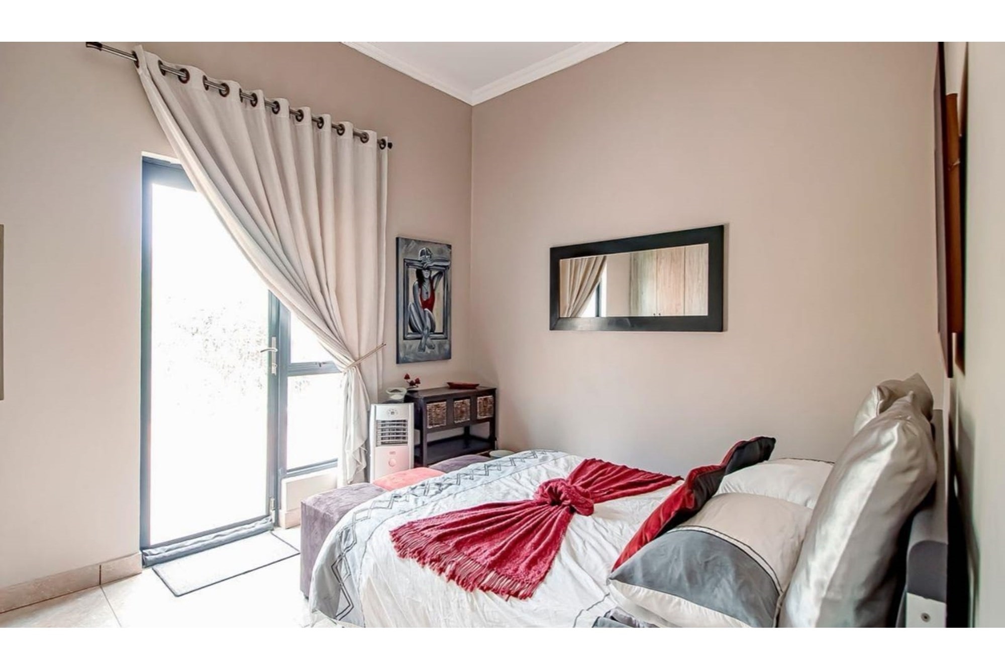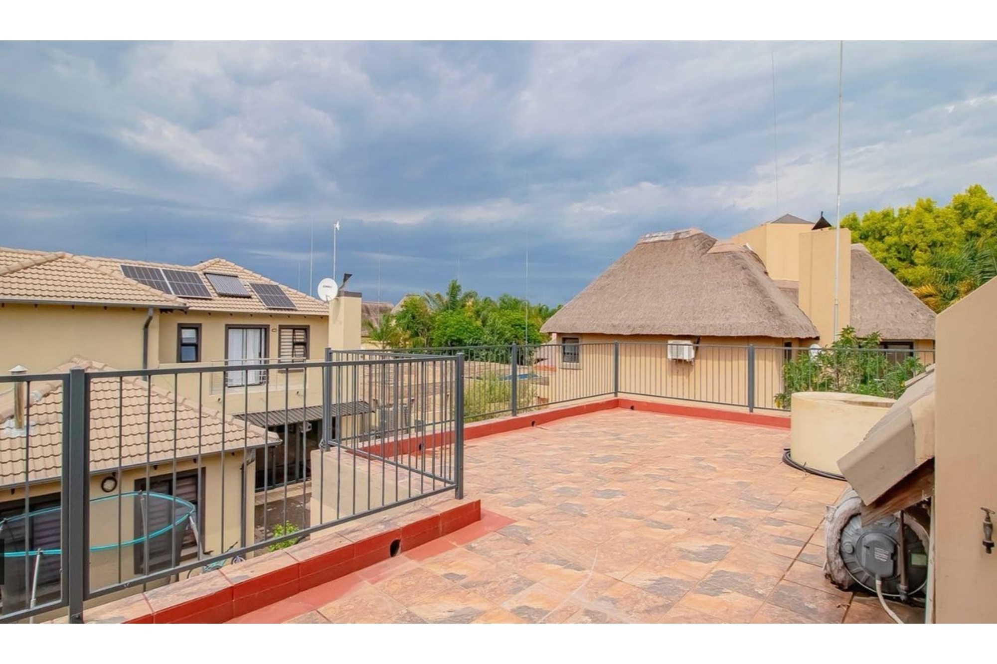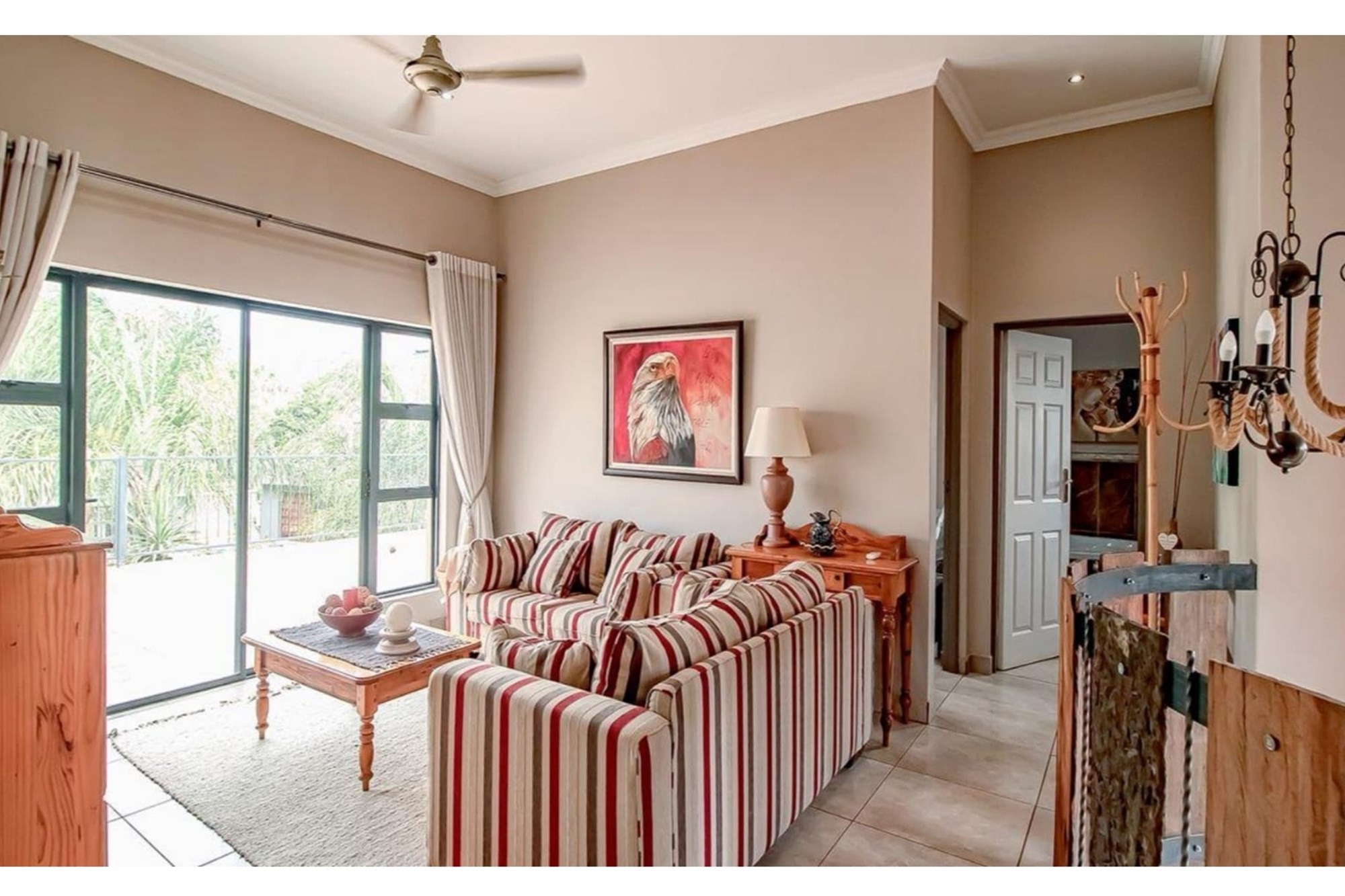 This beautifully designed home offers an open-plan layout on the ground floor, perfect for family living and entertaining. The space includes a welcoming family room, a modern kitchen with a scullery, walk-in pantry, ample cupboard space, granite centre island, and a gas hob. The kitchen seamlessly flows into a stylish lounge and dining area, with an entertainment space featuring a built-in braai. Stacking doors open onto a lush, beautifully maintained garden and a sparkling swimming pool, creating the perfect indoor-outdoor lifestyle.