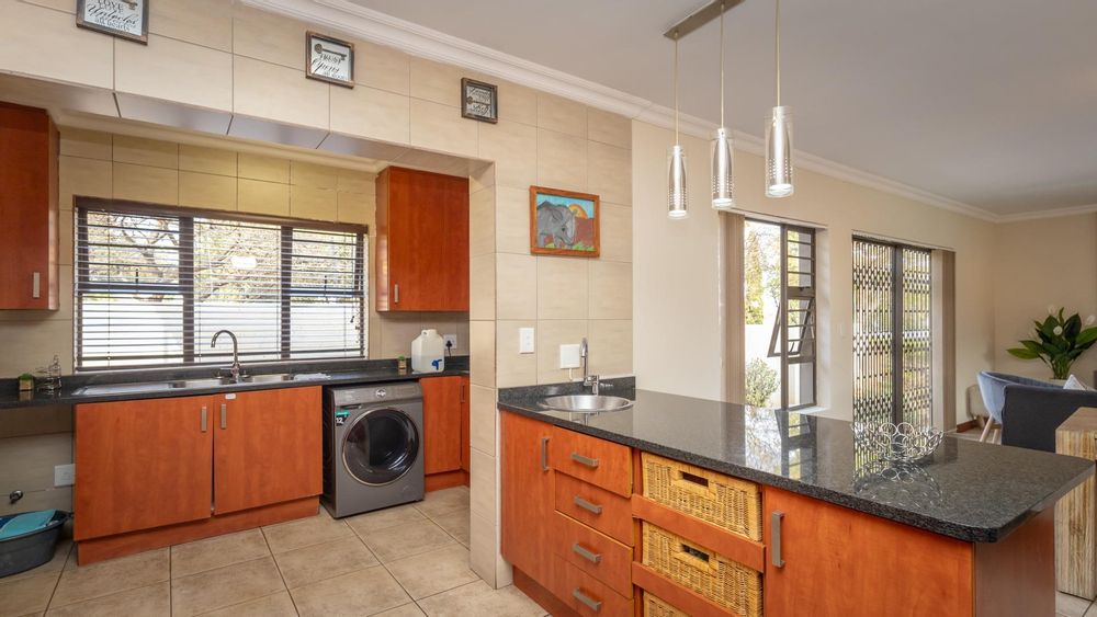 Welcome to this charming and inviting 3-bedroom home nestled in a secure estate in the heart of Melodie. Perfectly designed with family living in mind, this property offers a warm atmosphere, practical layout, and quality finishes throughout. The heart of the home features a cozy lounge, a dining room ideal for family meals, and a well-appointed kitchen with a separate scullery and laundry area. The spacious main bedroom includes an en-suite bathroom, while a second full bathroom and guest toilet offer convenience for the rest of the household.