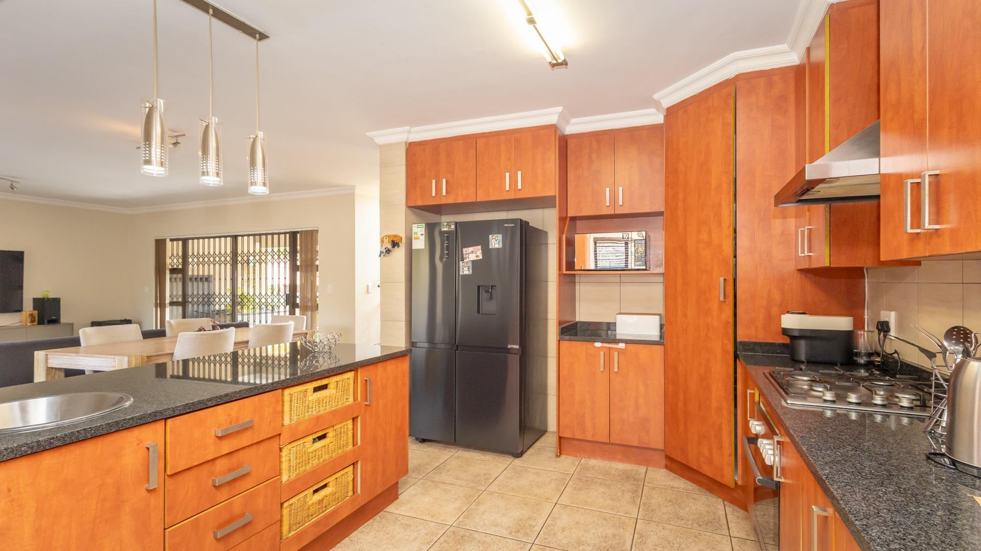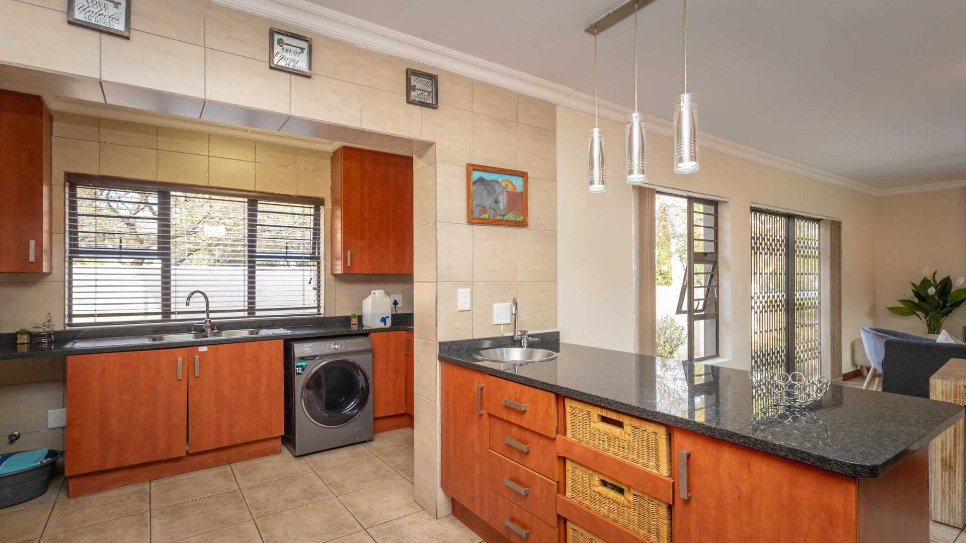 Step outside to a welcoming patio with a built-in braai, overlooking a beautifully maintained garden – ideal for relaxing or entertaining. A Wendy house adds extra storage, while the water tank with pressure pump and irrigation system ensures easy garden upkeep. Additional features include an inverter for backup power, alarm system, Trelli doors, a security gate, and double garages with two extra parking spaces. This pet-friendly home truly has it all, combining comfort, security, and a relaxed lifestyle in one of Melodie`s most sought-after estates.