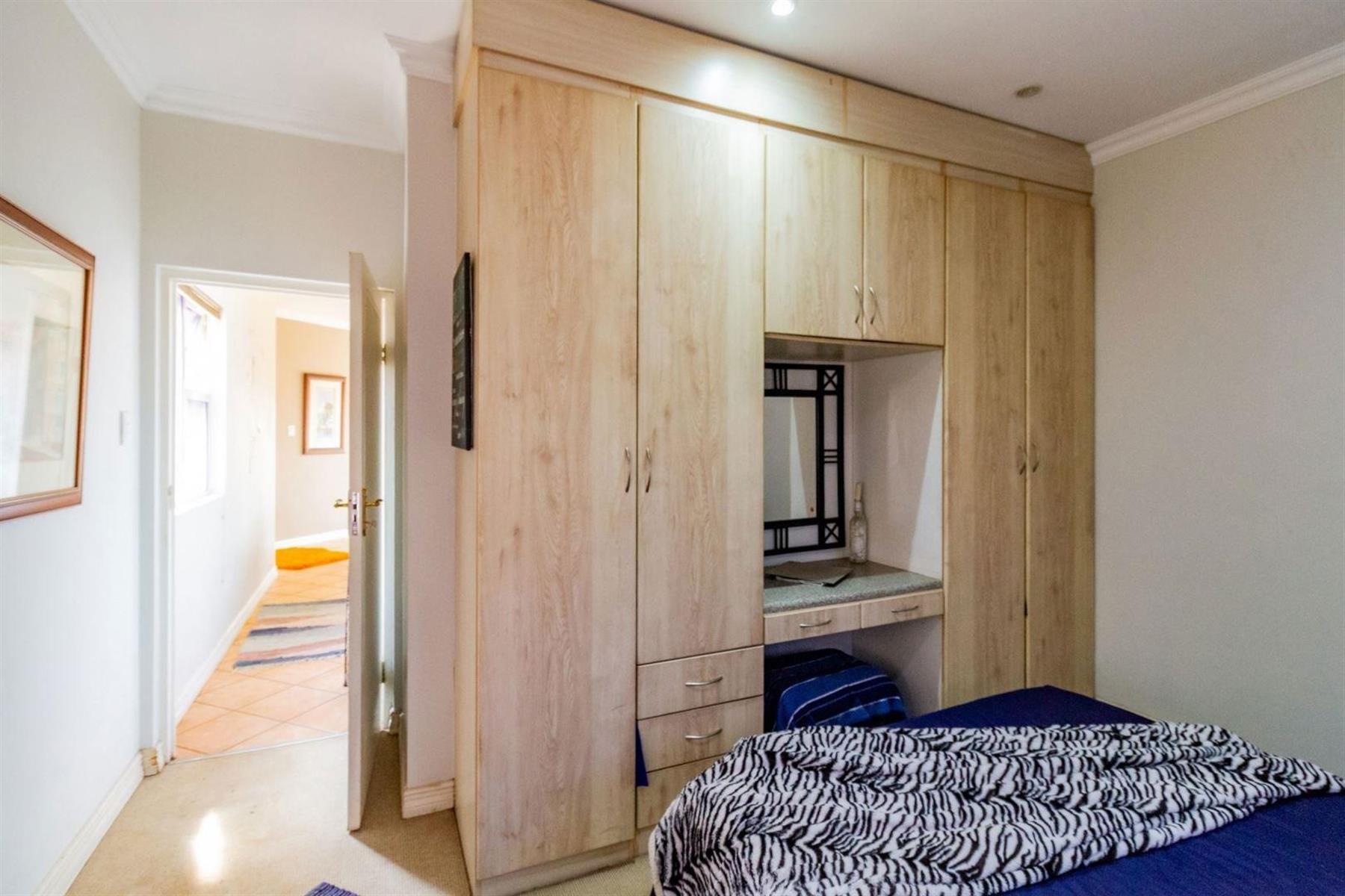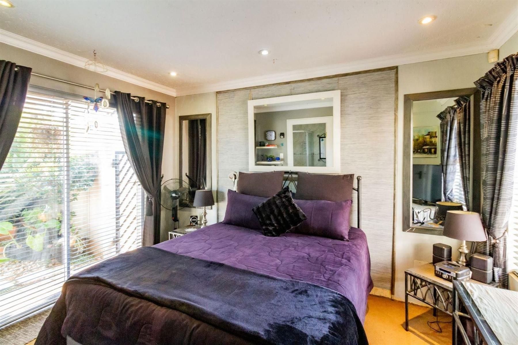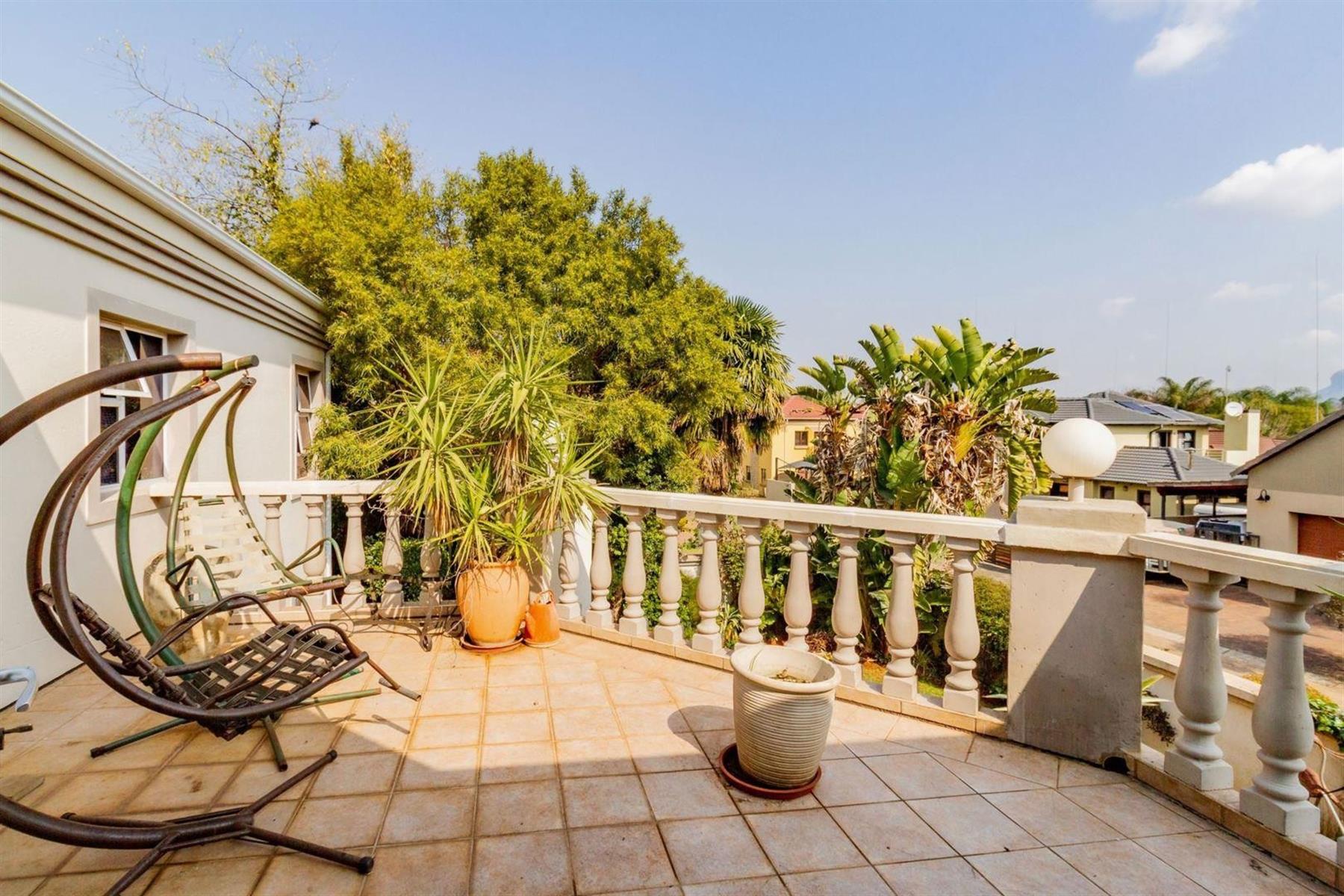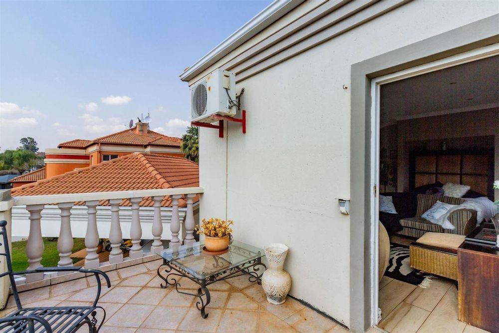 Upstairs, the home opens onto an expansive balcony with sweeping views of the Magaliesberg mountains and tranquil glimpses of the dam—an idyllic retreat for relaxation. The main bedroom serves as a luxurious sanctuary, boasting its own private balcony, ample space for a seating area, a walk-in wardrobe, and a full en-suite bathroom. Two additional bedrooms, each with built-in cupboards and plush carpeting, share a spacious full bathroom.