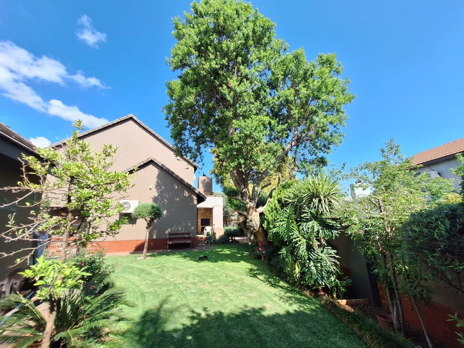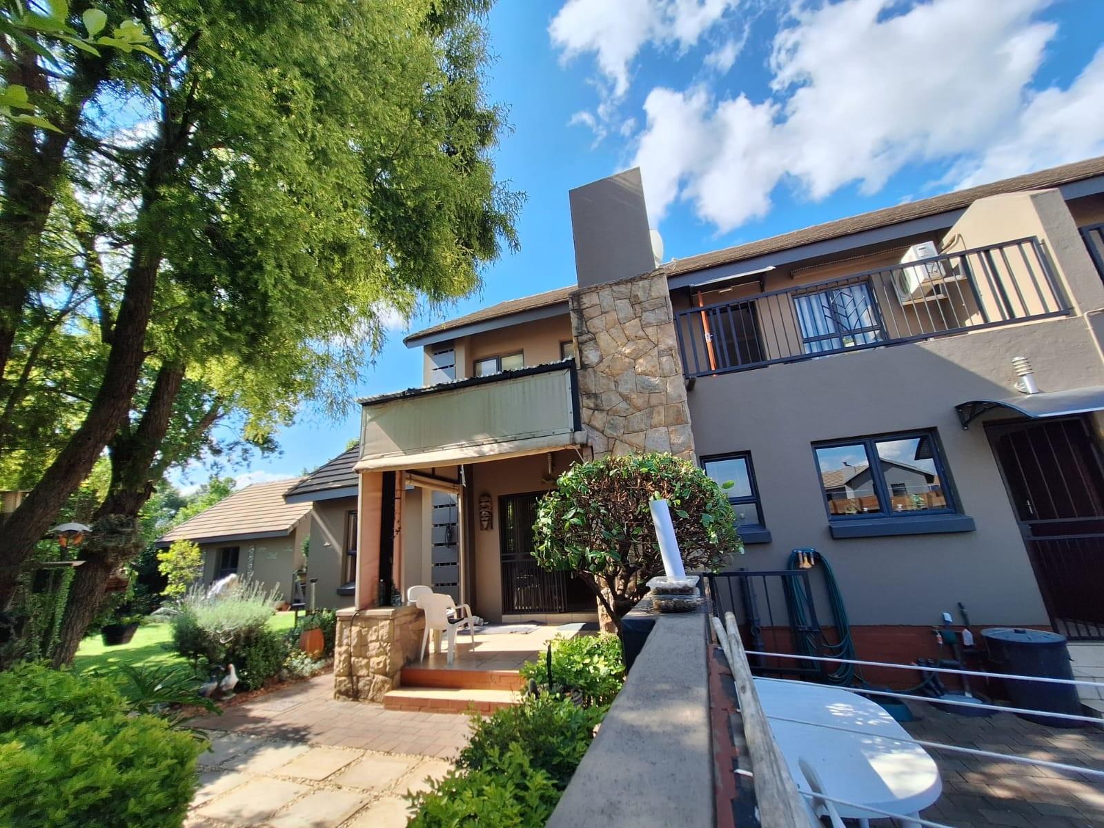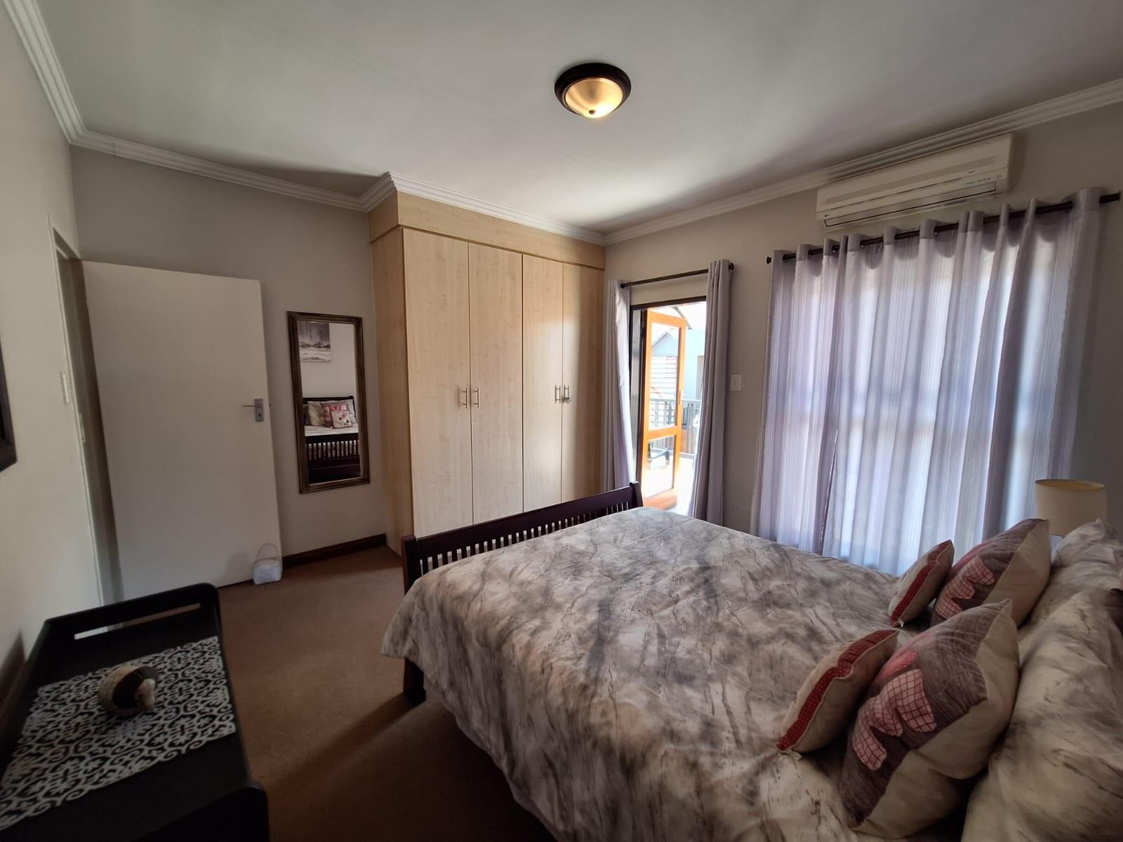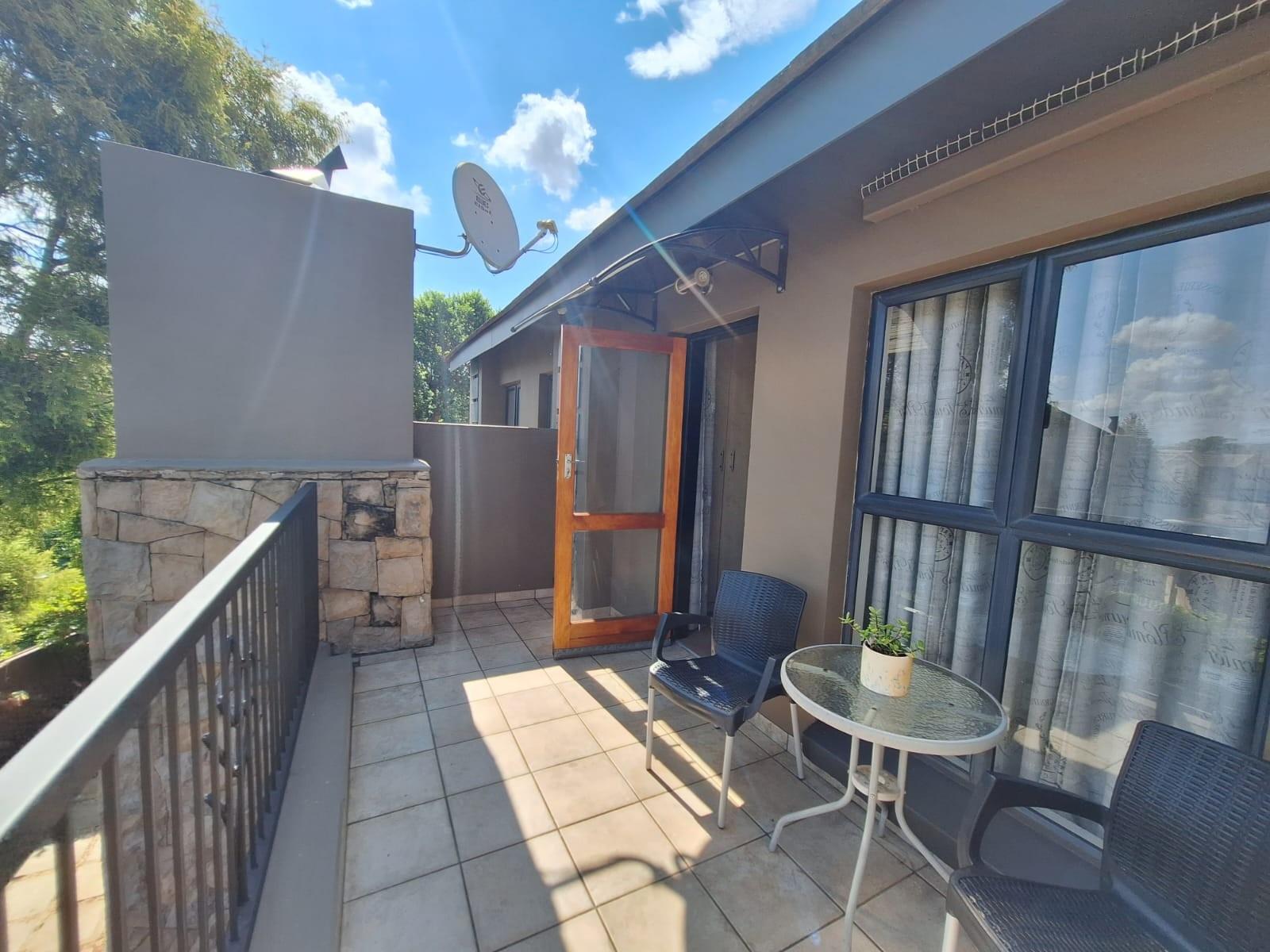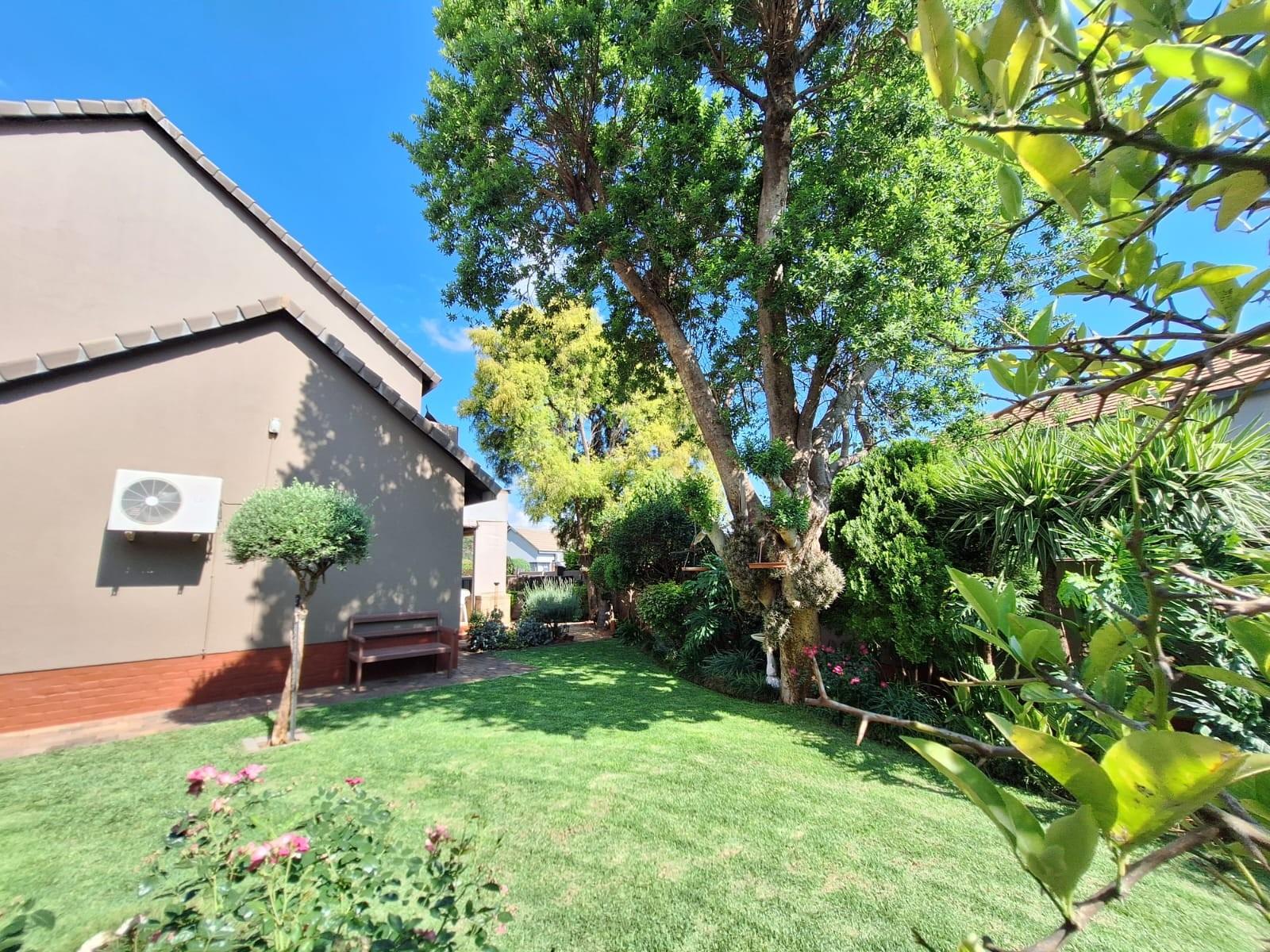 The living area opens onto a covered patio with a built-in braai, overlooking the well-maintained, irrigated garden — the perfect space for relaxing or entertaining.