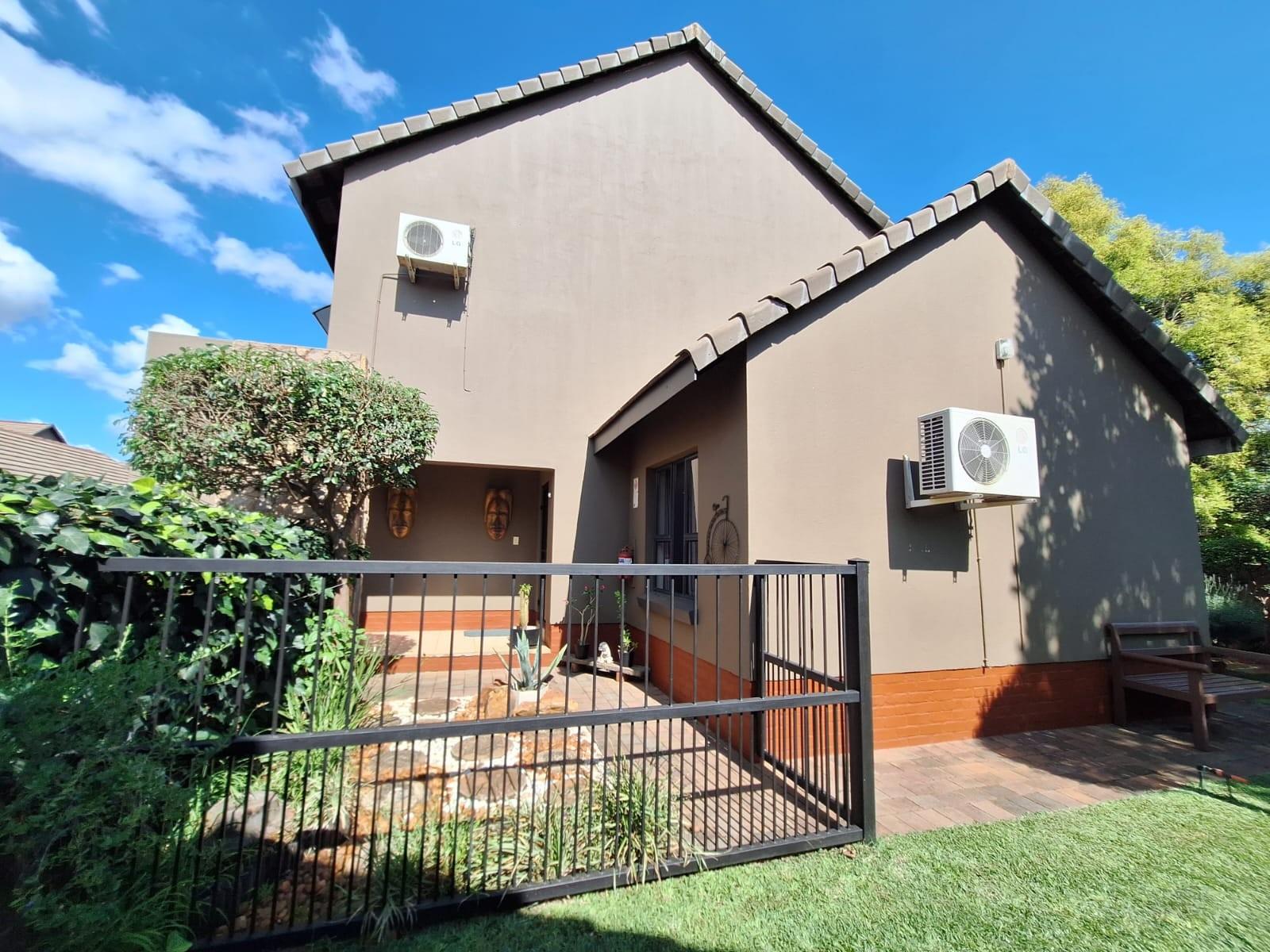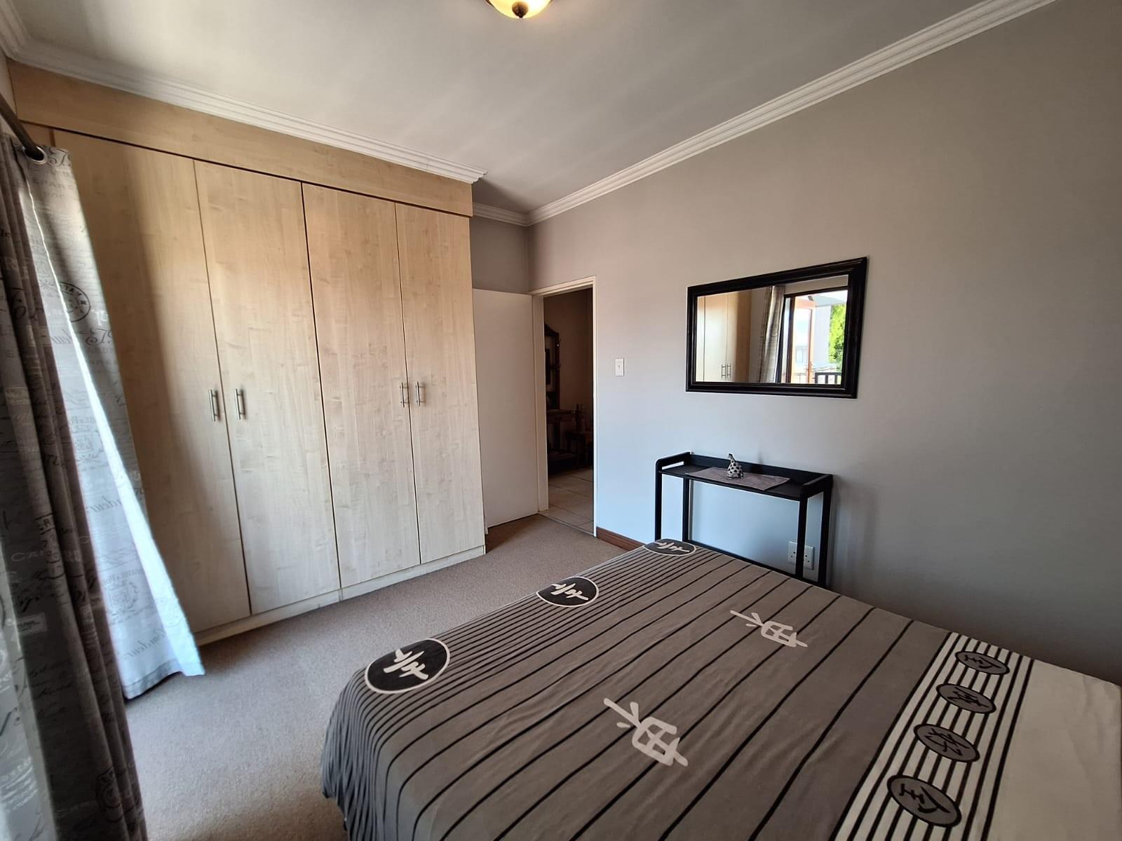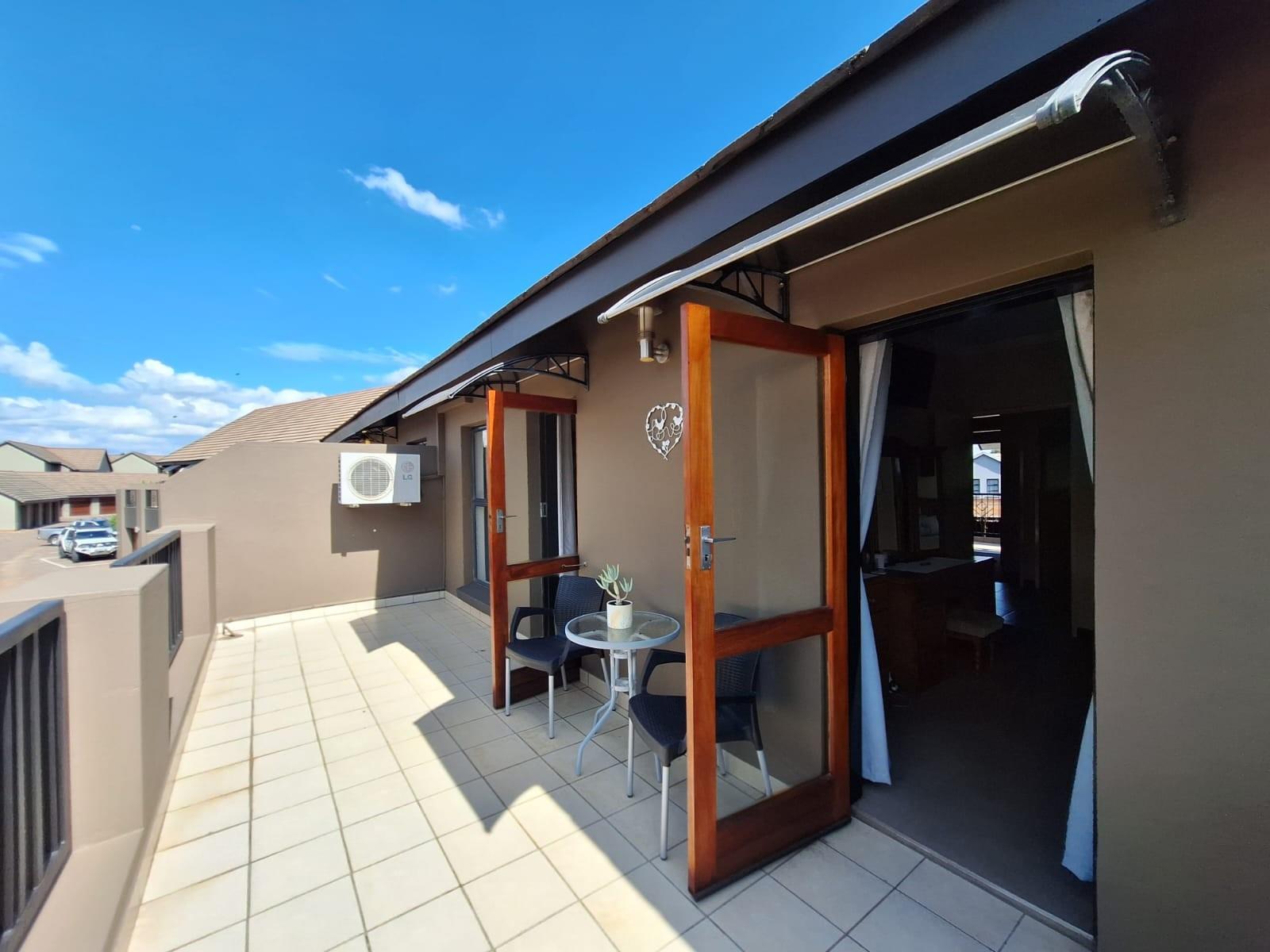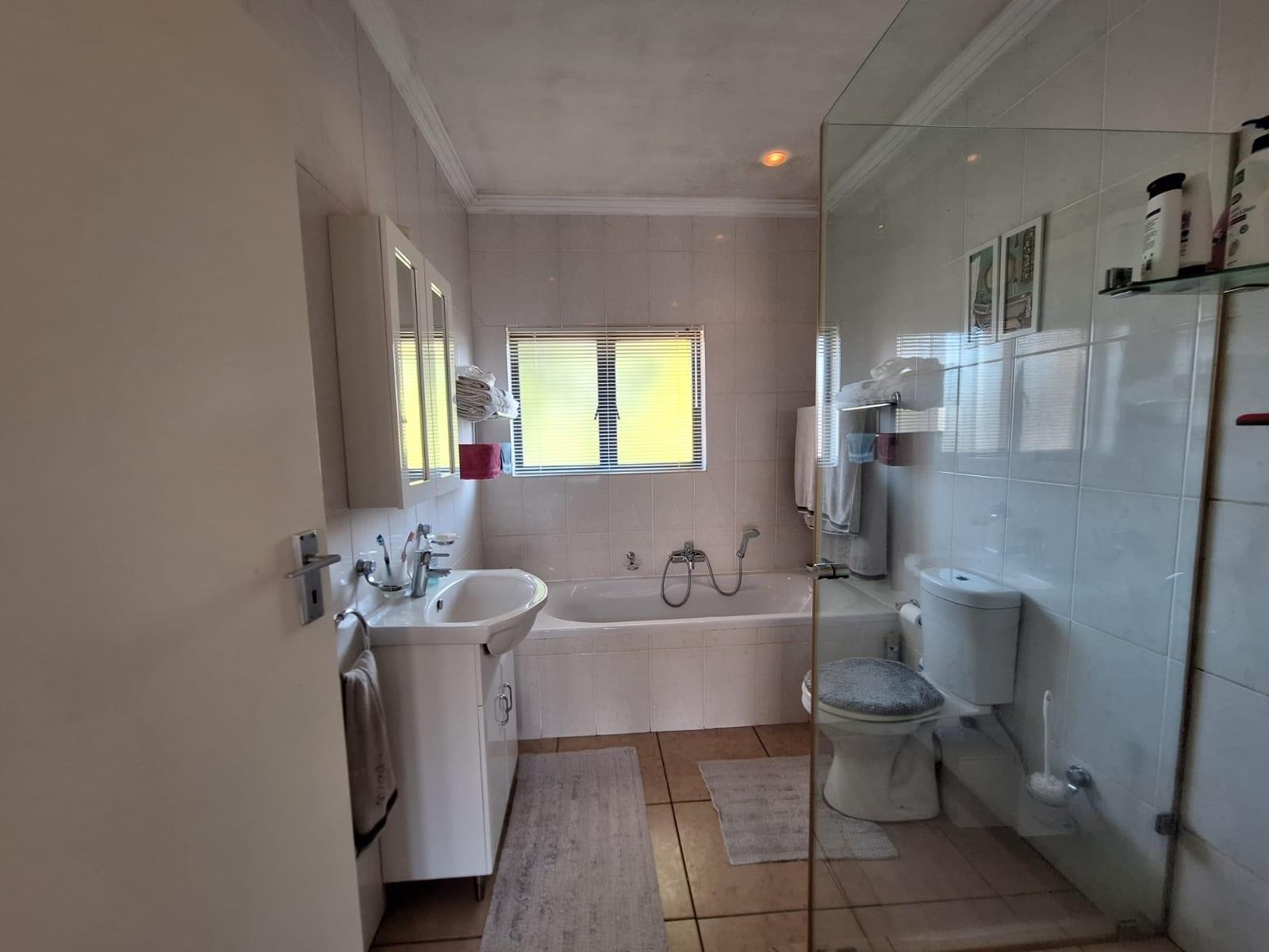 The living area opens onto a covered patio with a built-in braai, overlooking the well-maintained, irrigated garden — the perfect space for relaxing or entertaining.