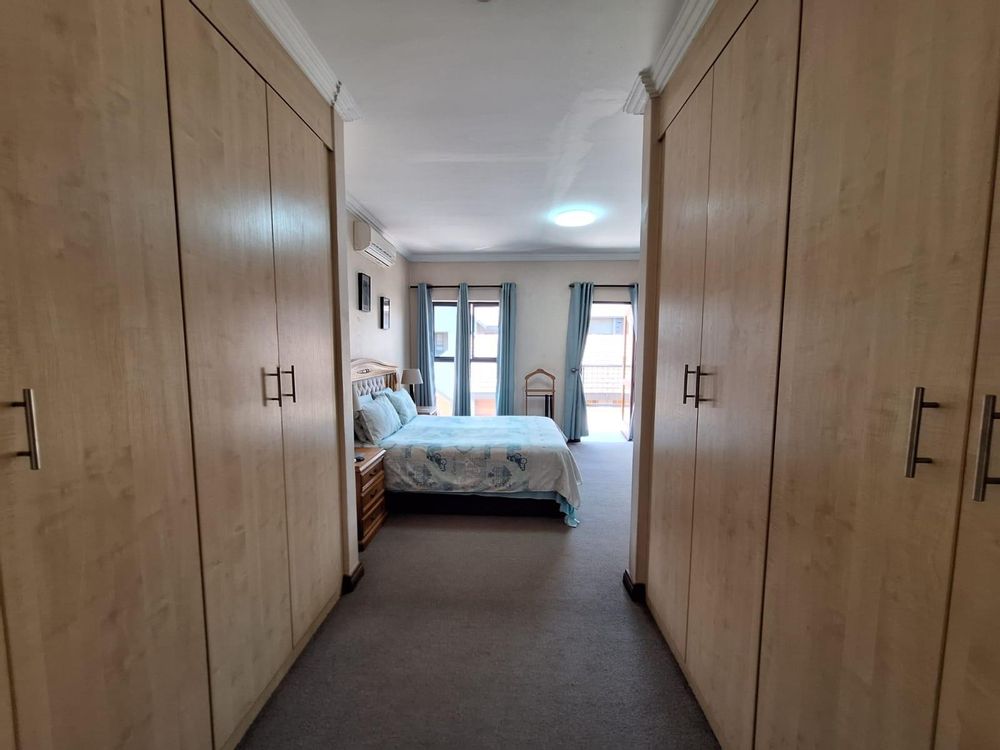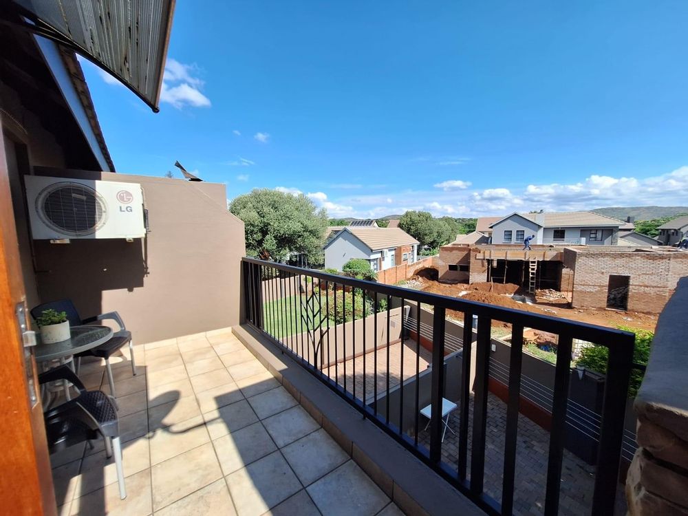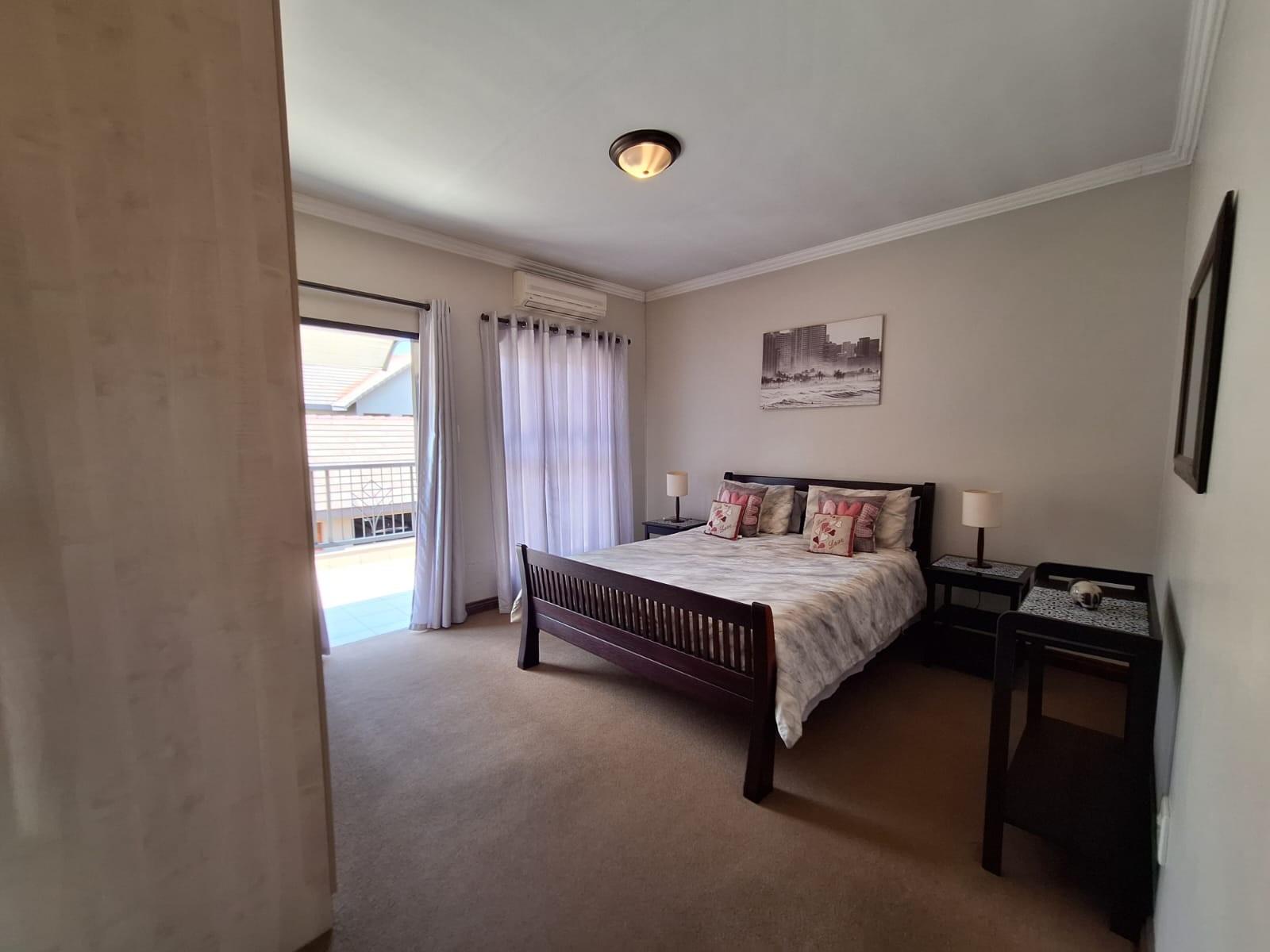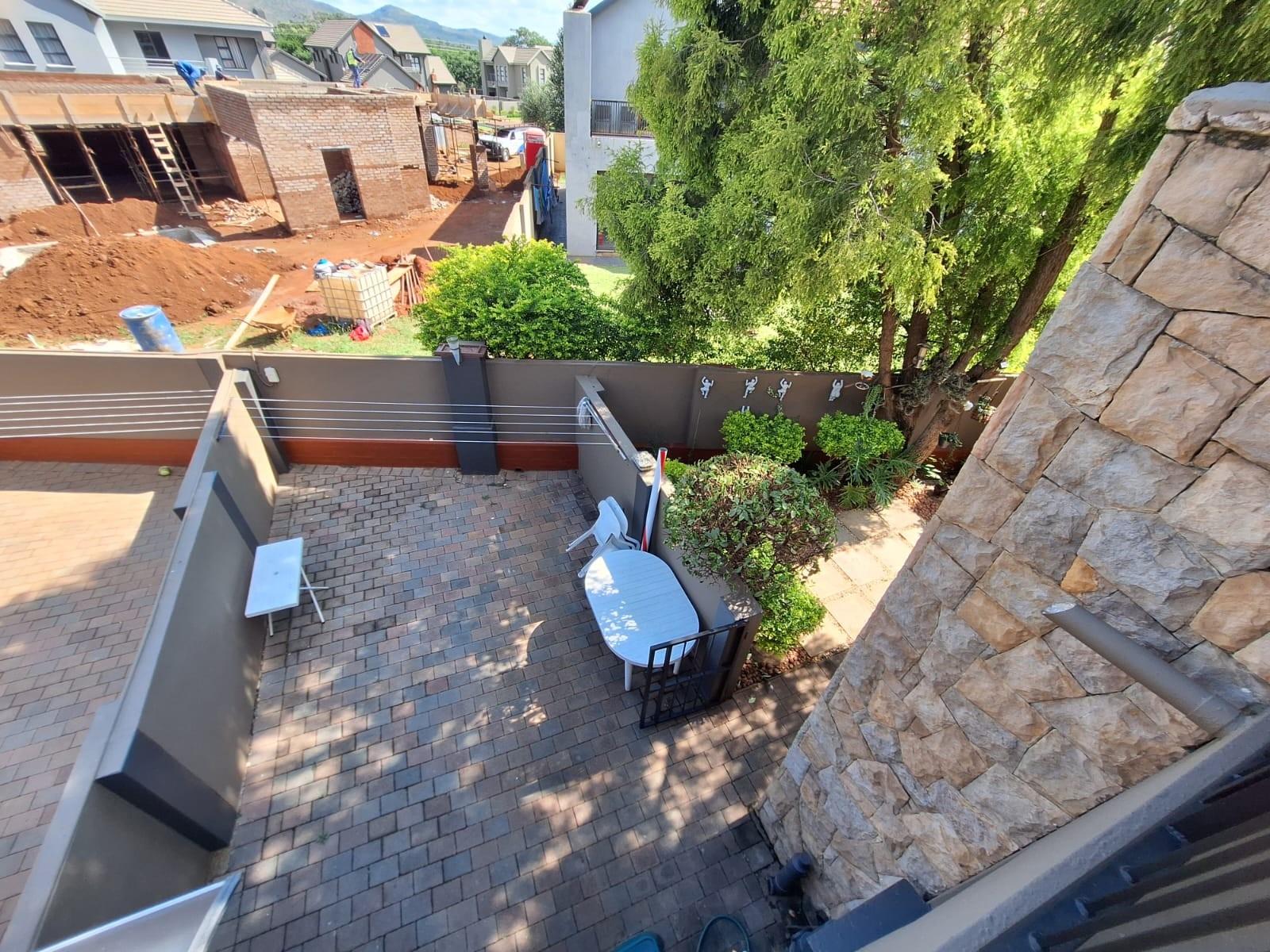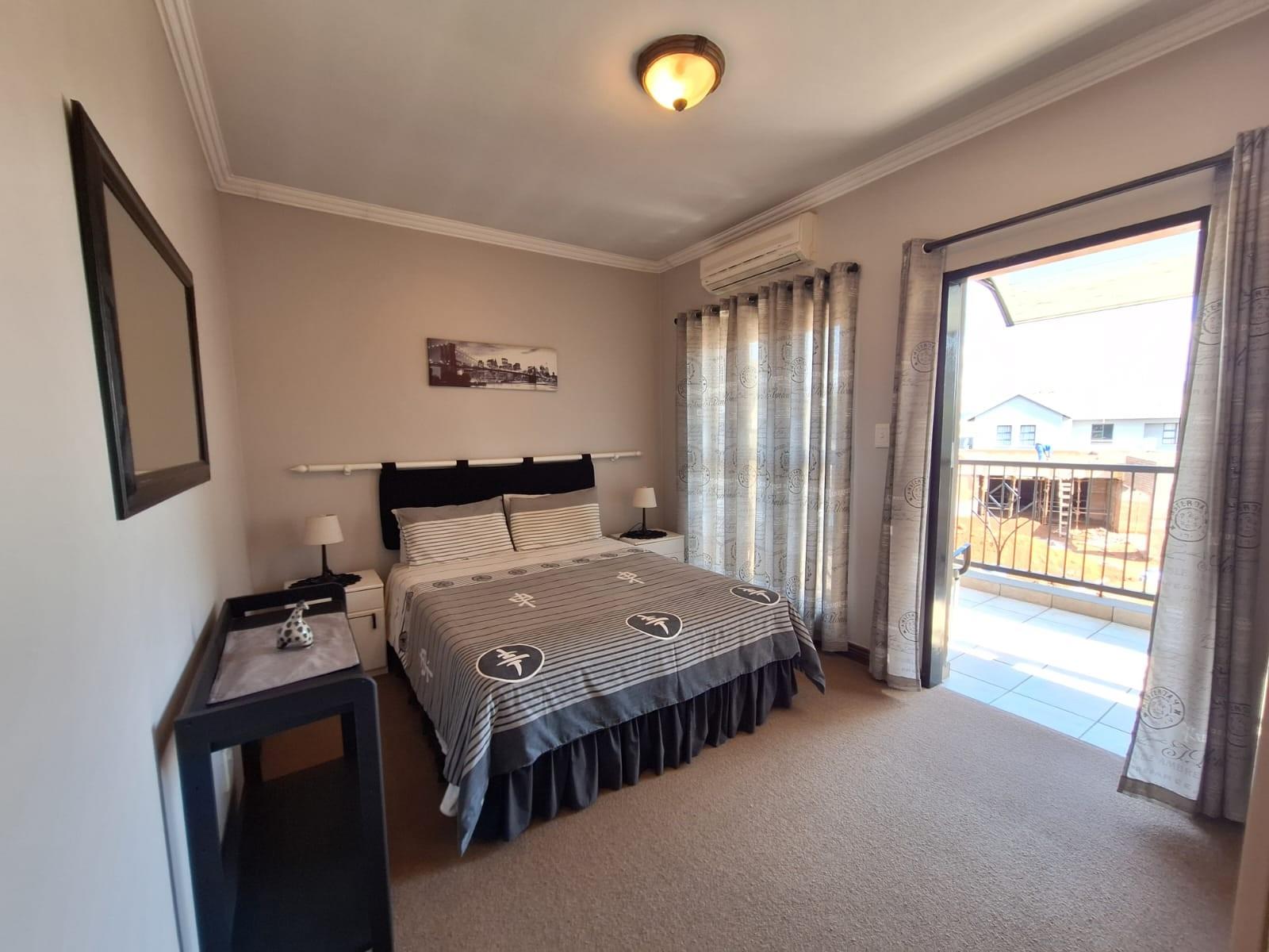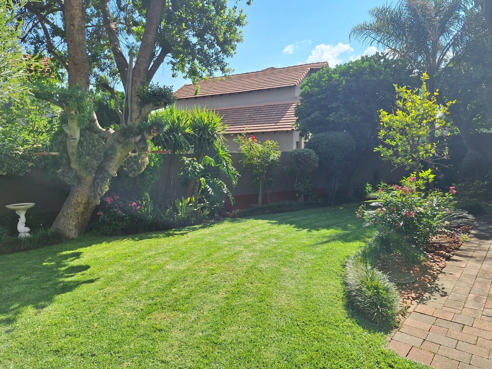 The living area opens onto a covered patio with a built-in braai, overlooking the well-maintained, irrigated garden — the perfect space for relaxing or entertaining.