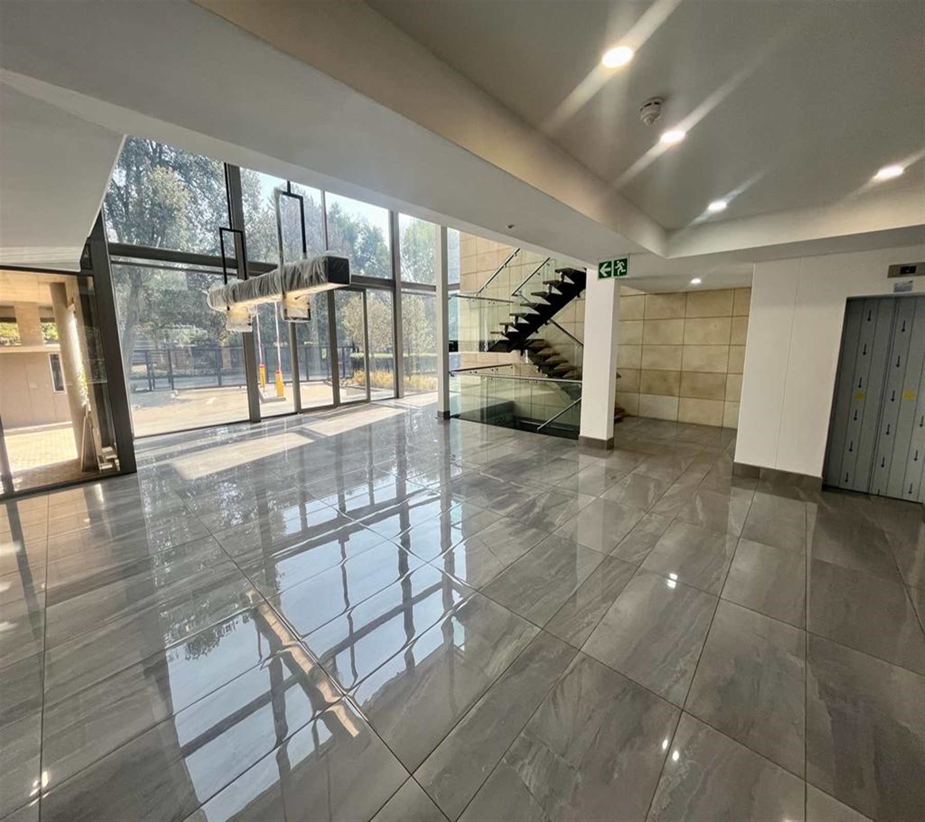 18 Glenhove is positioned on a major thoroughfare which directly links the M1 motorway to the heart of Rosebank. The lift and a sculptural open circulation stair in steel, timber, and glass, along with the generous open bridges crossing the atrium and linking the office wings, activate this space. The core is supported with an efficiently planned service block of toilets, showers, and service risers. From the roof-top entertainment terrace take in the spectacular views over the densely treed surrounding suburbs. Back-up water and full backup power are provided to the building.