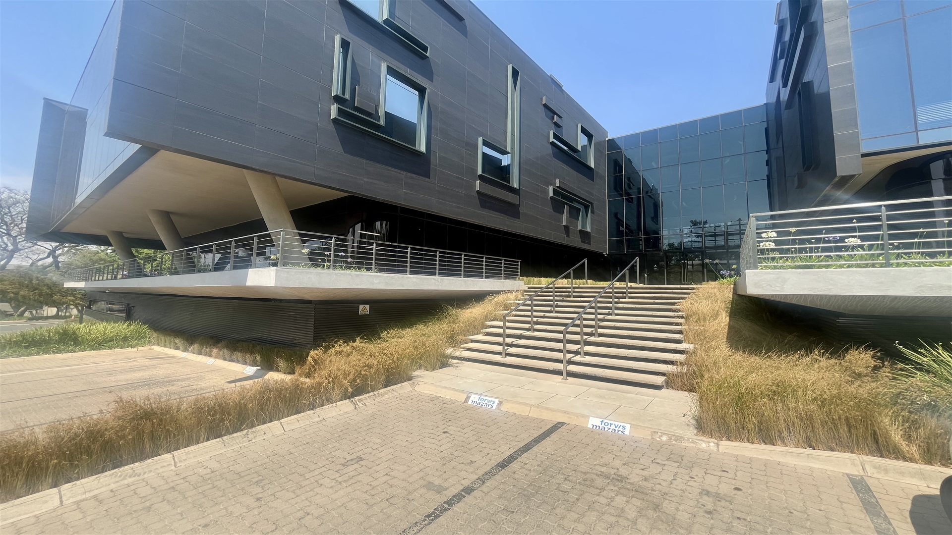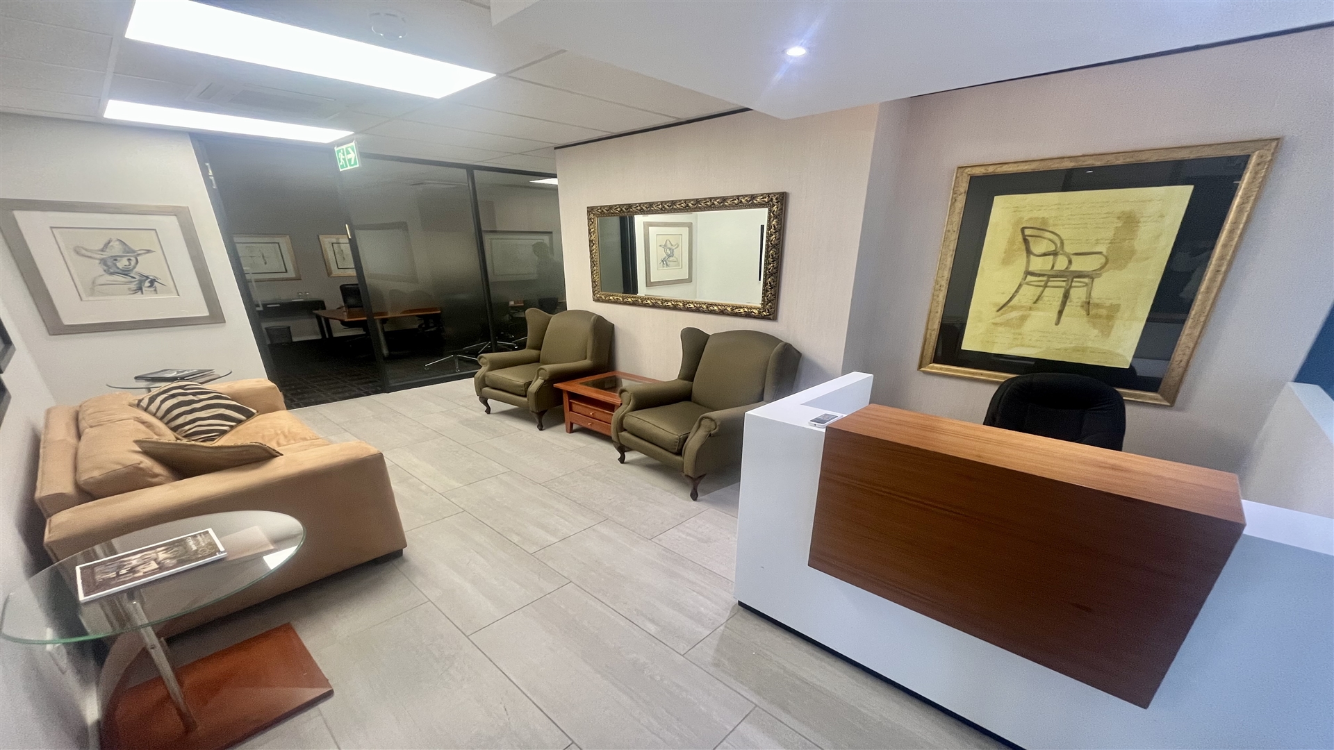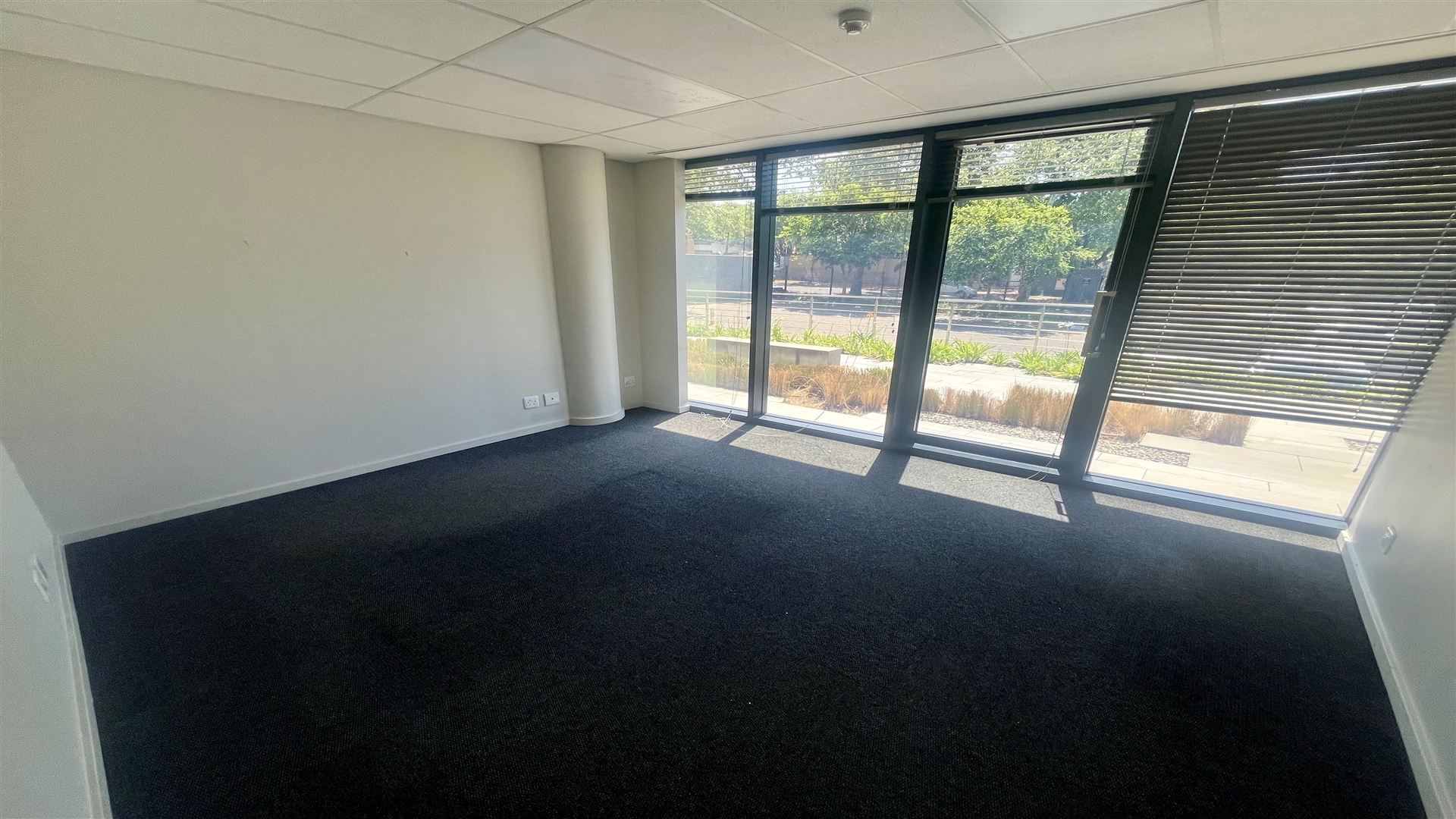 This stunning fully fitted ground floor office spans 166 m2 and features a spacious reception area, a large boardroom, two substantial executive offices, an open-plan workspace, a storeroom, and a private kitchen. The suite boasts modern glass partitioning, ample natural light, and is fully carpeted. Both executive offices have direct access to the ground floor terrace. The building offers a professional central reception, an on-site coffee shop, inviting pause areas, and full backup power and water.