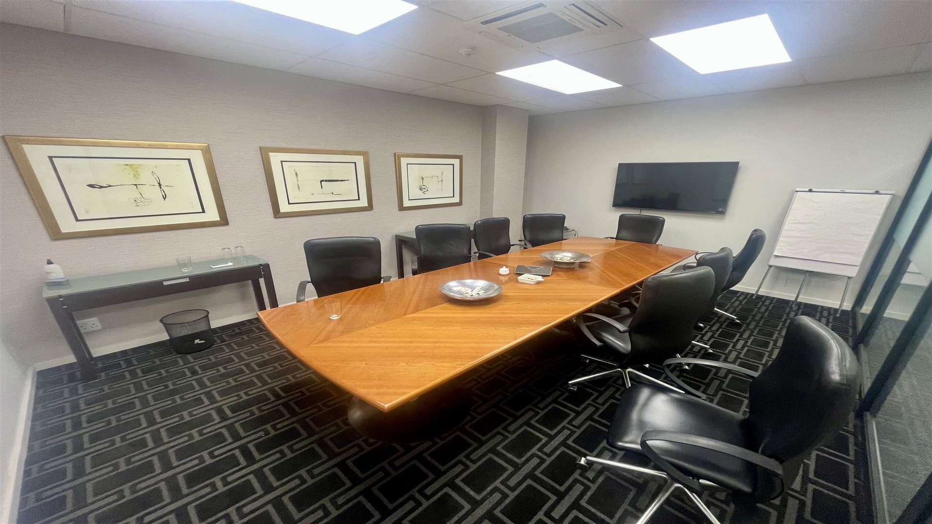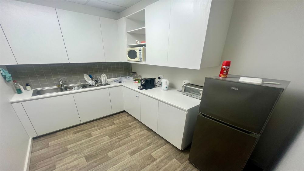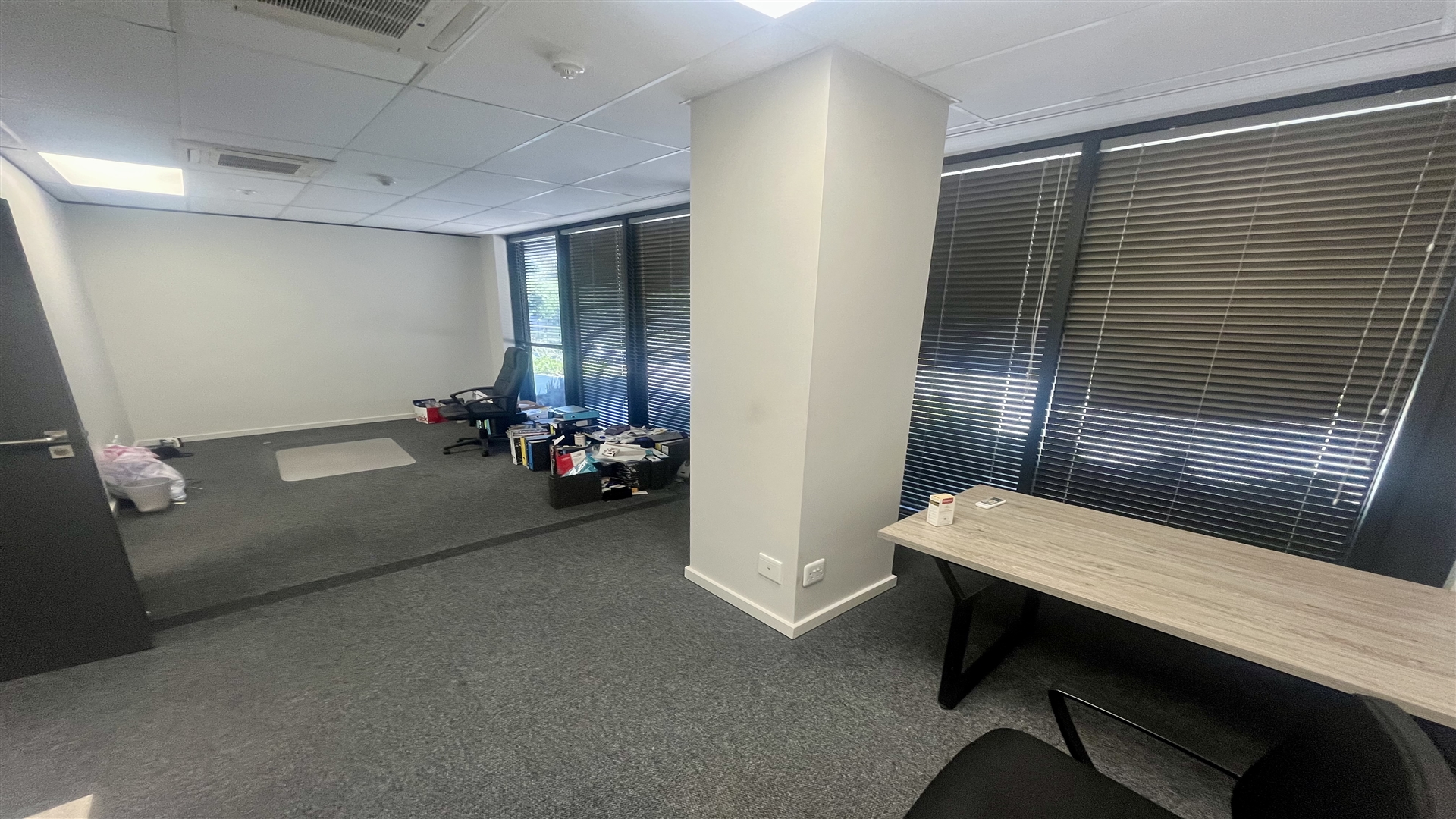 This stunning fully fitted ground floor office spans 166 m2 and features a spacious reception area, a large boardroom, two substantial executive offices, an open-plan workspace, a storeroom, and a private kitchen. The suite boasts modern glass partitioning, ample natural light, and is fully carpeted. Both executive offices have direct access to the ground floor terrace. The building offers a professional central reception, an on-site coffee shop, inviting pause areas, and full backup power and water.