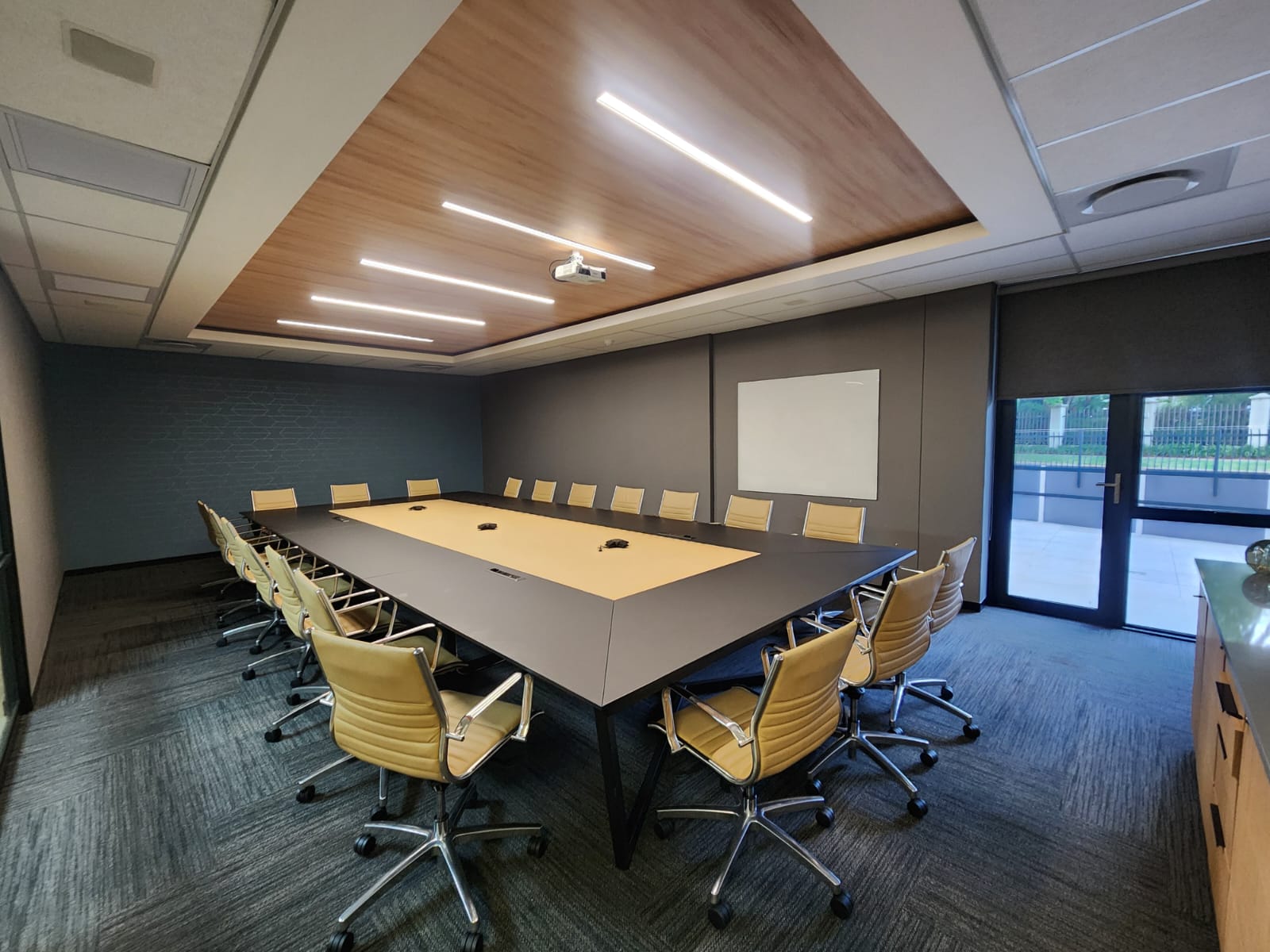 This impressive property features a double-volume shared reception area, executive boardrooms, and private offices, all flooded with natural light and maintained in pristine condition.