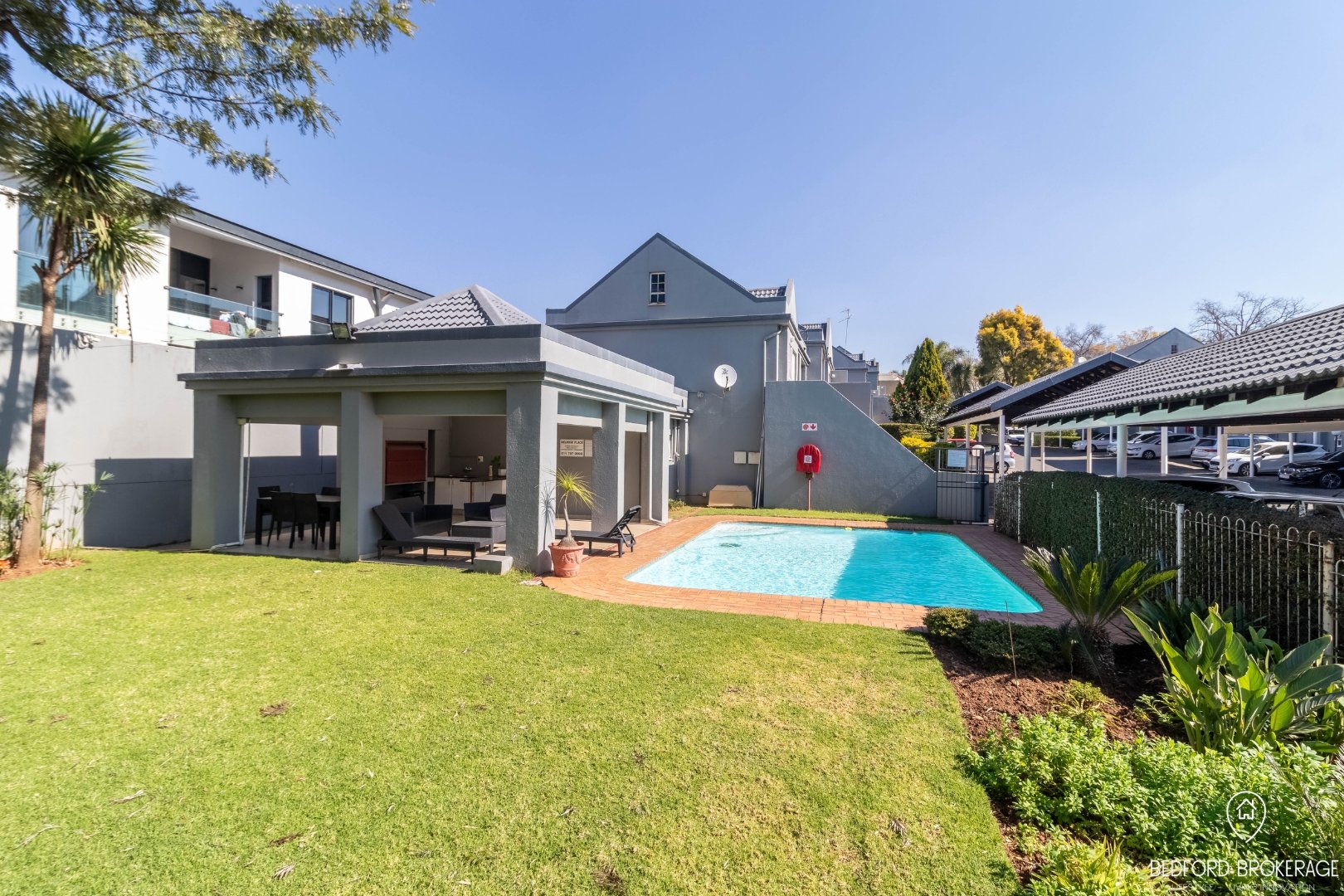 Ideally located just steps from Melrose Arch, this secure townhouse offers the perfect blend of modern living and convenience. The apartment features two bedrooms, including a spacious main en-suite, and a second bedroom with built-in cupboards and views of the pool and garden. An additional guest toilet adds extra convenience.