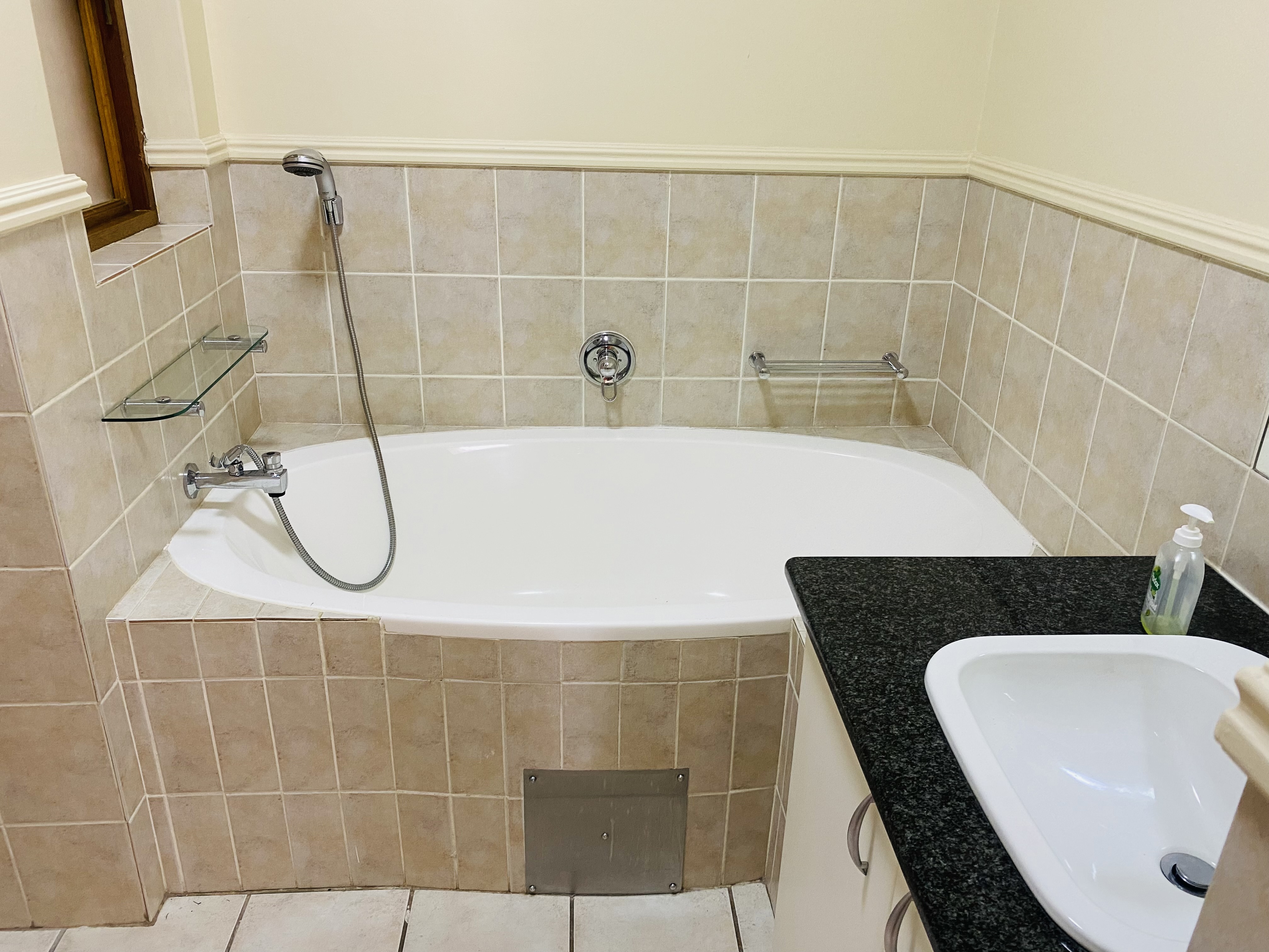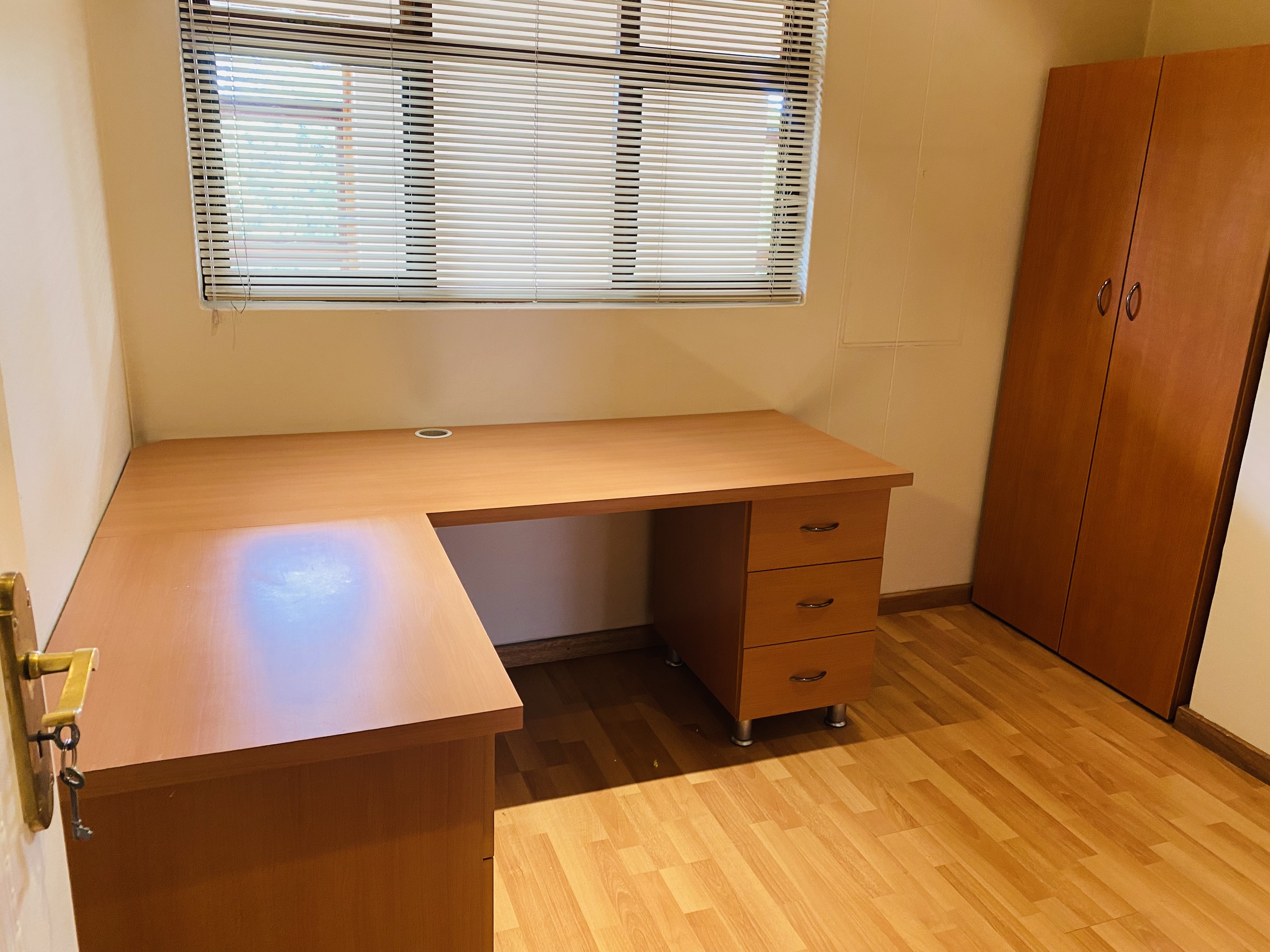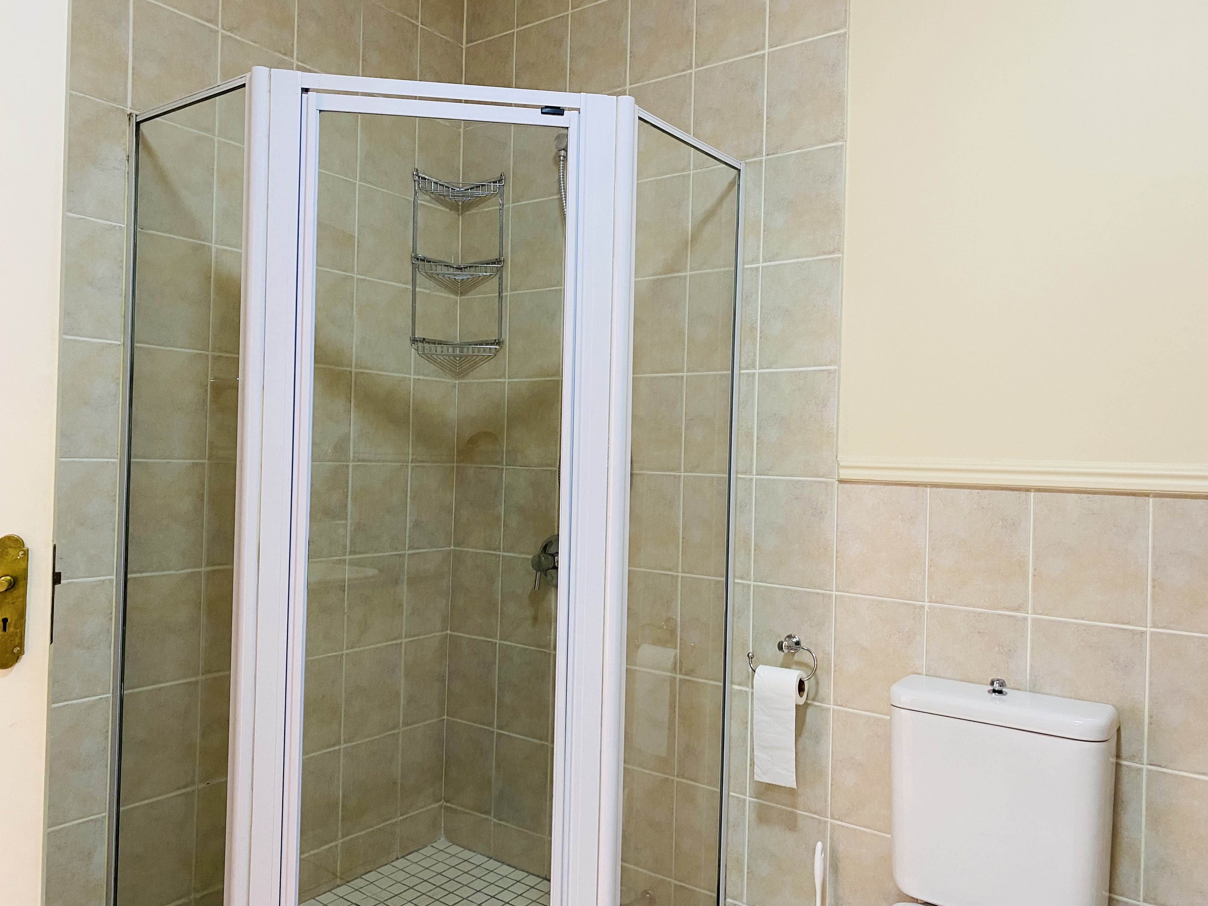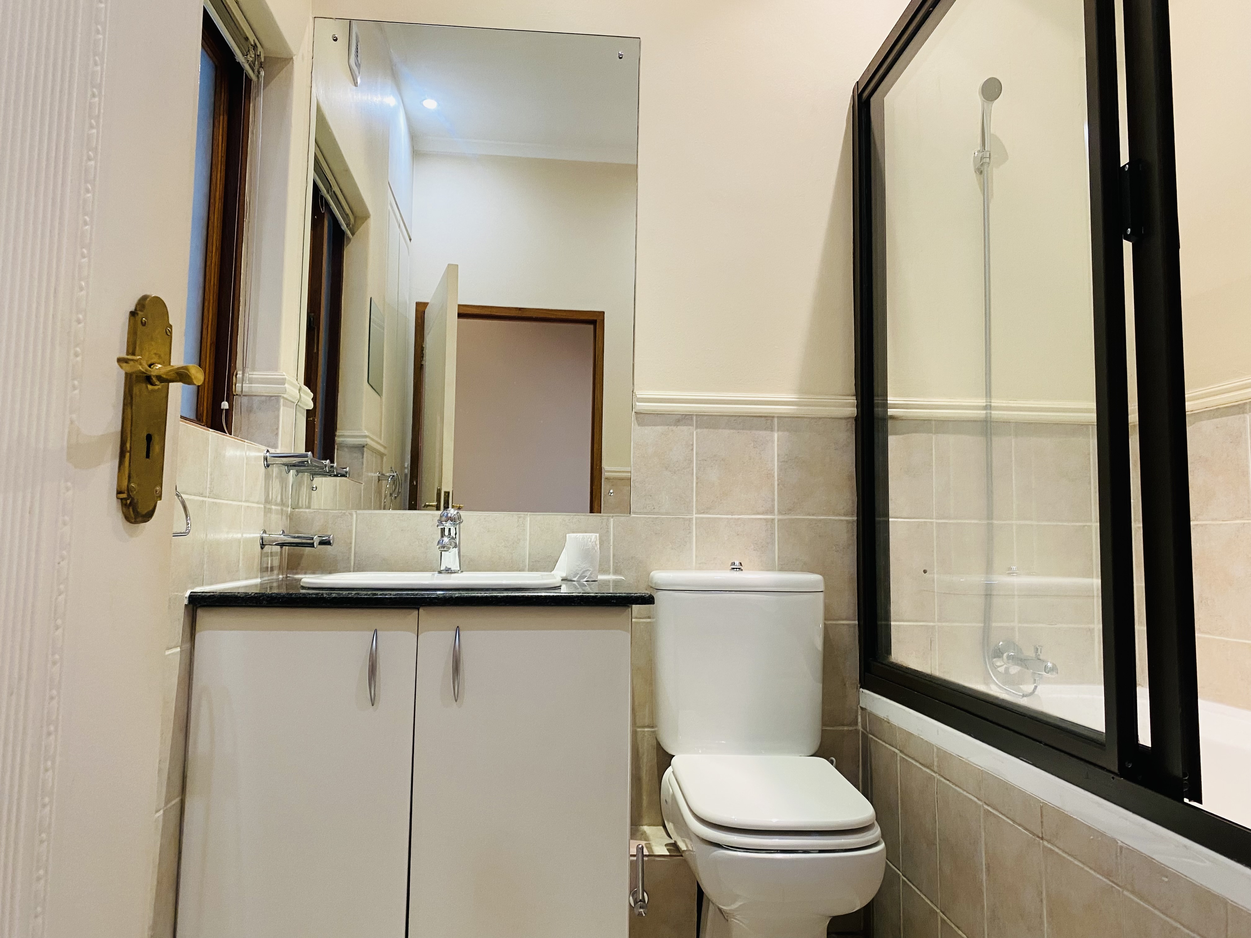 The main bedroom is huge with a full bathroom en-suite. Both bedrooms have built-in cupboards. The third bedroom has full study/ office facilities. Charming shared bathroom.