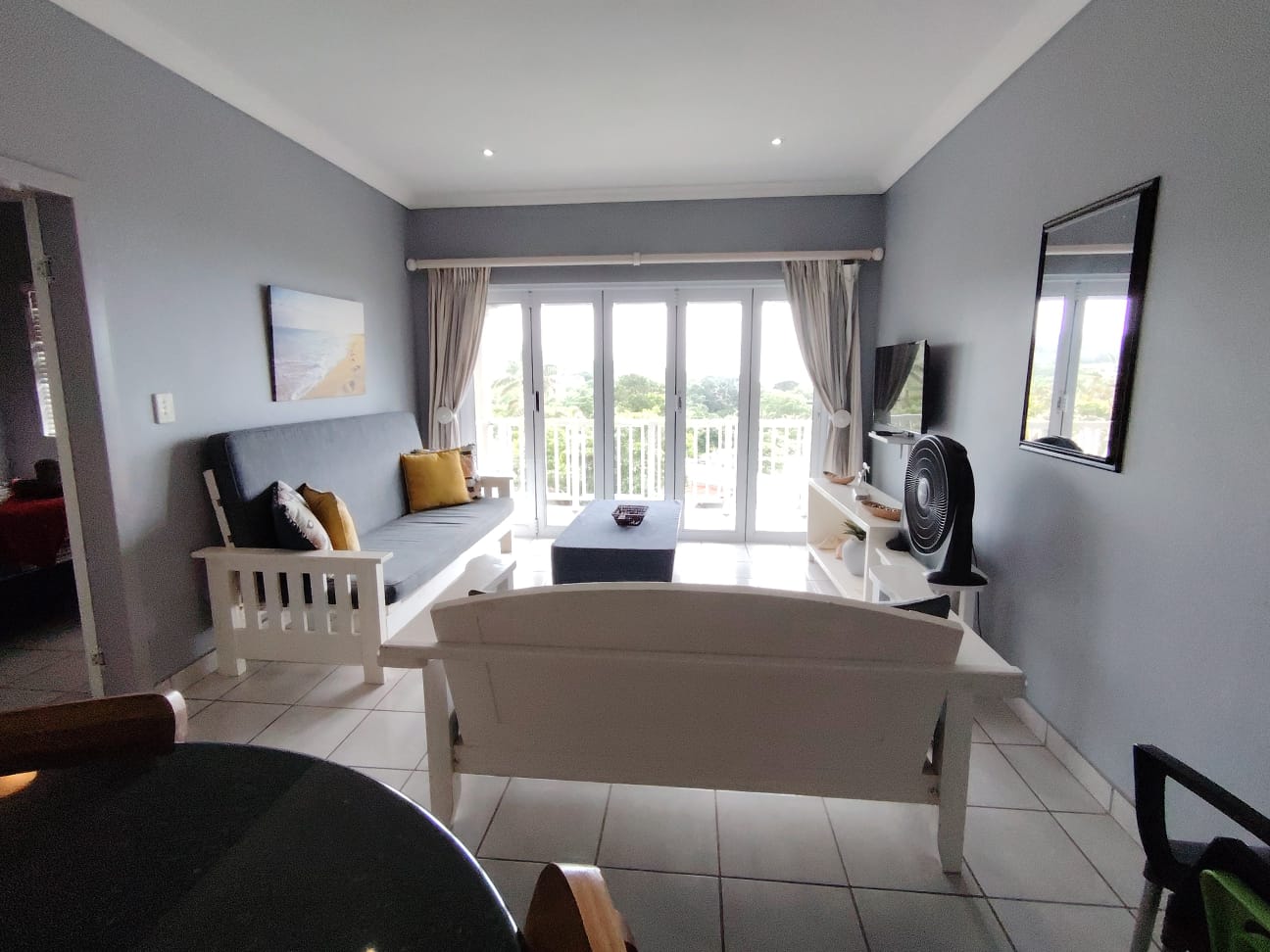 Inside, the apartment is wonderfully spacious and filled with natural sunlight, giving it an airy, relaxed feel. The open-plan kitchen and lounge flow out onto a lovely balcony that’s just perfect for afternoon braais with the Indian Ocean as your backdrop. Both bedrooms are generously sized, with the main bedroom offering its own en-suite bathroom, while the second bathroom conveniently serves the guest bedroom.