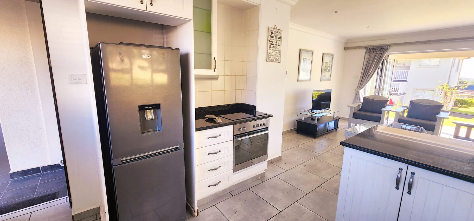 Stunning furnished ground floor apartment in an extremely popular estate with direct beach access. This estate is sought after by investors wanting to utilise their investment for holiday rental income, only approximately one hour from Durban, makes this popular with weekend visitors. A short drive to Port Shepstone and Shelly Beach with all the shopping malls and essentials. The unit consists of an open plan kitchen with granite tops and a breakfast counter, open to the lounge area with stacker doors in the front with a patio and a sliding door to the right opening to the enclosed sunroom, perfect for those windy days. there are 3 bedrooms, one family bathroom and the main bedroom has an ensuite bathroom. There is a single garage and a covered shade port for the vehicles. The estate has a communal pool and braai area, a games room, gym and a laundry. Safety is taken care of ensuring a safe environment for you and your guests. There are on site caretakers to take care of the maintenance and checking in and out of guests. This unit is extremely well prices and should you want to chat about it, please contact us ANYTIME!