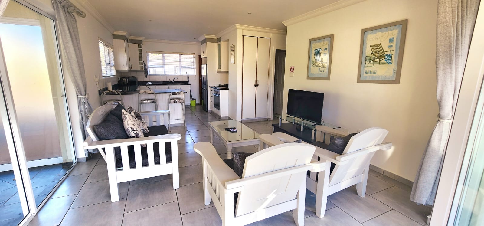 Stunning furnished ground floor apartment in an extremely popular estate with direct beach access. This estate is sought after by investors wanting to utilise their investment for holiday rental income, only approximately one hour from Durban, makes this popular with weekend visitors. A short drive to Port Shepstone and Shelly Beach with all the shopping malls and essentials. The unit consists of an open plan kitchen with granite tops and a breakfast counter, open to the lounge area with stacker doors in the front with a patio and a sliding door to the right opening to the enclosed sunroom, perfect for those windy days. there are 3 bedrooms, one family bathroom and the main bedroom has an ensuite bathroom. There is a single garage and a covered shade port for the vehicles. The estate has a communal pool and braai area, a games room, gym and a laundry. Safety is taken care of ensuring a safe environment for you and your guests. There are on site caretakers to take care of the maintenance and checking in and out of guests. This unit is extremely well prices and should you want to chat about it, please contact us ANYTIME!