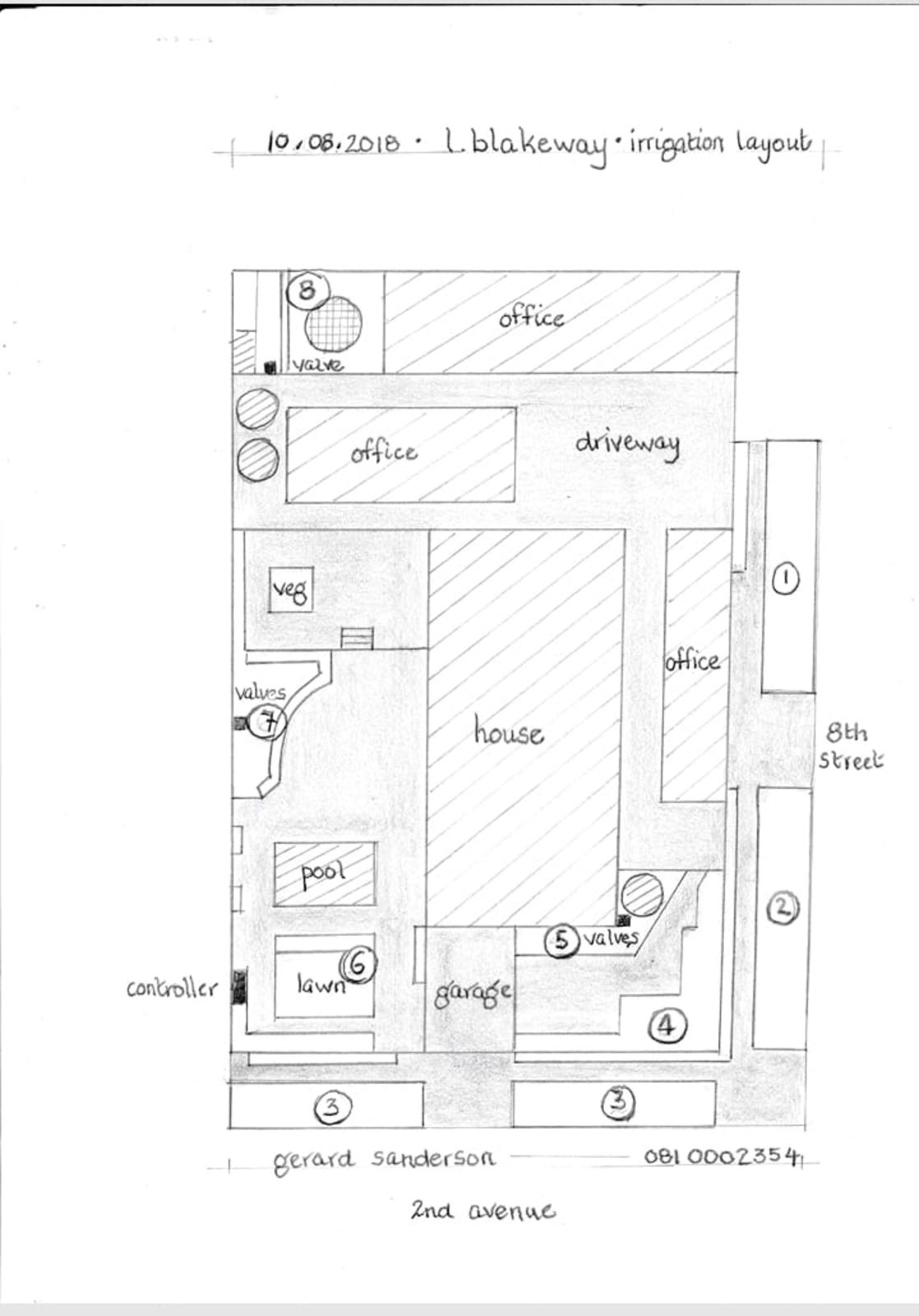 There is a computerised irrigation system servicing the entire garden, please refer to the schematic in the photos.