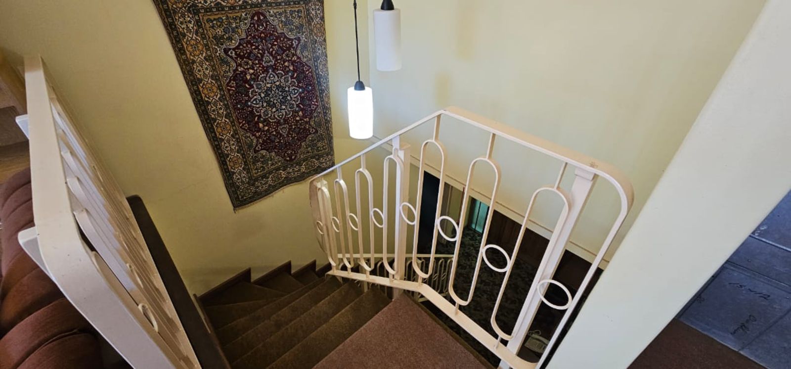 The home boasts four comfortable bedrooms, all with built-in cupboards and large windows that flood the rooms with natural light. There are three bathrooms, including a main en-suite, plus a separate guest toilet for added convenience.
