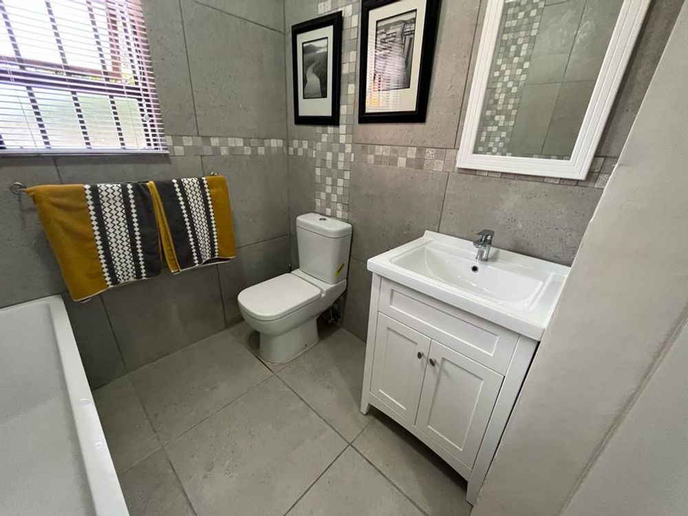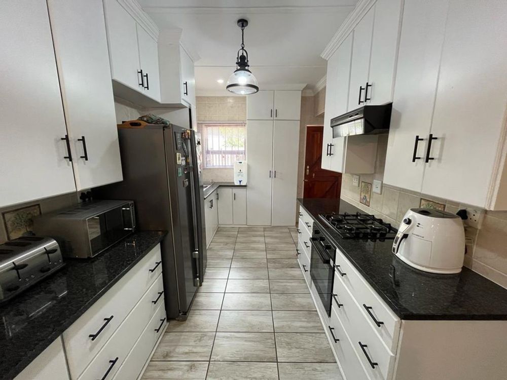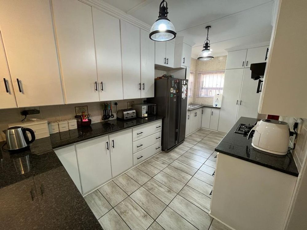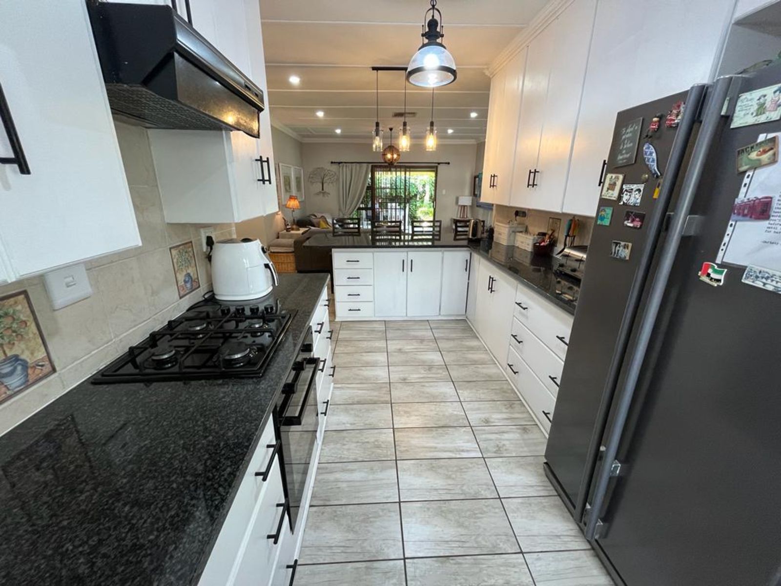 Modern kitchen with built-in cupboards, undercounter oven & hob, extractor fan, breakfast nook, plus separate scullery & laundry