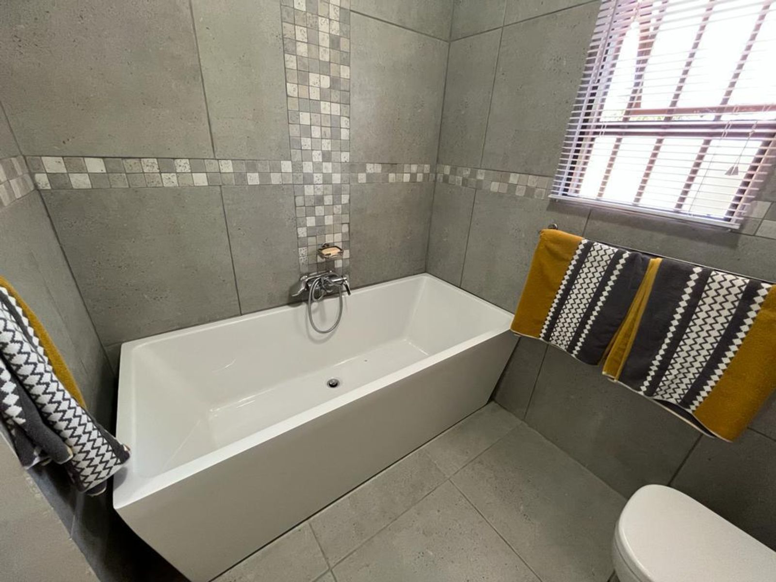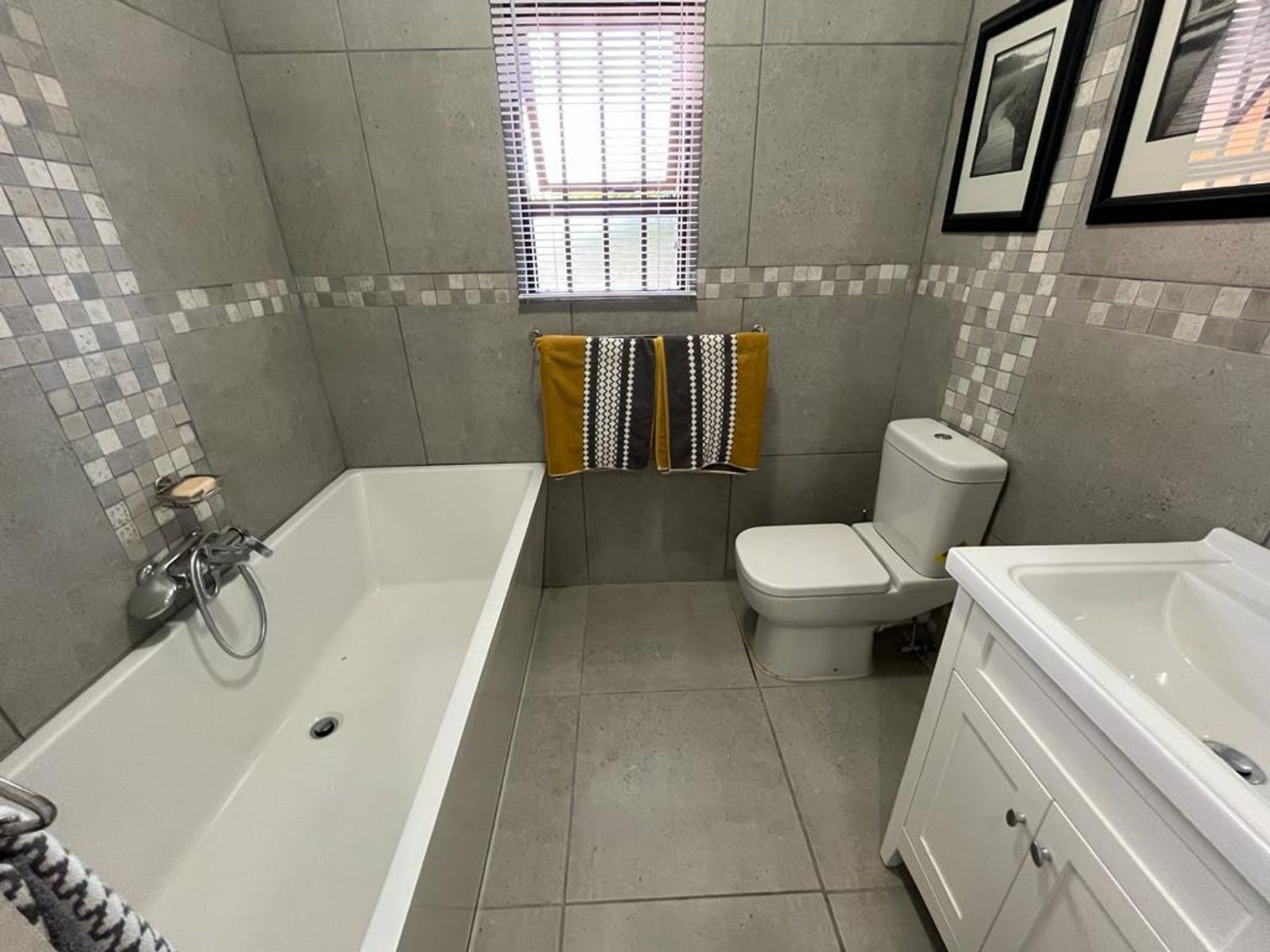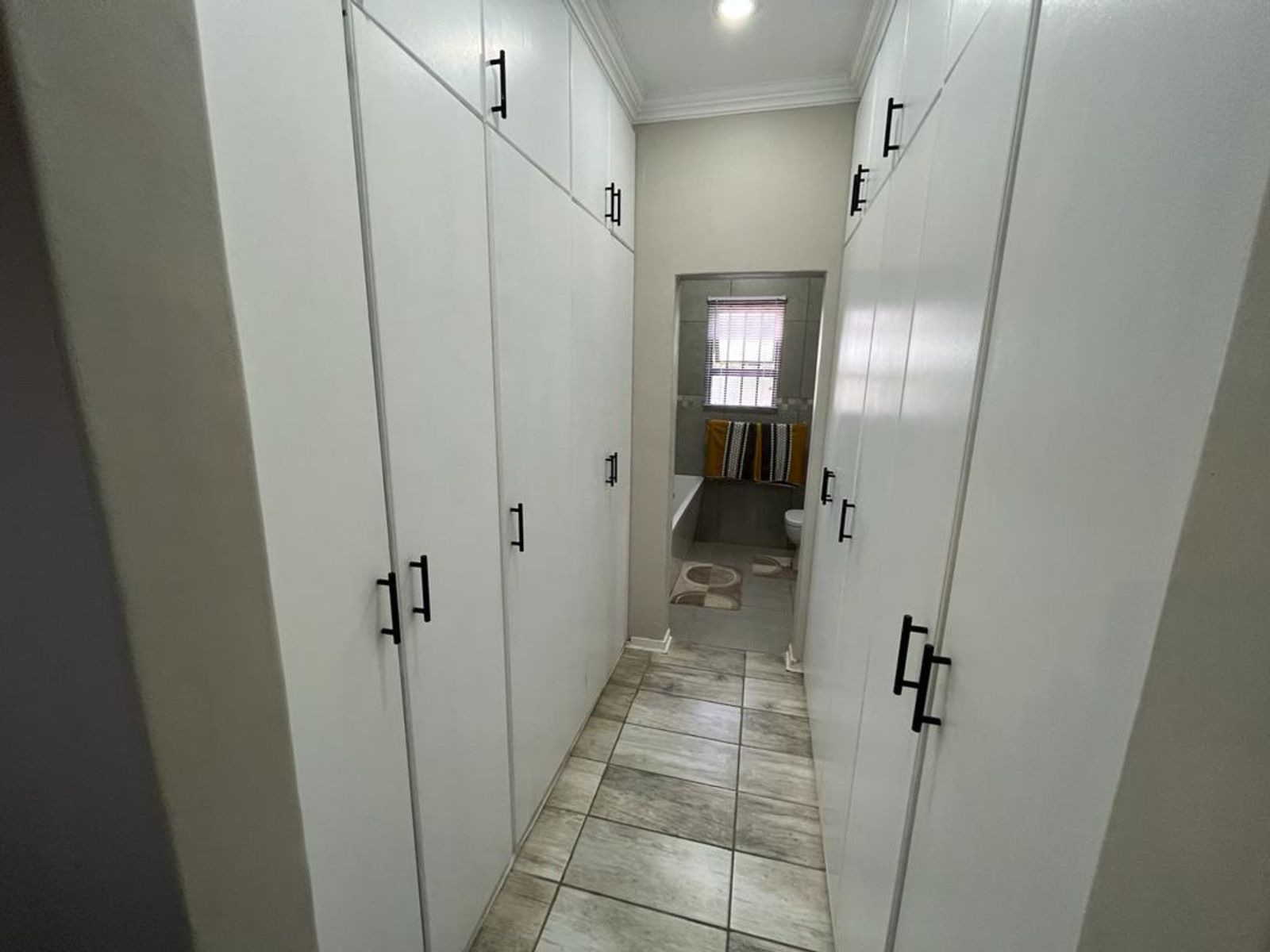 Modern kitchen with built-in cupboards, undercounter oven & hob, extractor fan, breakfast nook, plus separate scullery & laundry