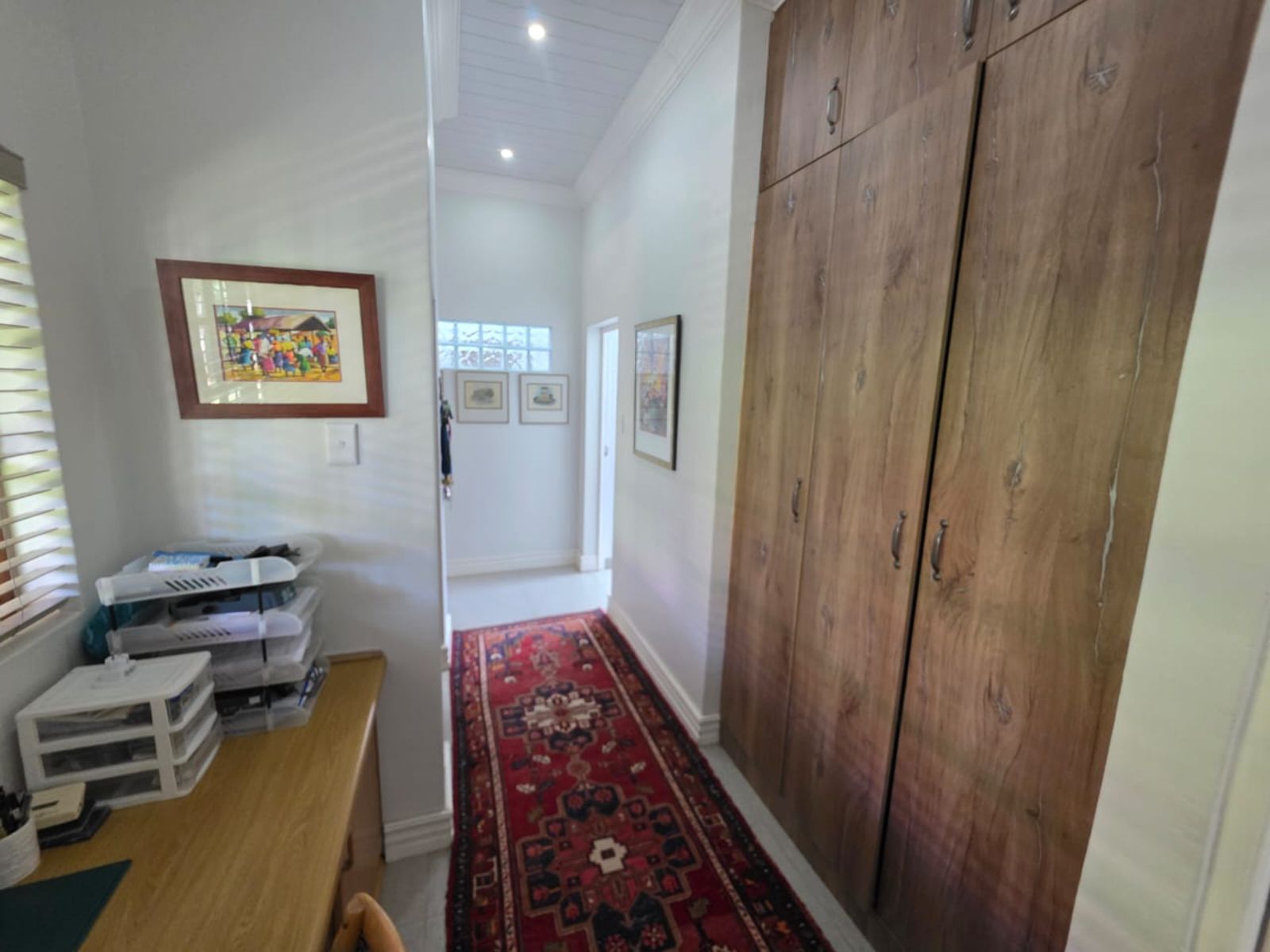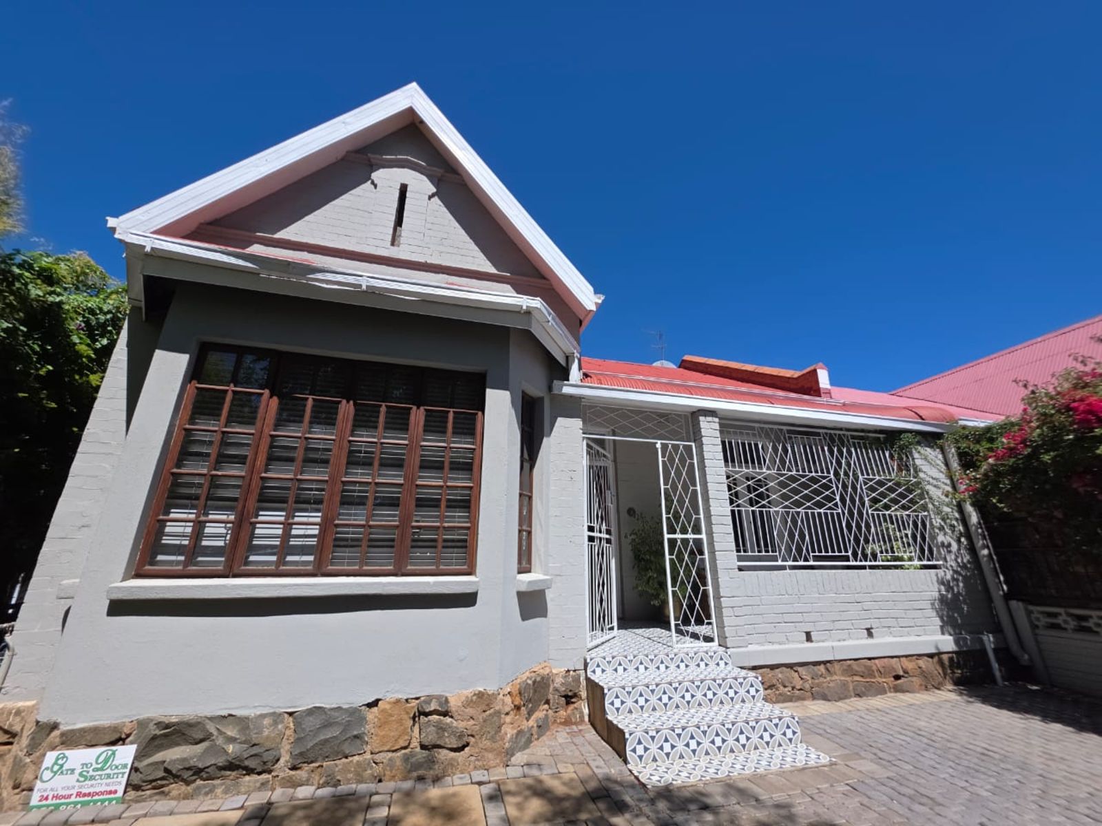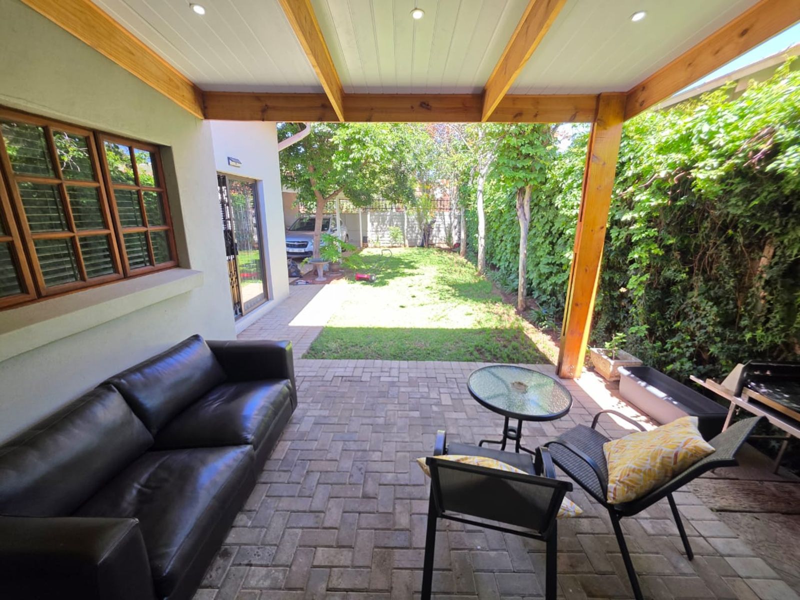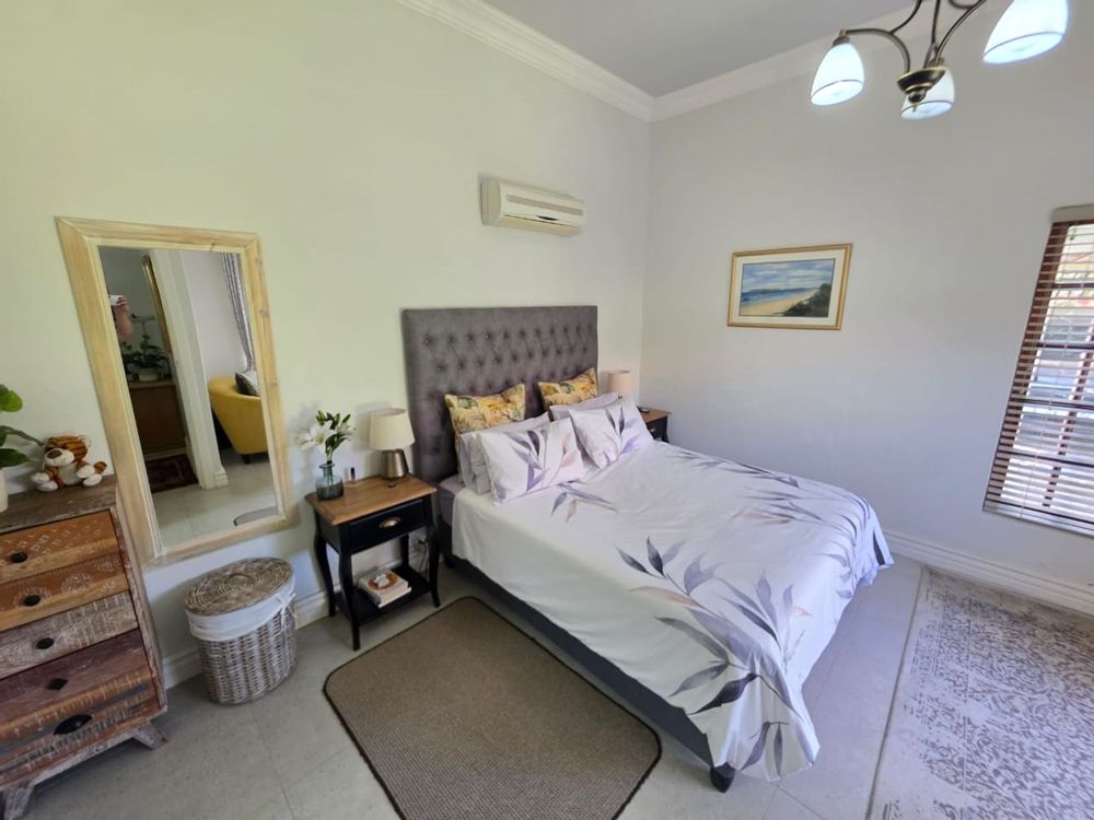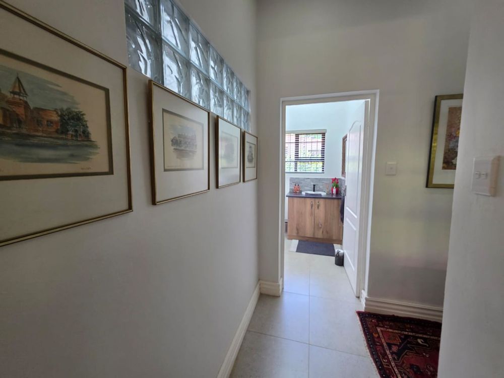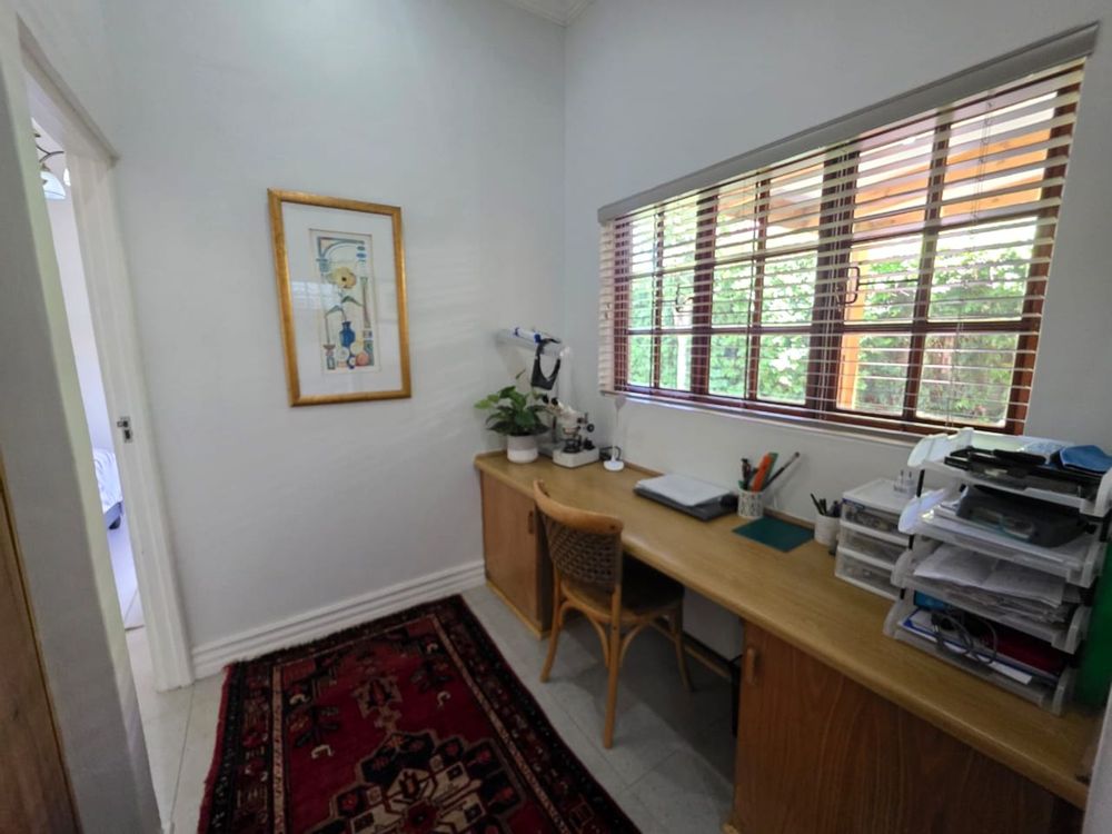 This lovely family home offers three bedrooms and two bathrooms, ideally located close to leading schools. The open-plan layout includes a lounge, dining room, study, and family room. The kitchen is fitted with built-in cupboards, an under-counter oven, hob, and extractor fan. Additional features include a single garage, a carport for two vehicles, and a small, low-maintenance garden. The property is securely fenced and fitted with security gates.