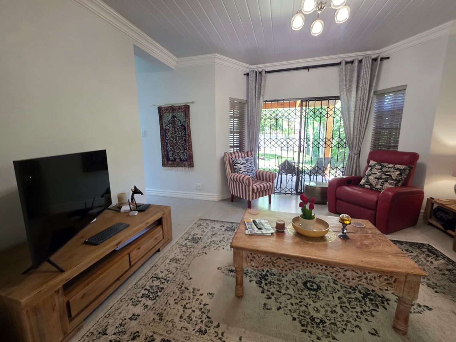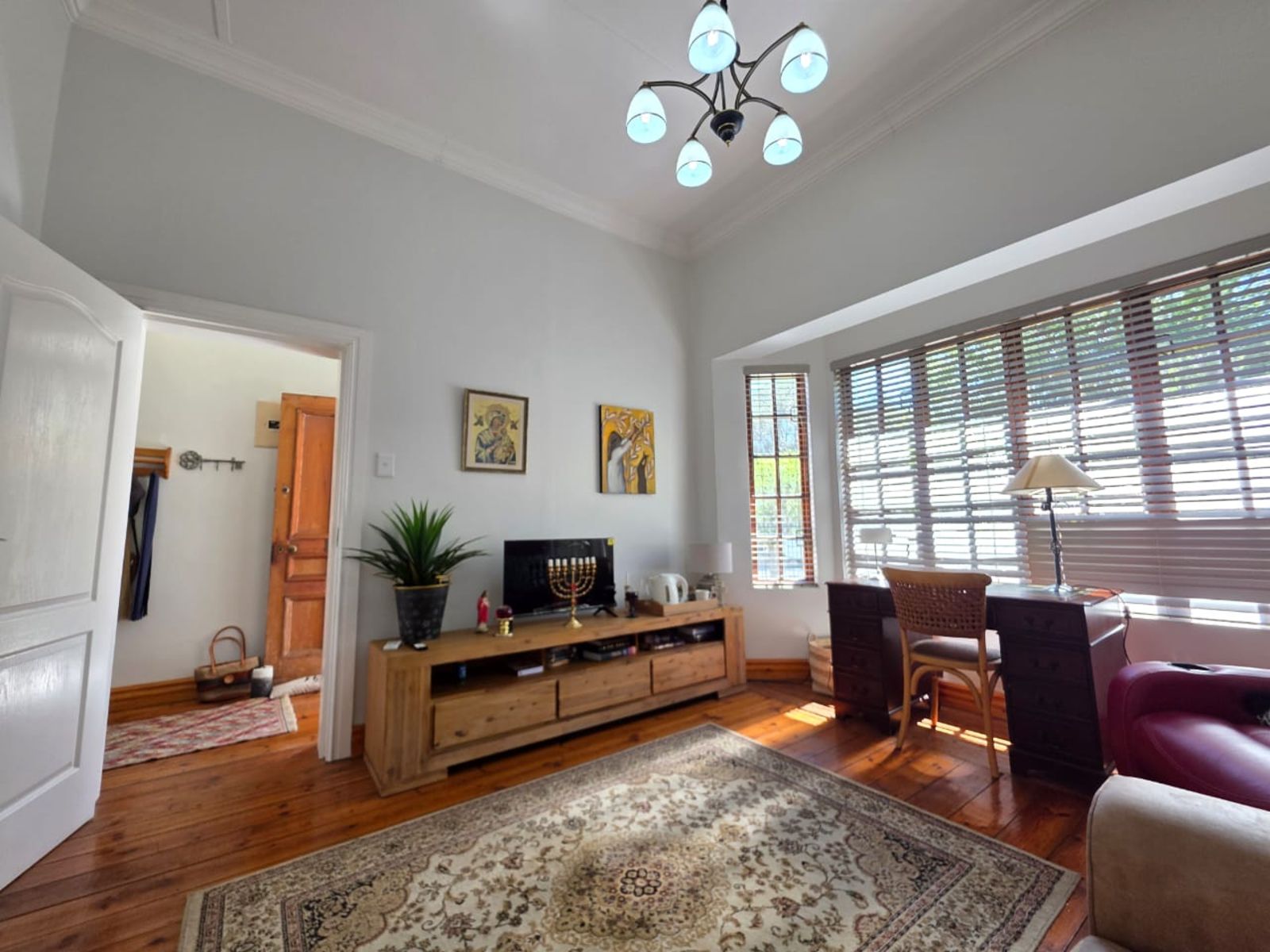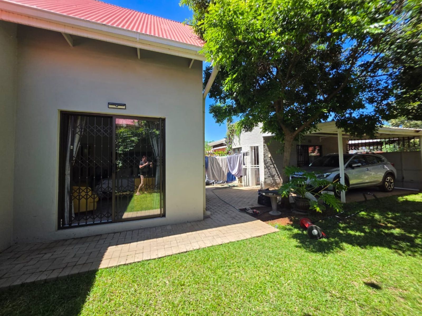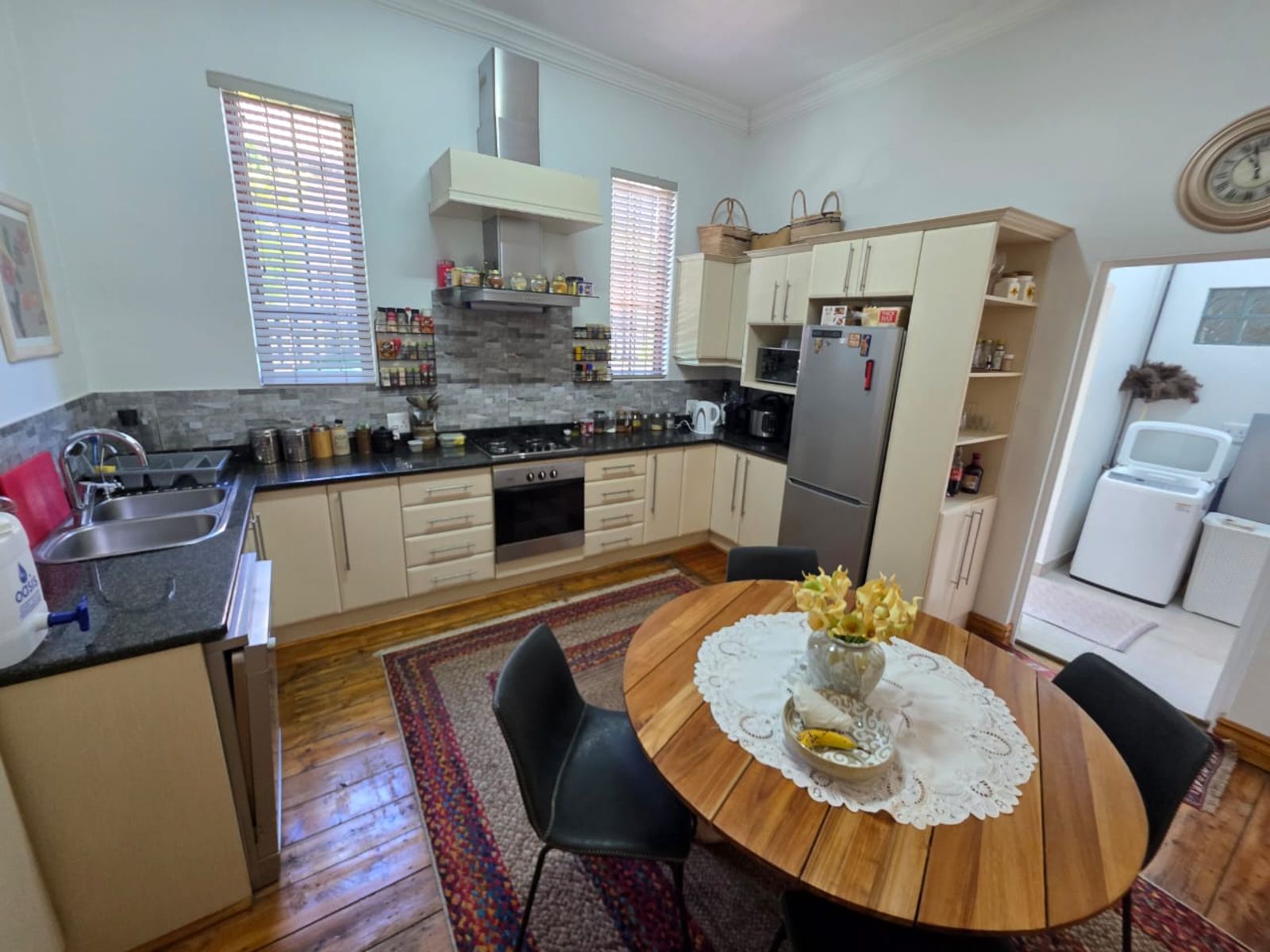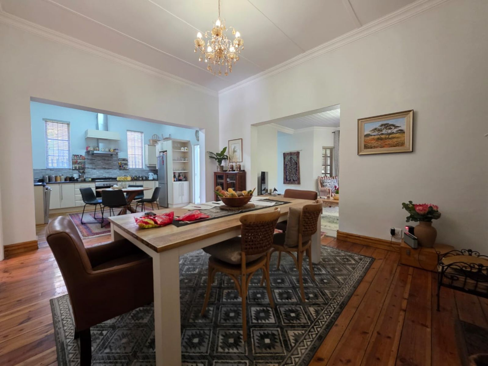 This lovely family home offers three bedrooms and two bathrooms, ideally located close to leading schools. The open-plan layout includes a lounge, dining room, study, and family room. The kitchen is fitted with built-in cupboards, an under-counter oven, hob, and extractor fan. Additional features include a single garage, a carport for two vehicles, and a small, low-maintenance garden. The property is securely fenced and fitted with security gates.