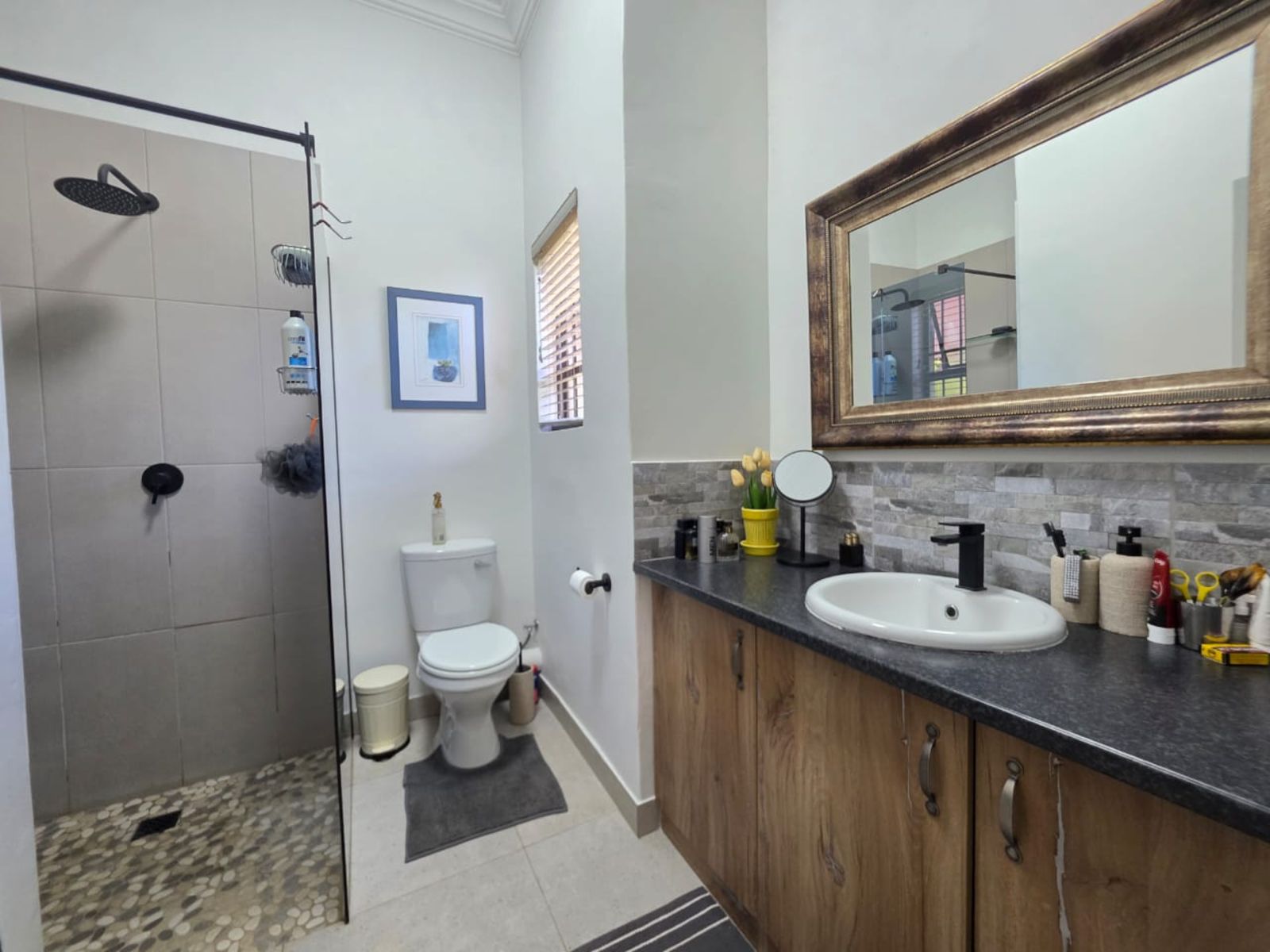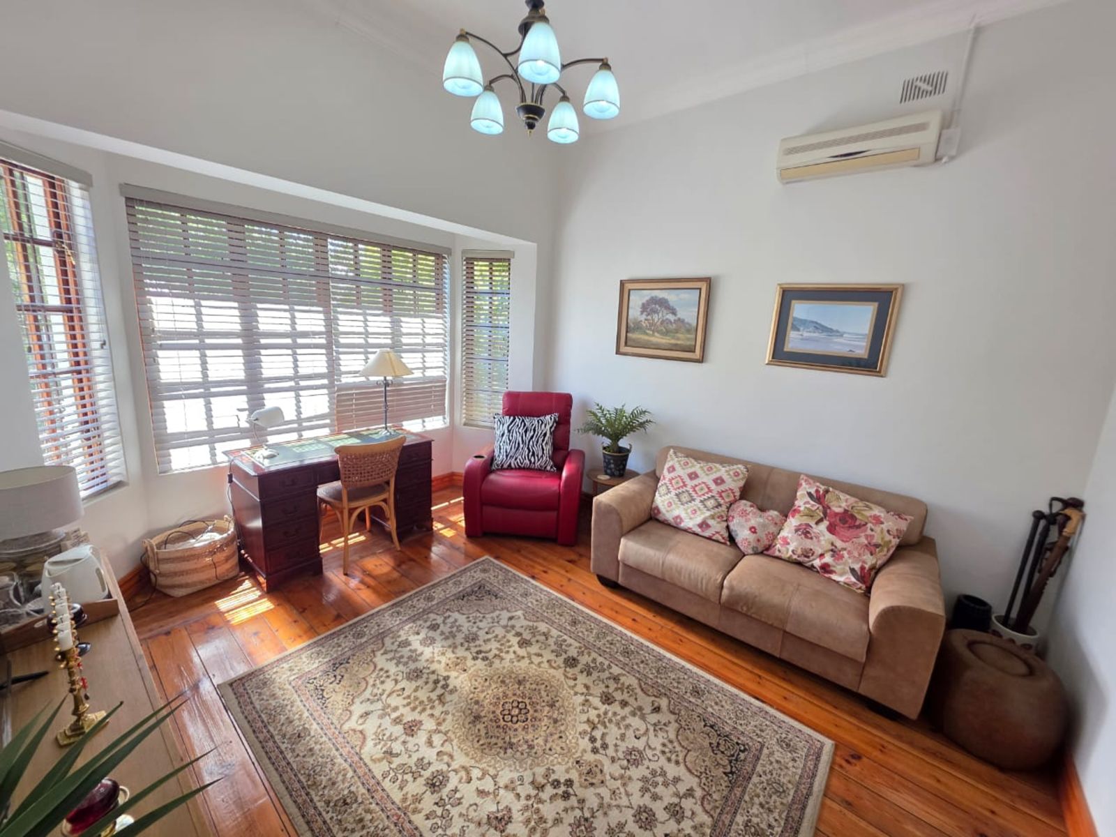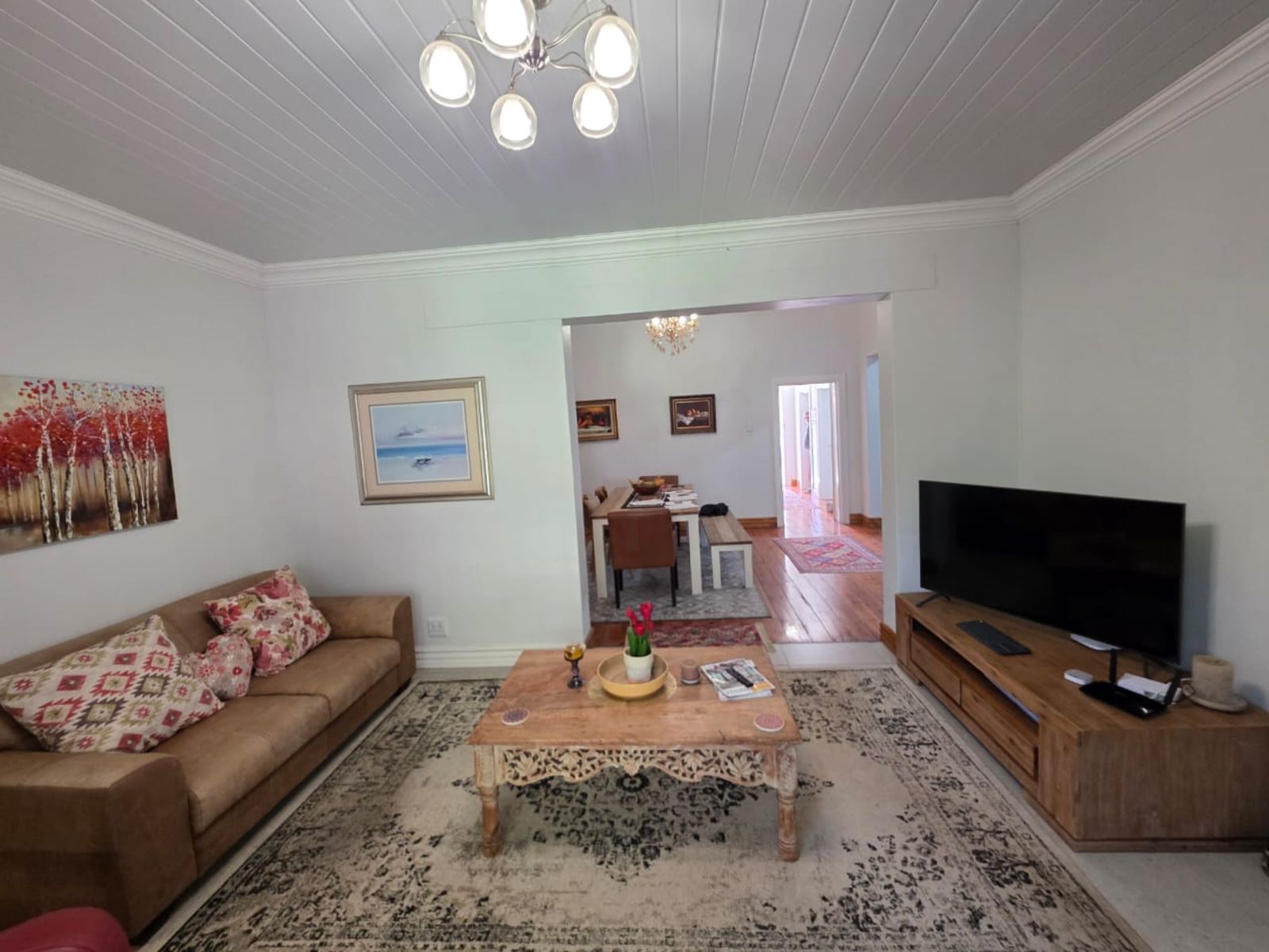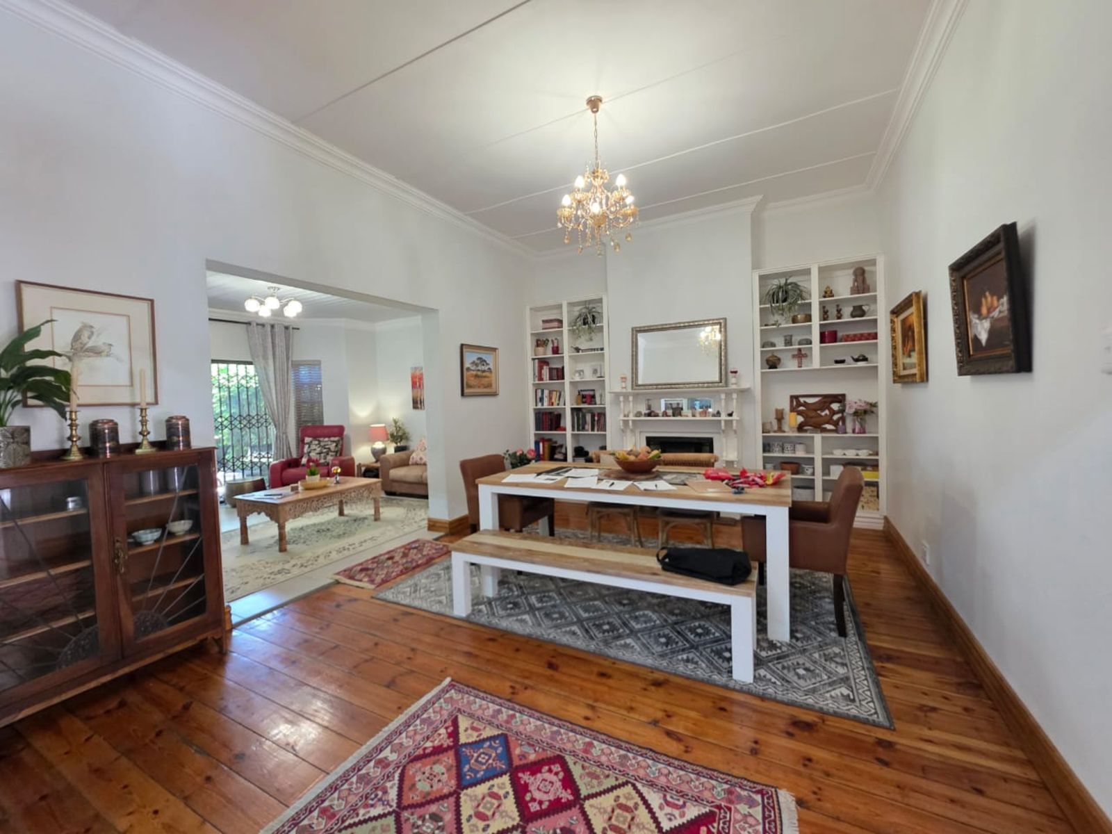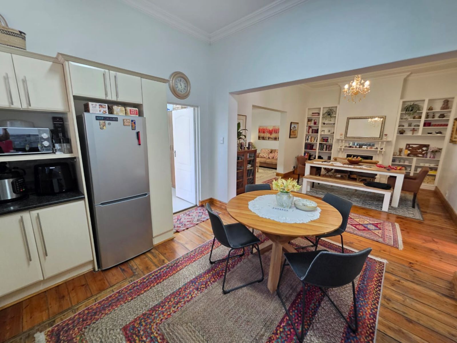 This lovely family home offers three bedrooms and two bathrooms, ideally located close to leading schools. The open-plan layout includes a lounge, dining room, study, and family room. The kitchen is fitted with built-in cupboards, an under-counter oven, hob, and extractor fan. Additional features include a single garage, a carport for two vehicles, and a small, low-maintenance garden. The property is securely fenced and fitted with security gates.