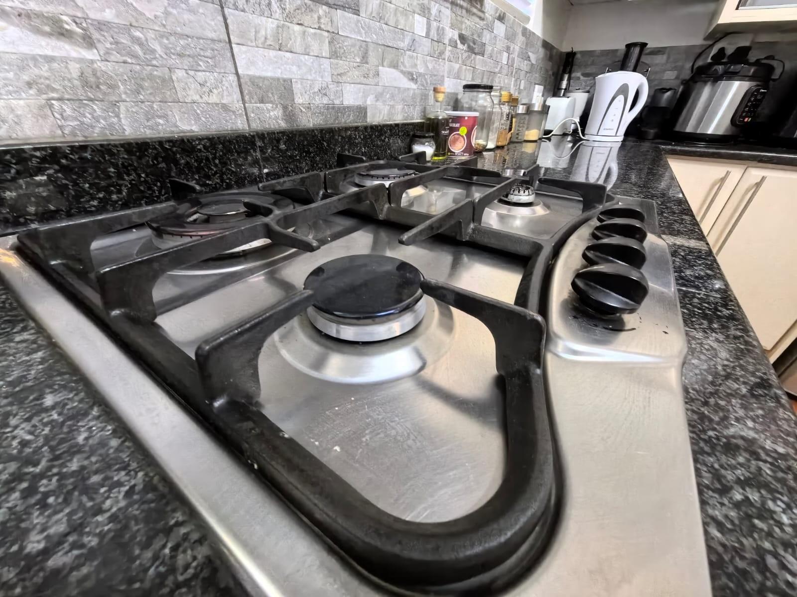 Heart of the Home: The open-plan kitchen and dining room is warm and inviting, featuring original wooden floors and a traditional fireplace—imagine cozy winter dinners! The kitchen is equipped with a built-in stove, extractor fan, and quality blinds.