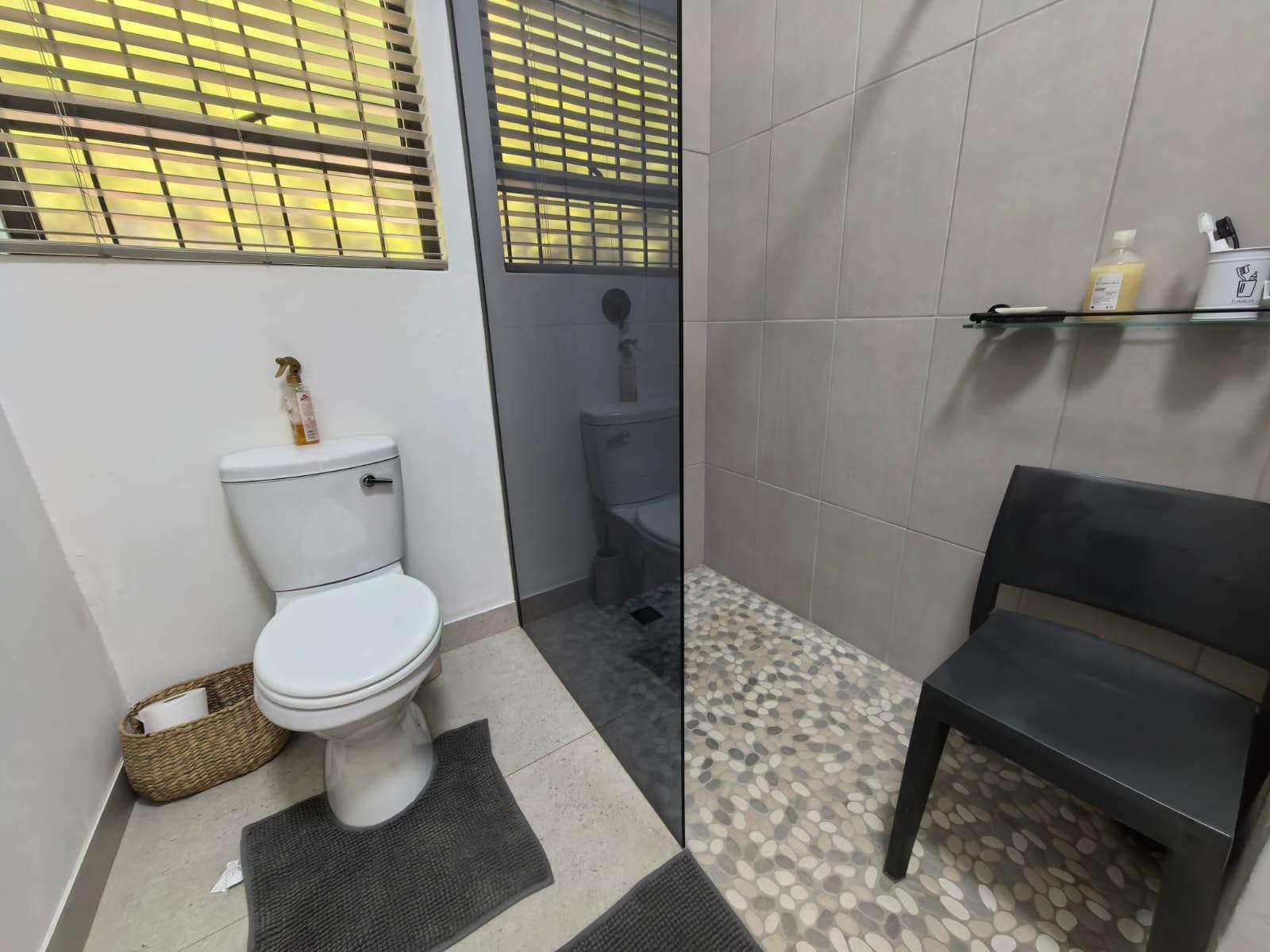 The third, private main bedroom is tucked away at the back for ultimate peace. It boasts its en-suite bathroom, opens onto a pretty garden, and even includes a separate study/workspace—ideal for a private home office or reading nook.