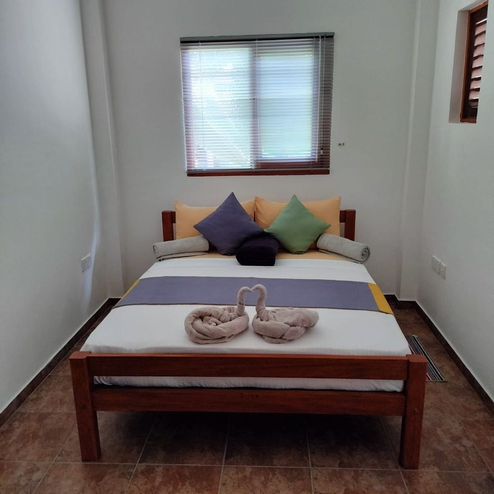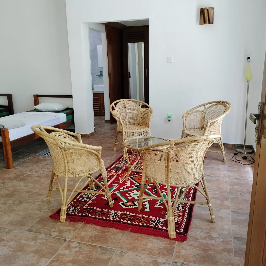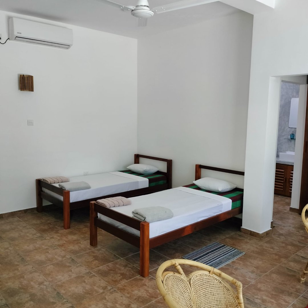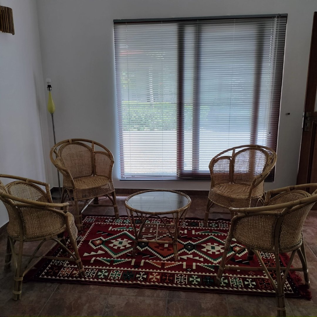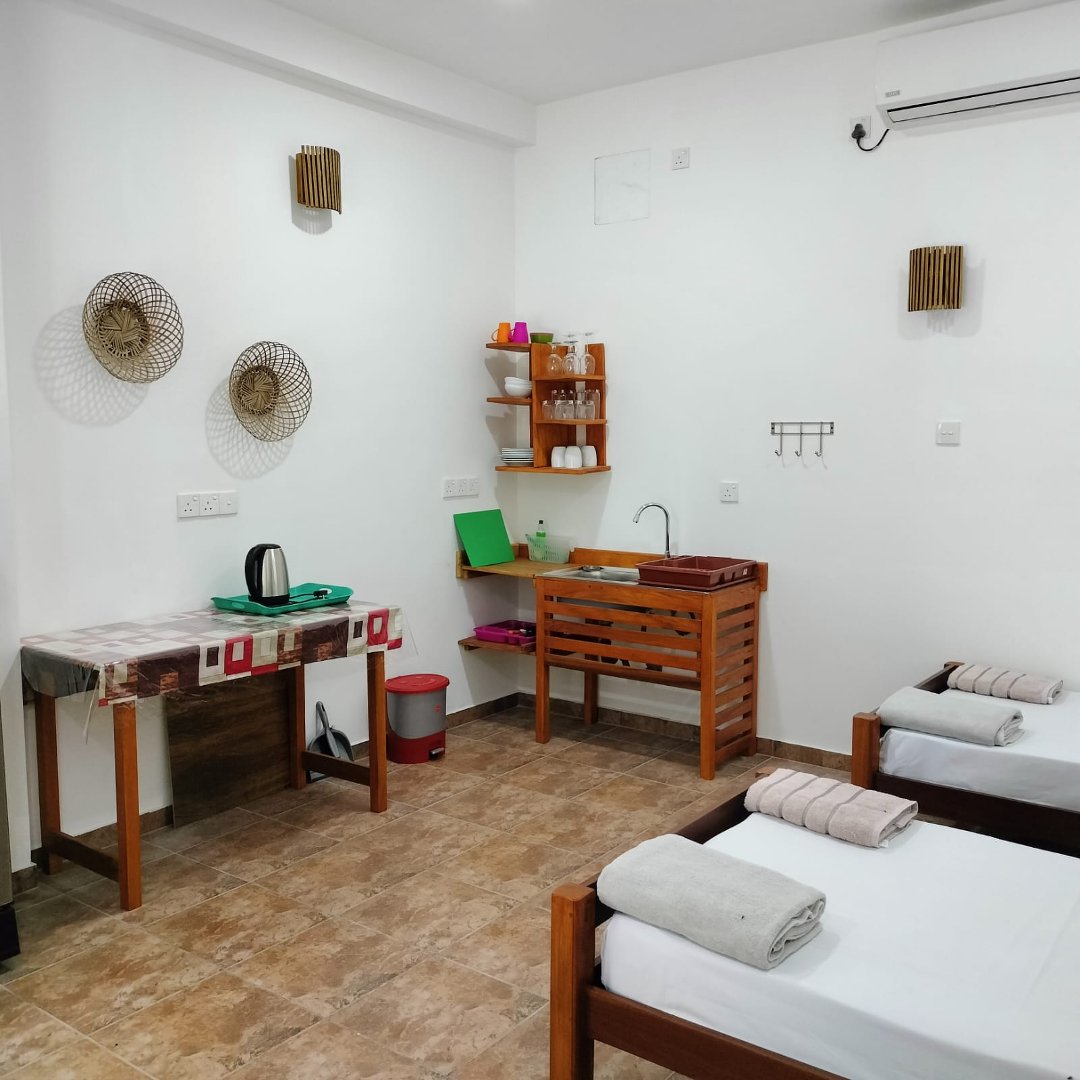 - Features: Family villa, fully furnished, one double bed and two single beds, kitchenette, modern shower, sofa set, TV, AC, and fans.