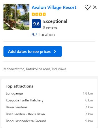 Watch the video for a holistic view of the resort! This resort is based in Sri Lanka not in Mossel Bay.