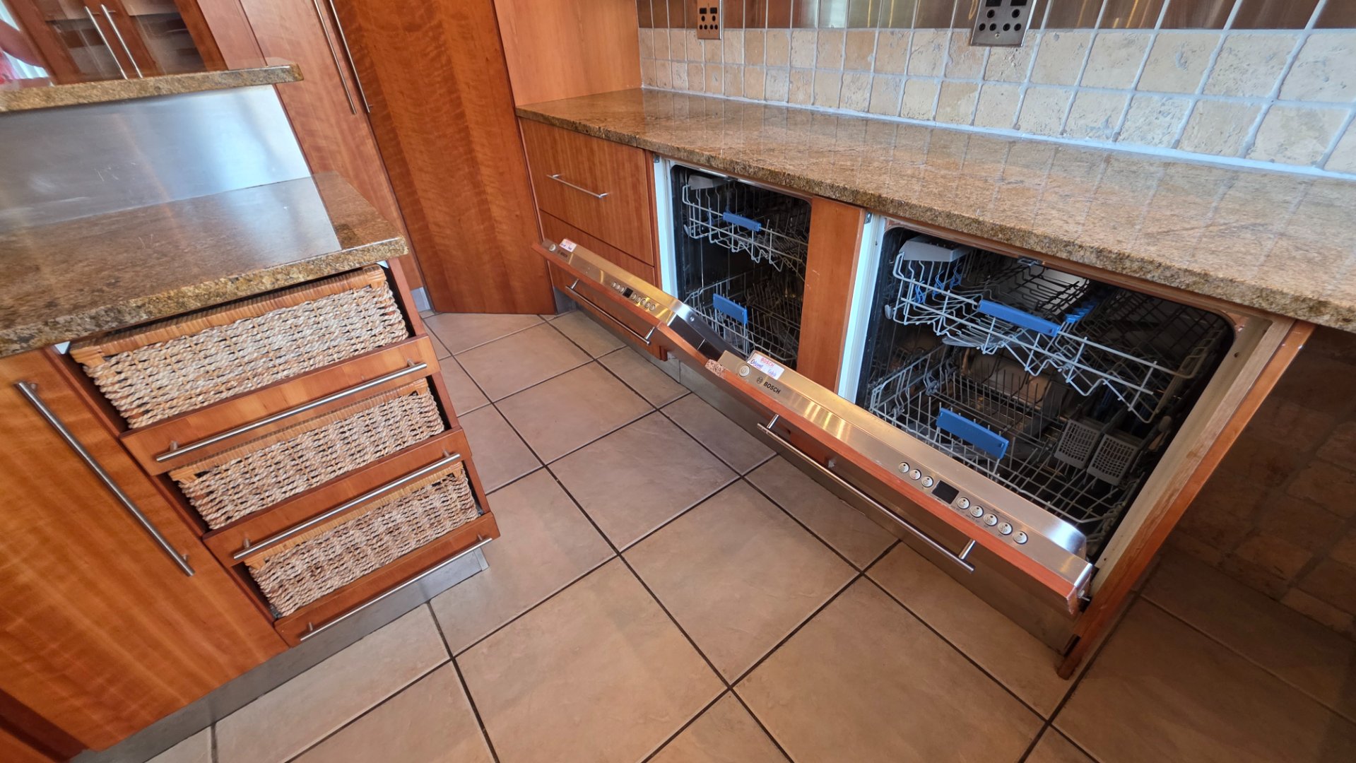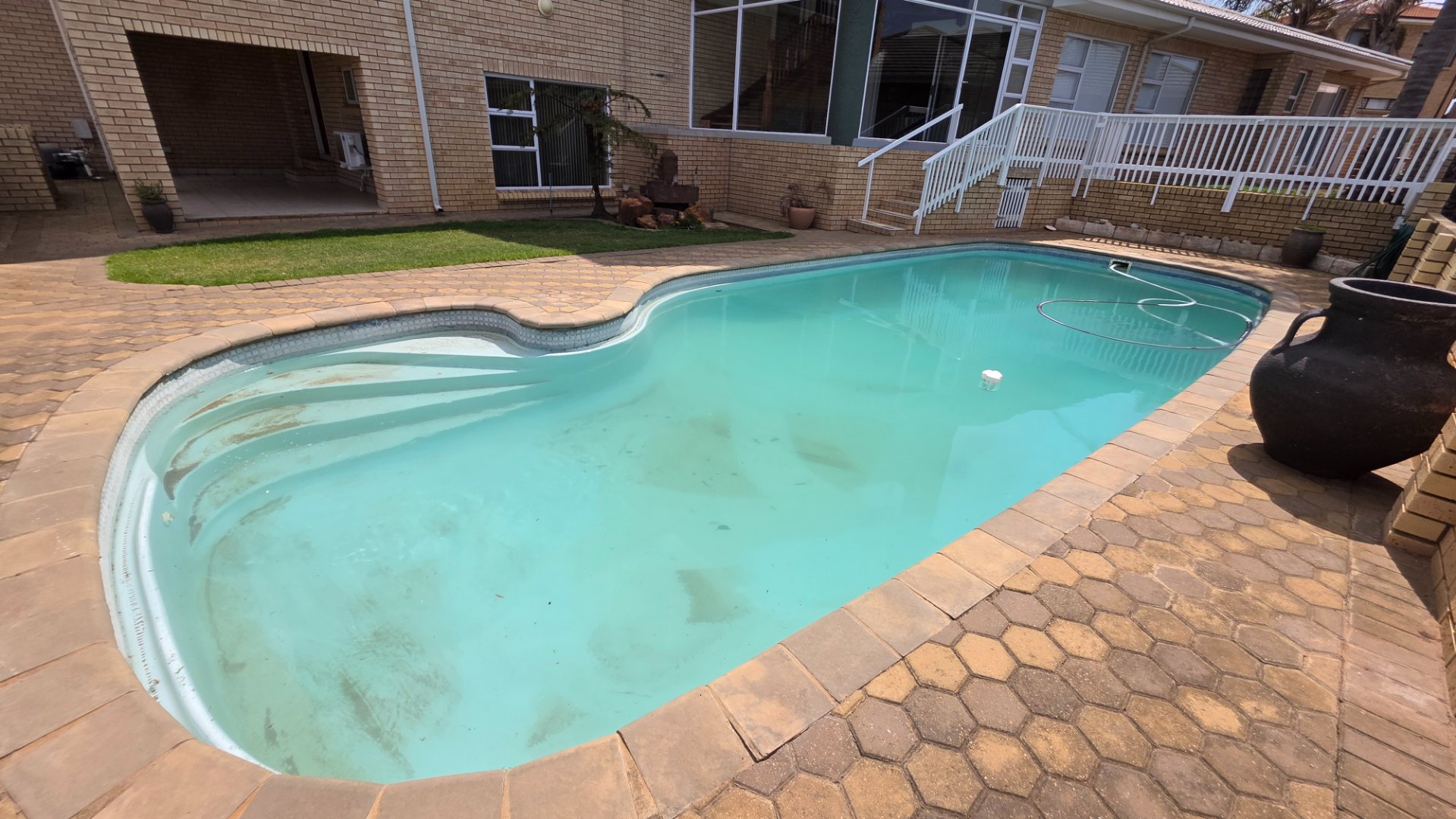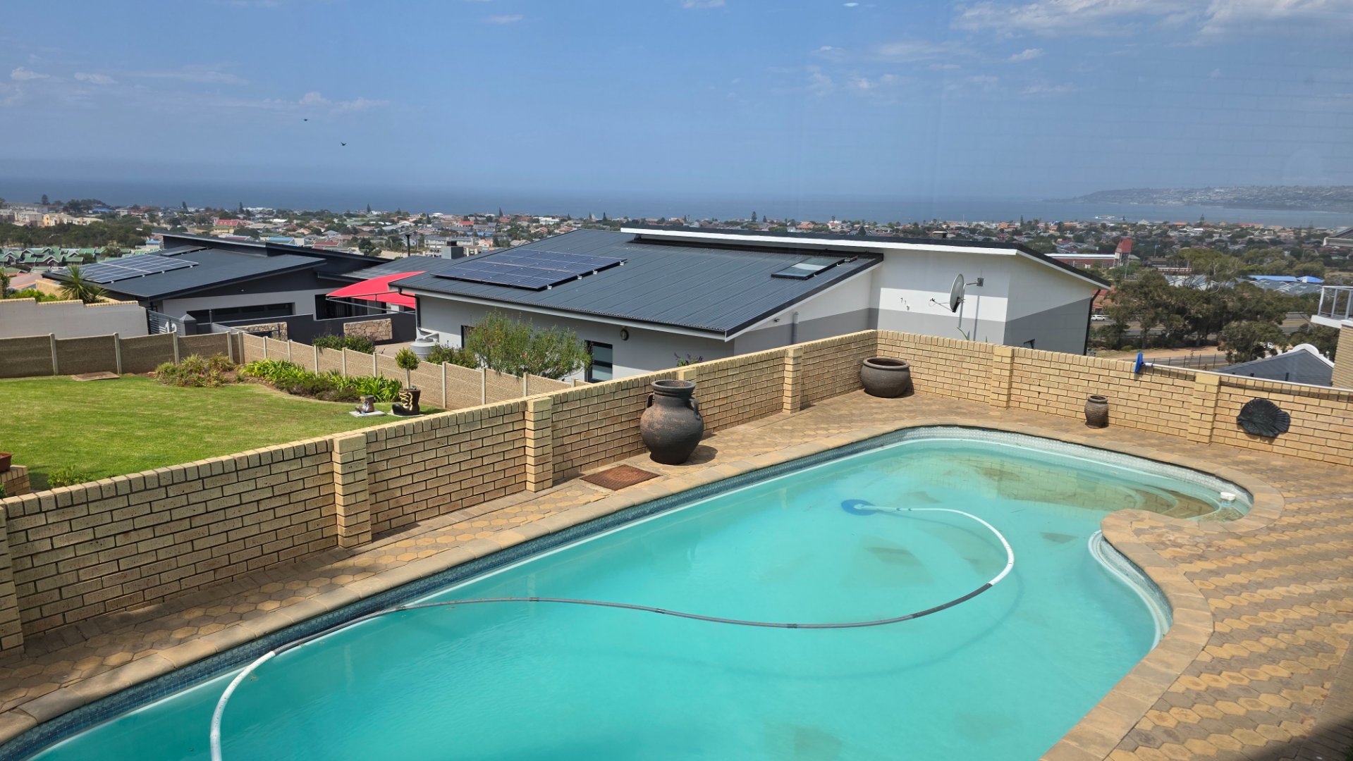 This large house is situated at a corner stand in an upmarket and popular neighborhood and was designed for entertaining your friends and family in style whilst enjoying the unrestricted ocean and mountain views that Mossel Bay is renowned for. The open plan living area with a built-in braai, beautiful kitchen that features two built-in dishwashers as well as an island cabinet with built-in gas hob and a coffee machine, spacious lounge with built-in cabinet, enclosed patio, three bedrooms with air conditioners, two bathrooms with main en suite are all situated at the lower entrance level. The upper level features a spacious entertainment room with unbelievable ocean views, built-in bar, built-in braai, guest toilet as well as a second entertainment room that can be utilized as a snooker room or a large home office if you wish. Additional to this house is the large garage with built-in cupboards and suitable for three vehicles, the sparkling swimming pool, storeroom as well as an outside flatlet with kitchenette and bathroom en suite and this area can easily be converted into a separate apartment if you wish to earn additional income. This face brick and low maintenance house is perfect for the entertainer and deserves to be seen. For more information or appointment to view you are welcome to contact me.