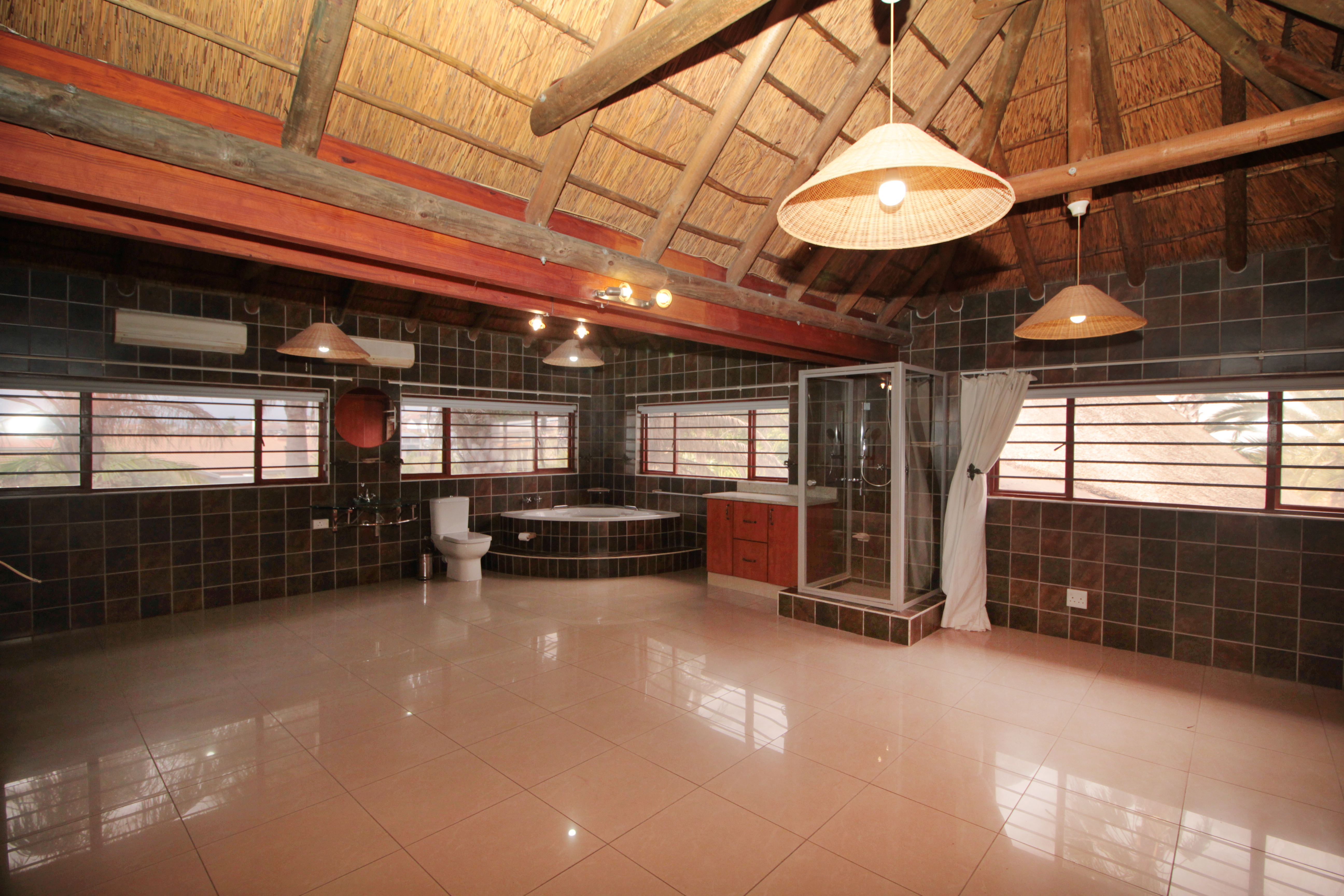 This extraordinary thatch-roof home offers the perfect blend of character, space, and functionality. The main house features three spacious bedrooms, a practical kitchen, and an open-plan lounge and dining area designed for easy living.