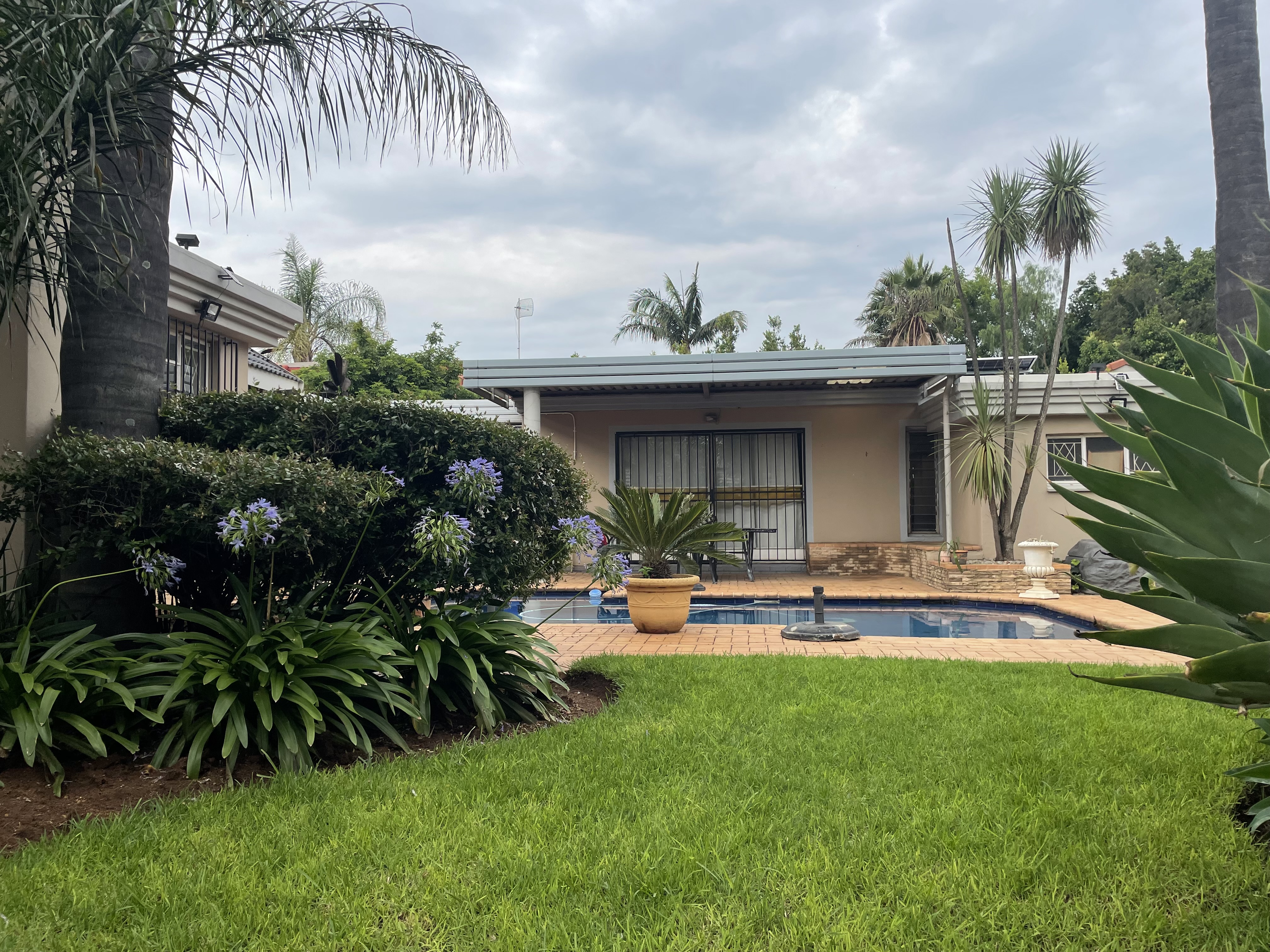 Designed for year‐round entertaining, the home offers a sparkling swimming pool, a lapa, and an indoor braai area. Adjacent to the pool is a versatile flatlet, perfect for extended family, guests, or additional utility space. Both the main house and flatlet operate on prepaid electricity for easy management.