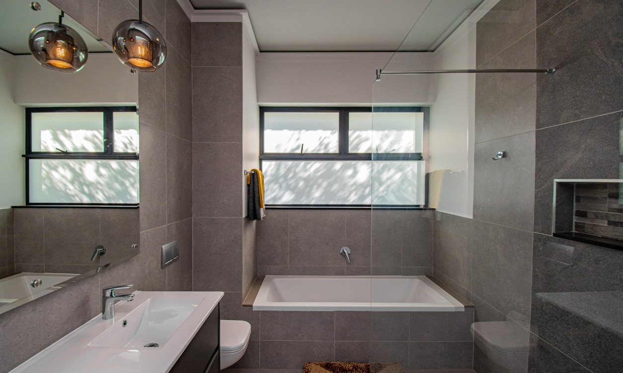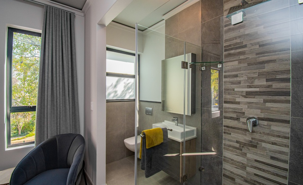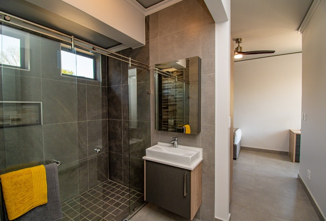 Enjoy three spacious en-suite bedrooms, each equipped with built-in cupboards and dressing tables. The bathrooms boast sleek, modern finishes, while a built-in study area and linen closet add to the convenience. Additional Features: