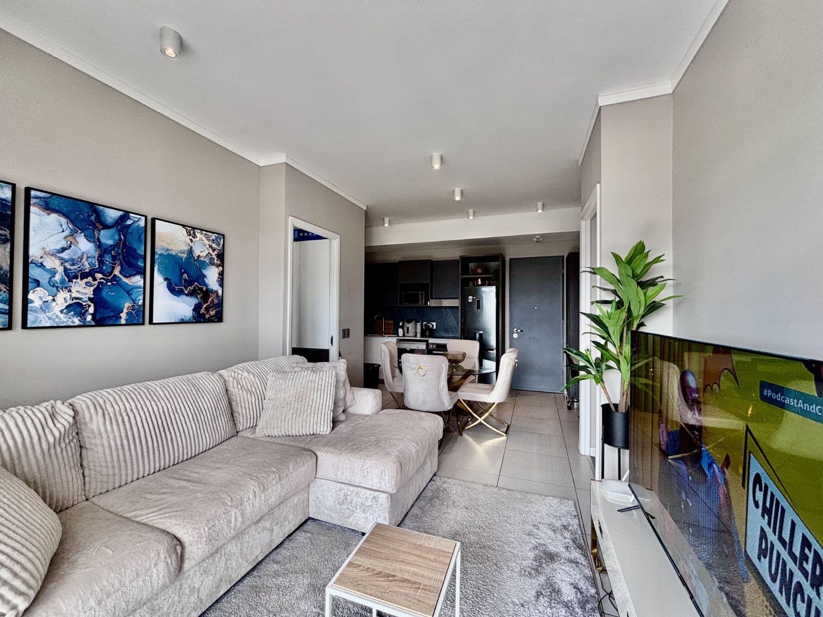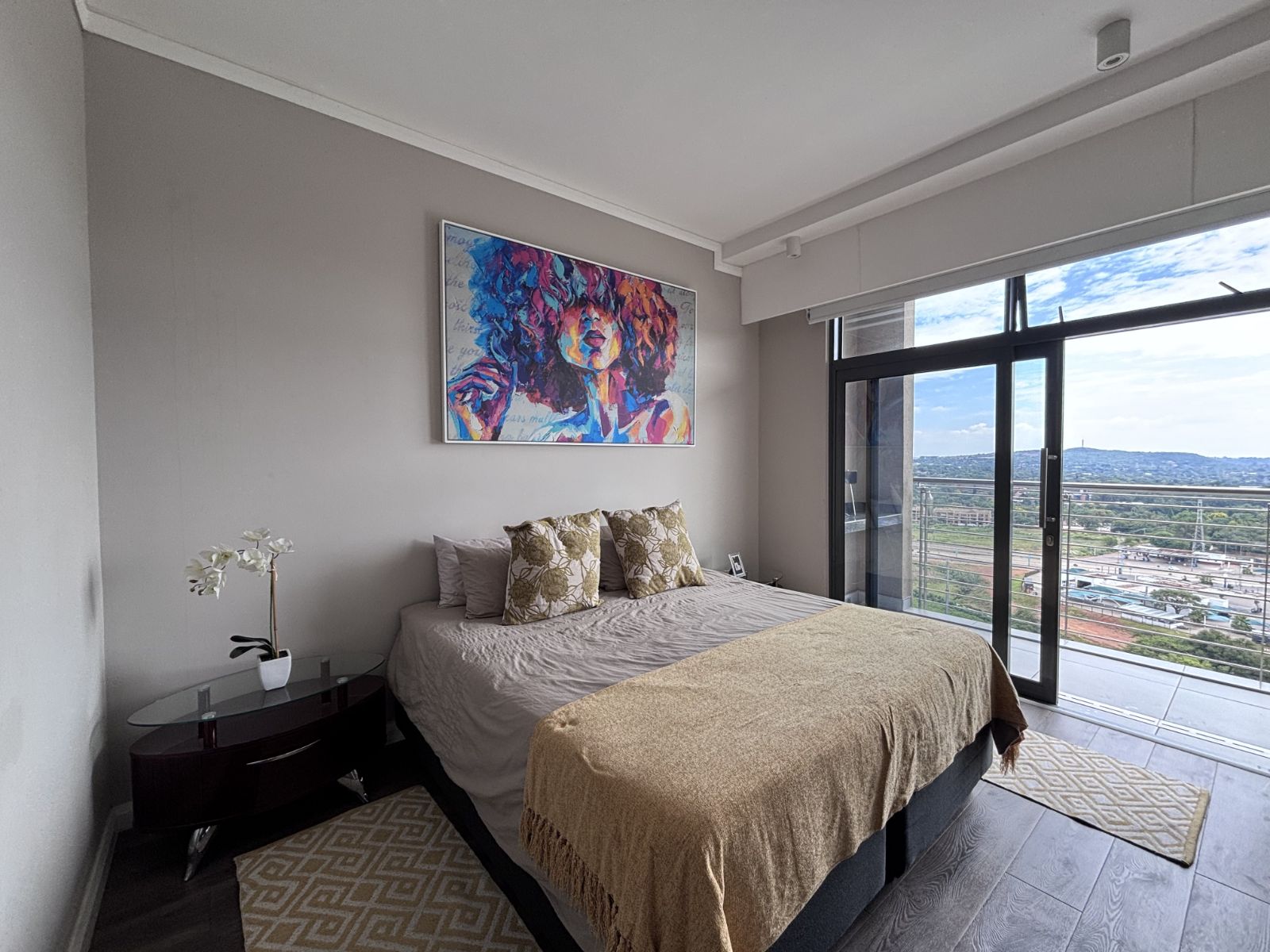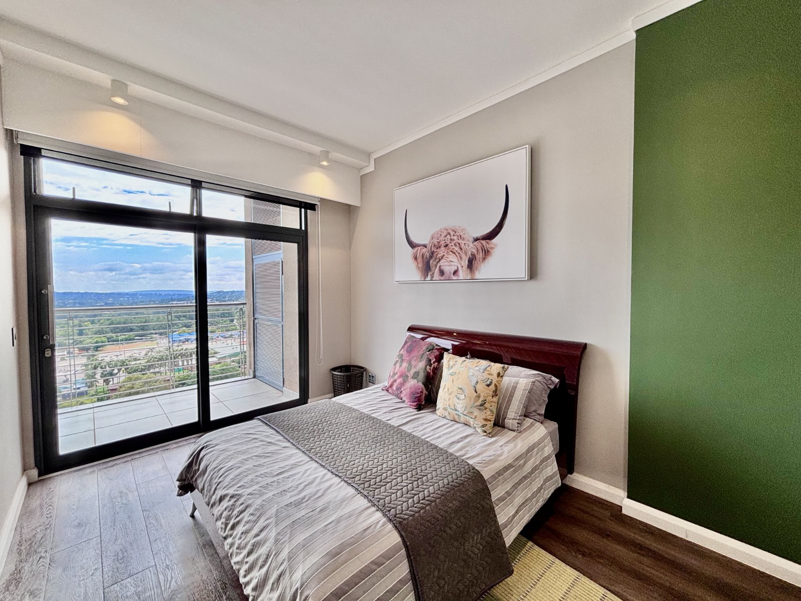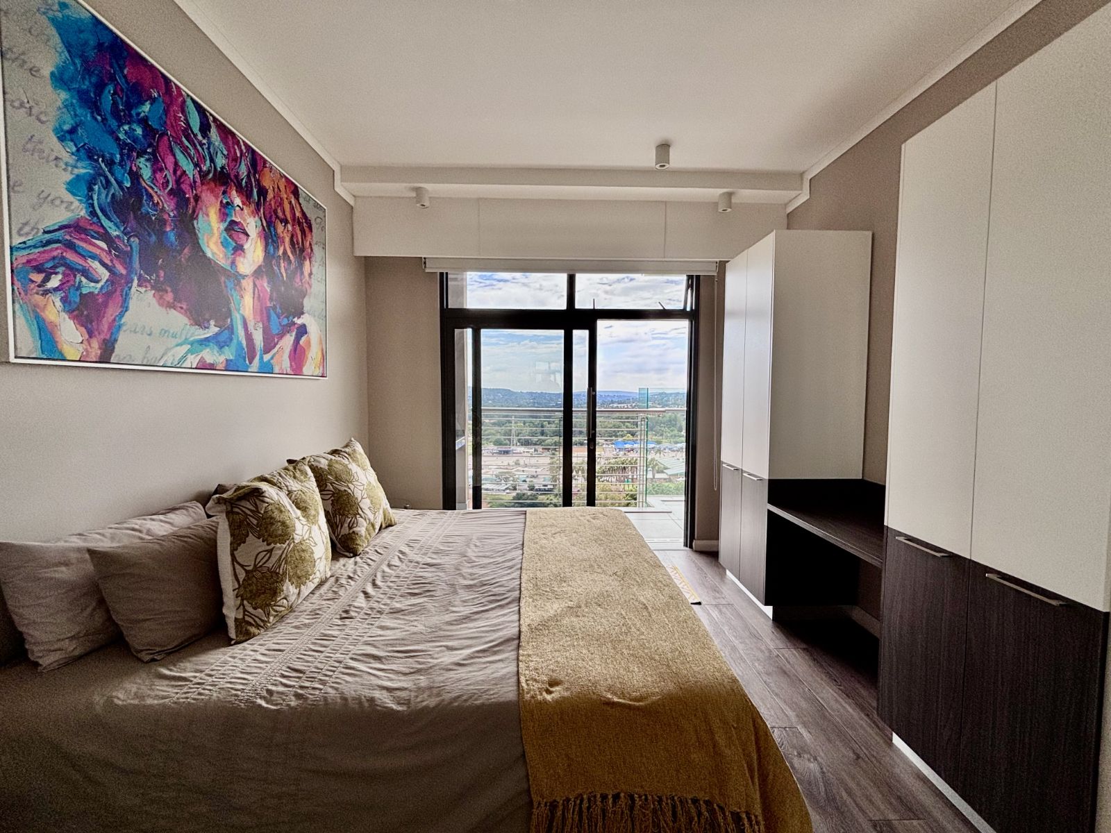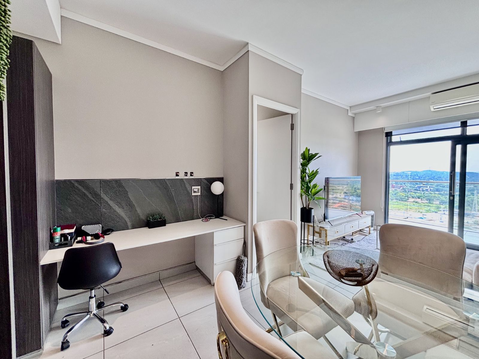 This beautifully designed north-facing apartment in Menlyn Maine offers the perfect blend of modern luxury and urban convenience. Positioned on a higher floor, it boasts expansive views of the city skyline, allowing natural light to flood the open-plan living space.
