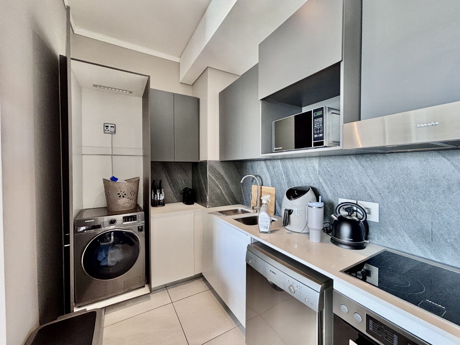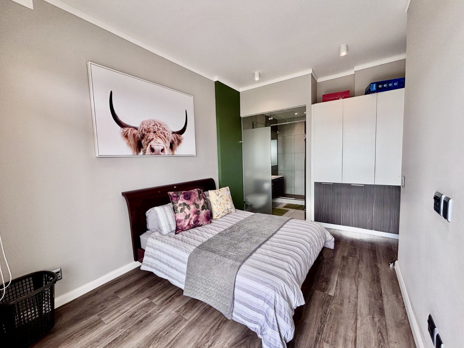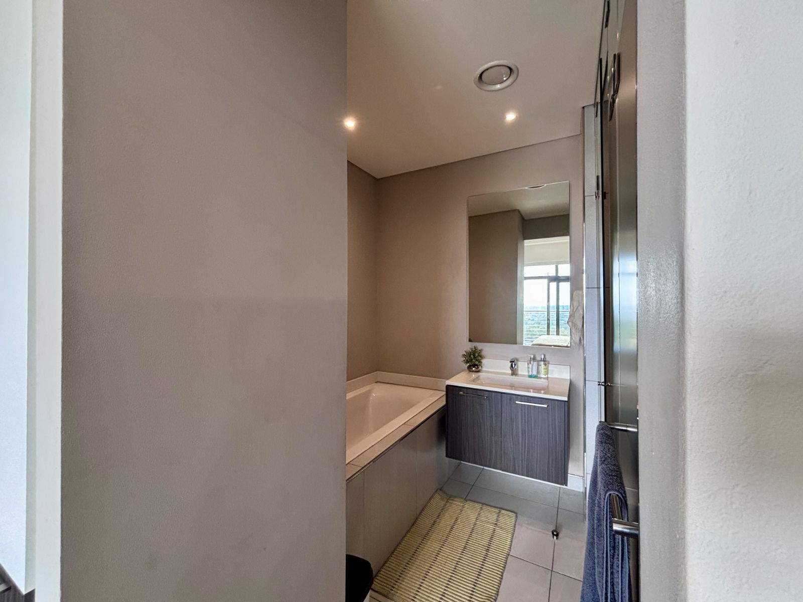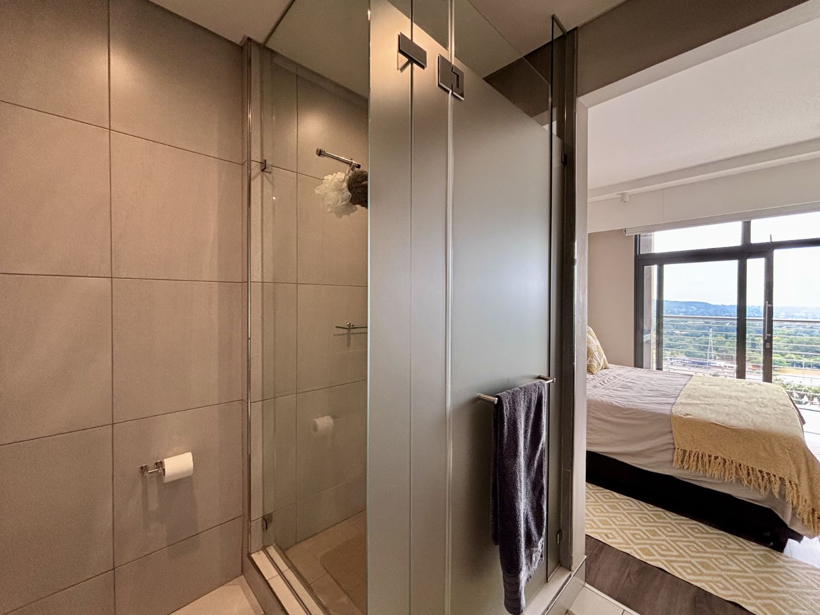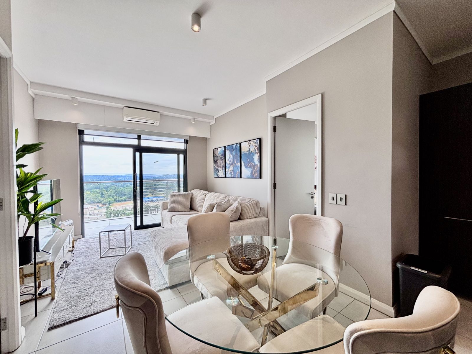 This beautifully designed north-facing apartment in Menlyn Maine offers the perfect blend of modern luxury and urban convenience. Positioned on a higher floor, it boasts expansive views of the city skyline, allowing natural light to flood the open-plan living space.